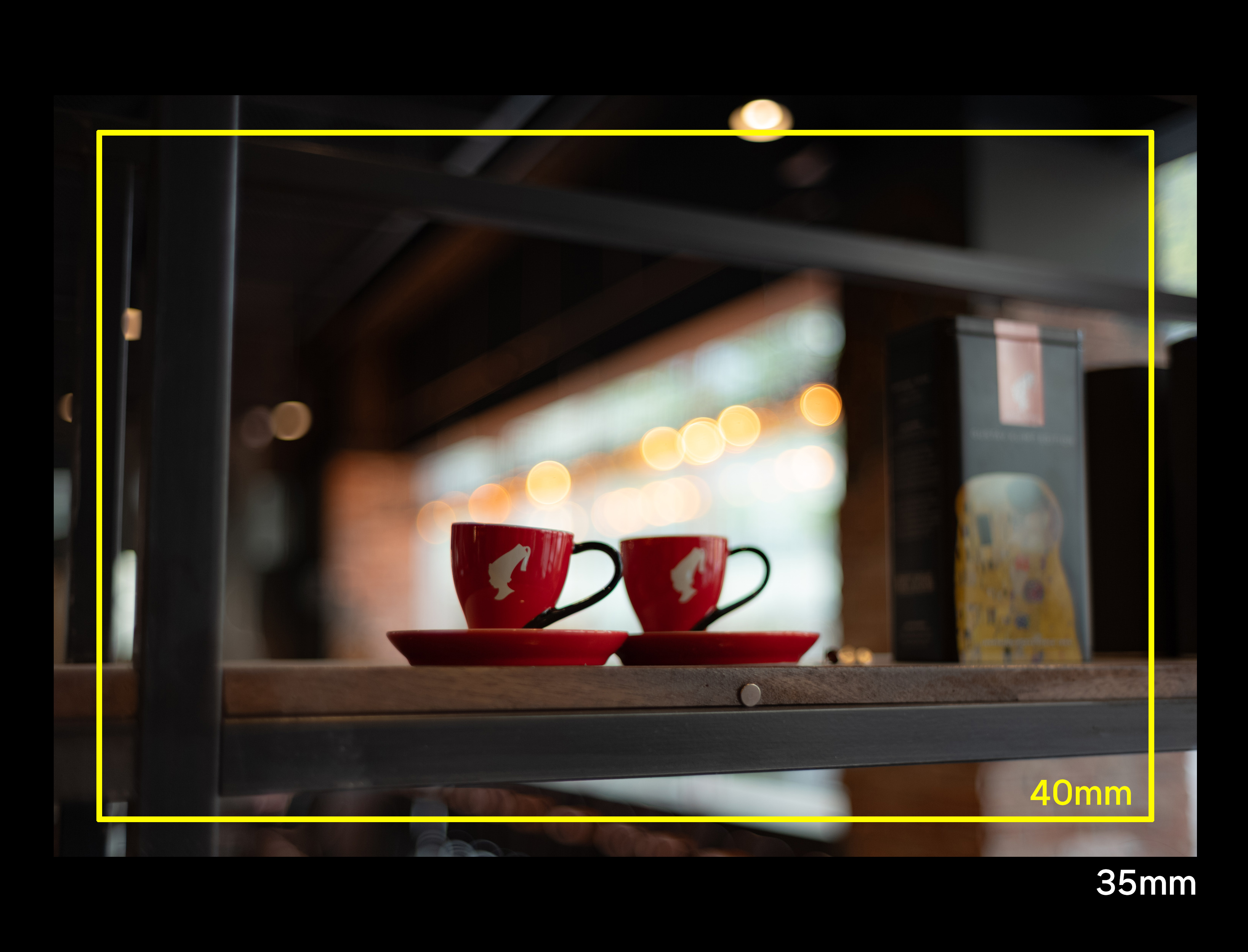 40mm 프레임, 35mm와 50mm 사이.