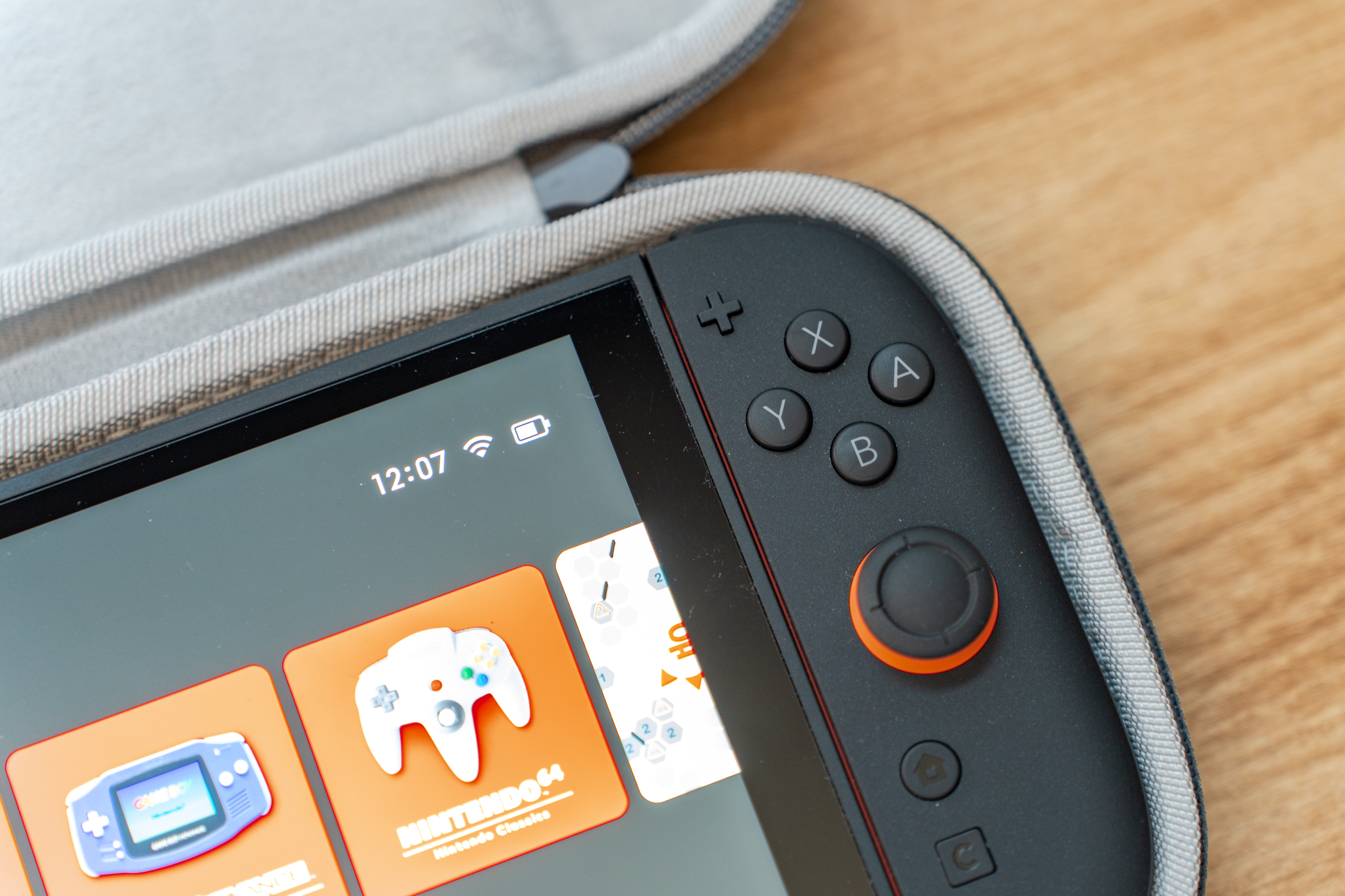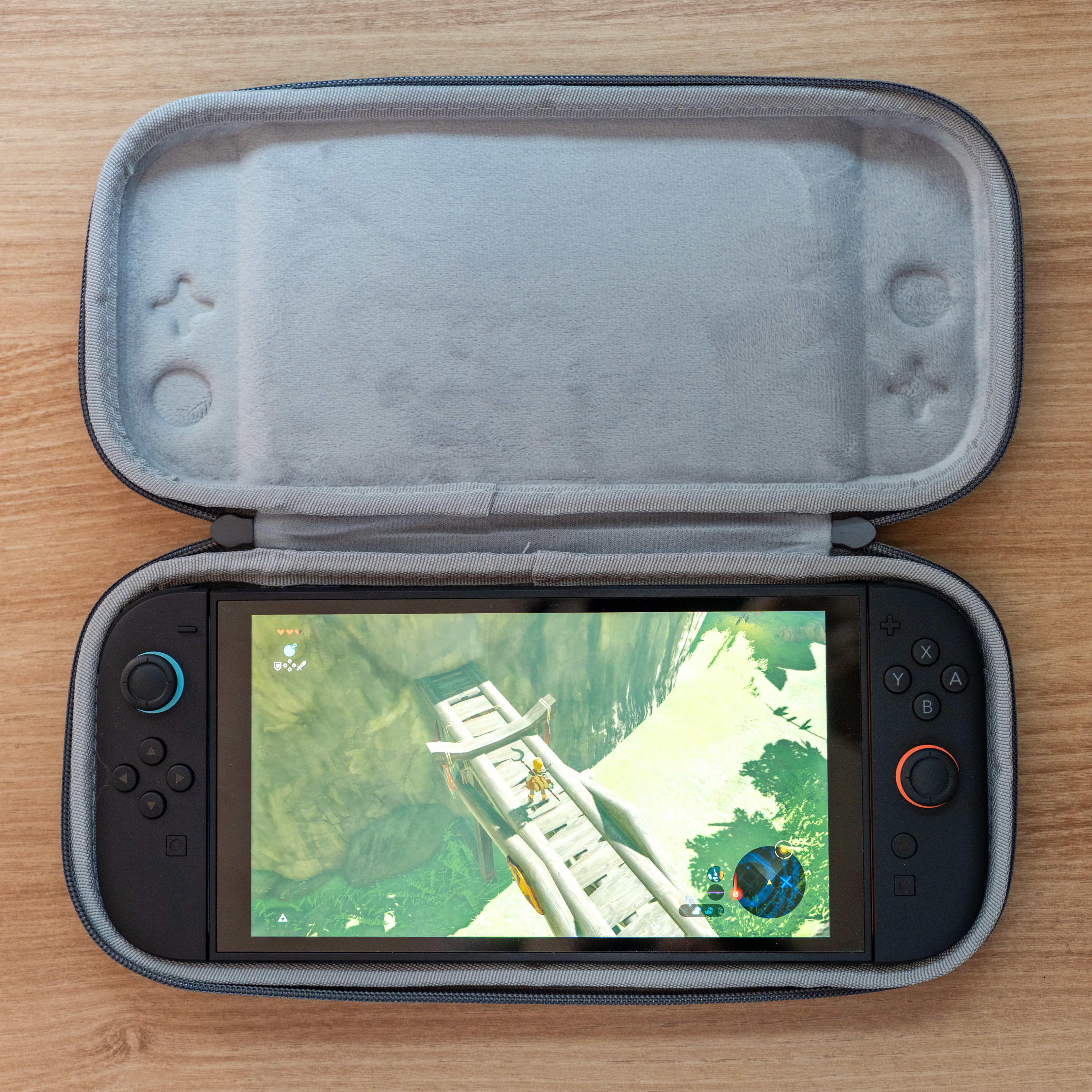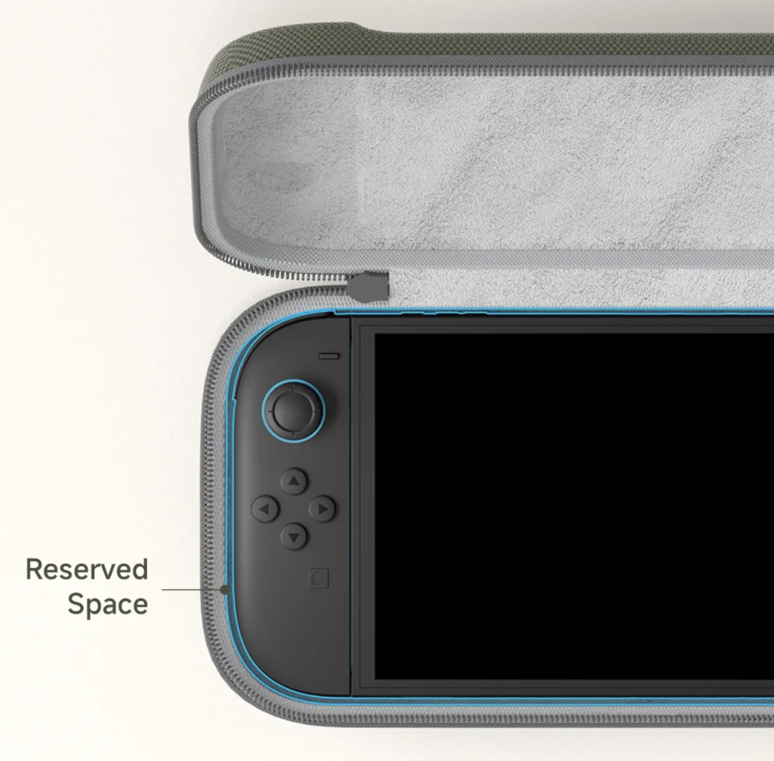 기기 손상을 막기 위해 안쪽은 부드러운 소재로 되어 있습니다. 게임기 케이스의 기본이죠. 외부로 돌출된 조이콘 조작부의 홈이 안에서도 보입니다. 이부분에 여유를 둬서 케이스에 넣었을 때 스틱과 버튼이 눌리는 것을 막기 위한 장치입니다. 제품의 정가가 만원 내외인데 그 가격을 지불해도 후회 없을만한 디테일입니다.