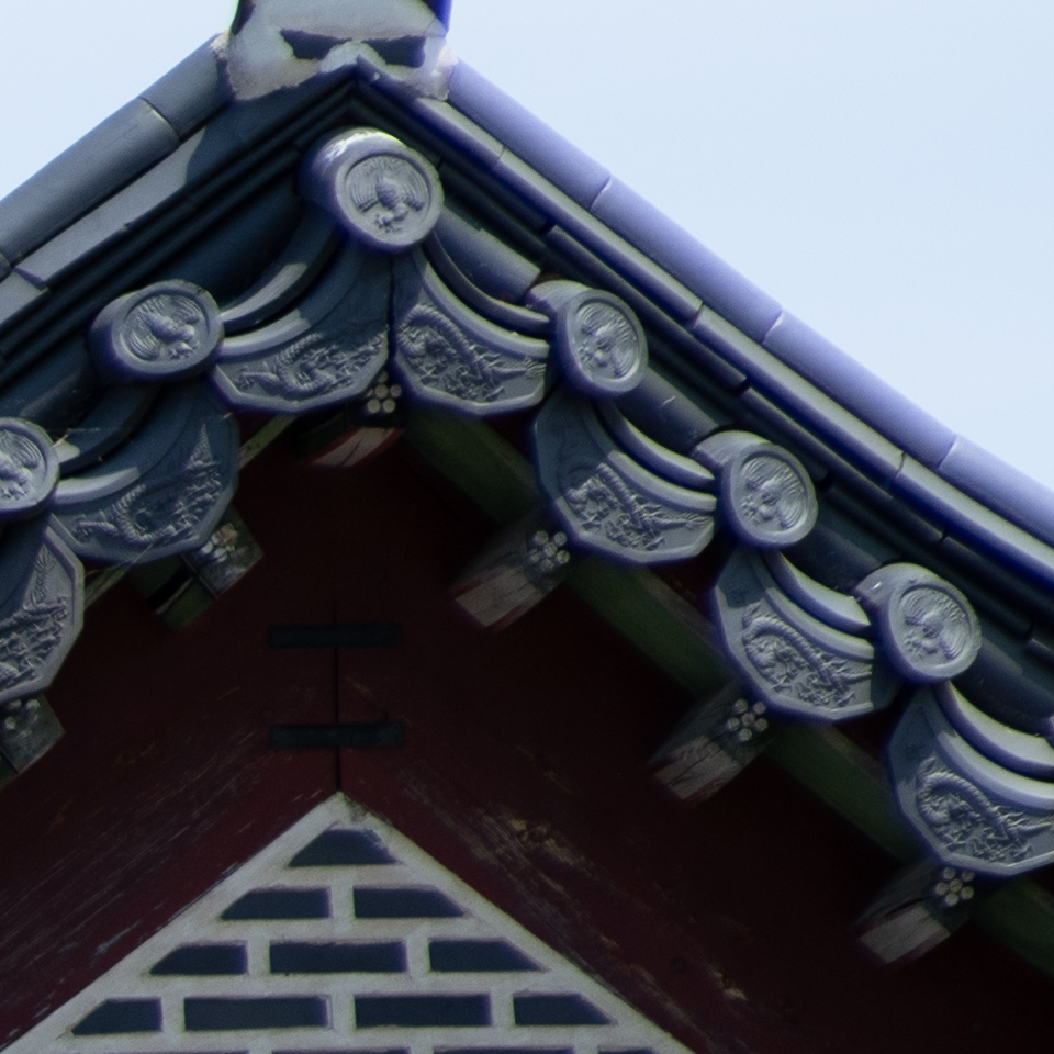 이 렌즈는 과거 M 마운트로 출시된 렌즈의 설계를 계승하고 있습니다. 비구면 렌즈 등의 특수 렌즈도 추가되지 않았기 때문에 당시 렌즈의 광학적 한계 역시 상당 부분 간직하고 있어요. 대표적인 것이 개방 촬영에서의 해상력 저하와 색수차입니다. 중심부와 비교해 월등히 흐릿하고 보라색 수차도 쉽게 발생합니다. 상대적으로 주변부 광량 저하가 덜한 것은 의외입니다.