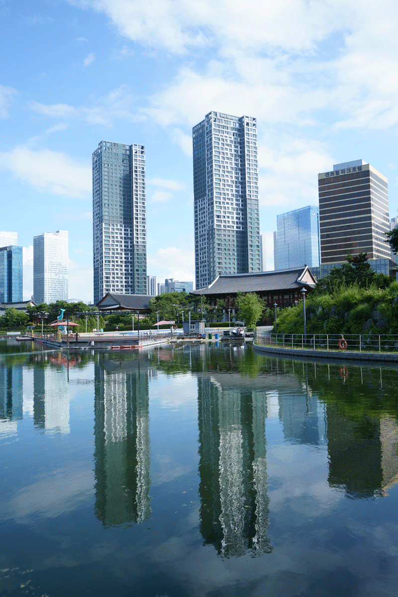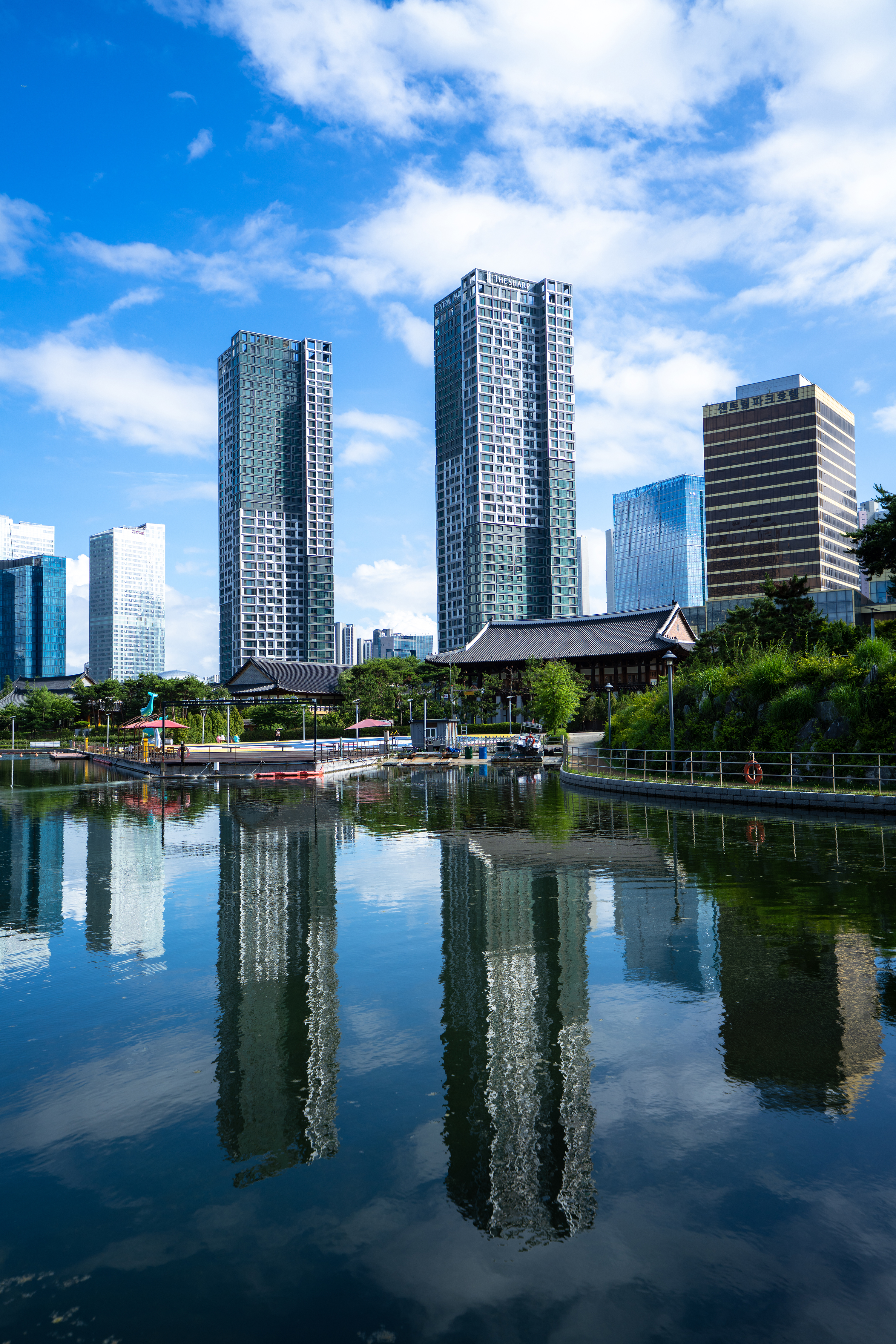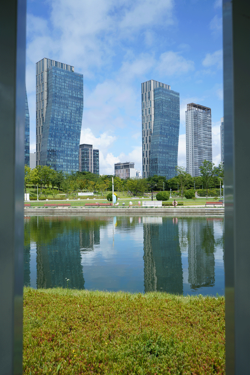 화창한 날 물가에서 찍은 선명한 반영 사진, 전망대에서 내려다 본 도시, 이국적인 건축과 실내 인테리어 등이 초광각 사진의 매력을 잘 보여 줍니다. 익숙한 장소, 풍경도 시야가 넓어지는 것으로 사뭇 달라 보이니 왜 여행용으로 광각 렌즈를 적극 추천하는지 알겠어요. 앞서 살펴본 대로 이런 촬영에서는 17mm보다 넓은 16mm를 사용할 수 있다는 것이 분명한 강점입니다.