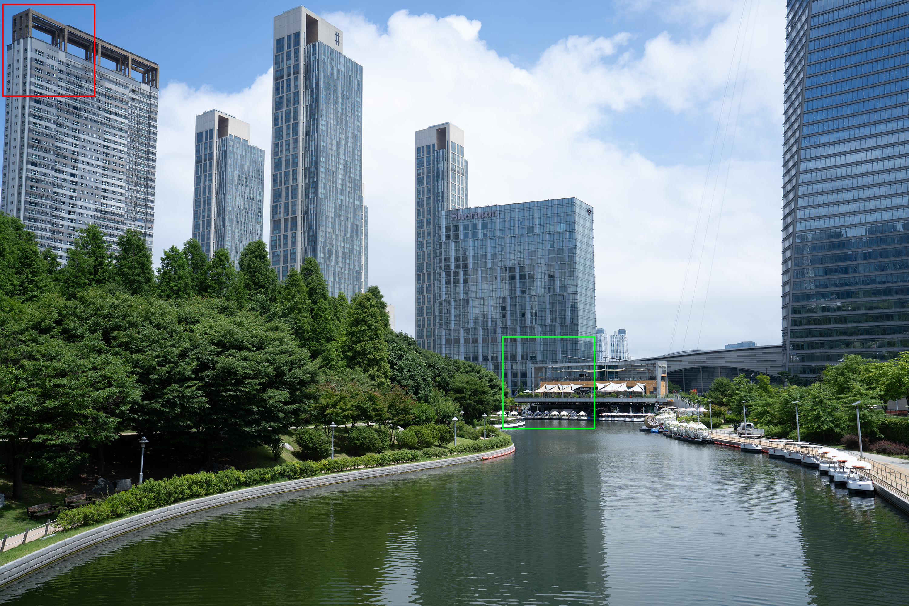 초광각 렌즈다 보니 왜곡이 있습니다. 16mm 최대 광각에서는 가운데가 볼록한 형태로, 30mm에서는 반대로 오목하게 표현됩니다. 위 이미지는 RAW 촬영 후 변환한 것으로 카메라의 왜곡 보정을 적용하면 육안상 느낄 수 없을만큼 왜곡이 줄어듭니다. 렌즈의 광학적 한계는 소프트웨어로 보정하는 현행 렌즈의 특징을 확인할 수 있습니다.