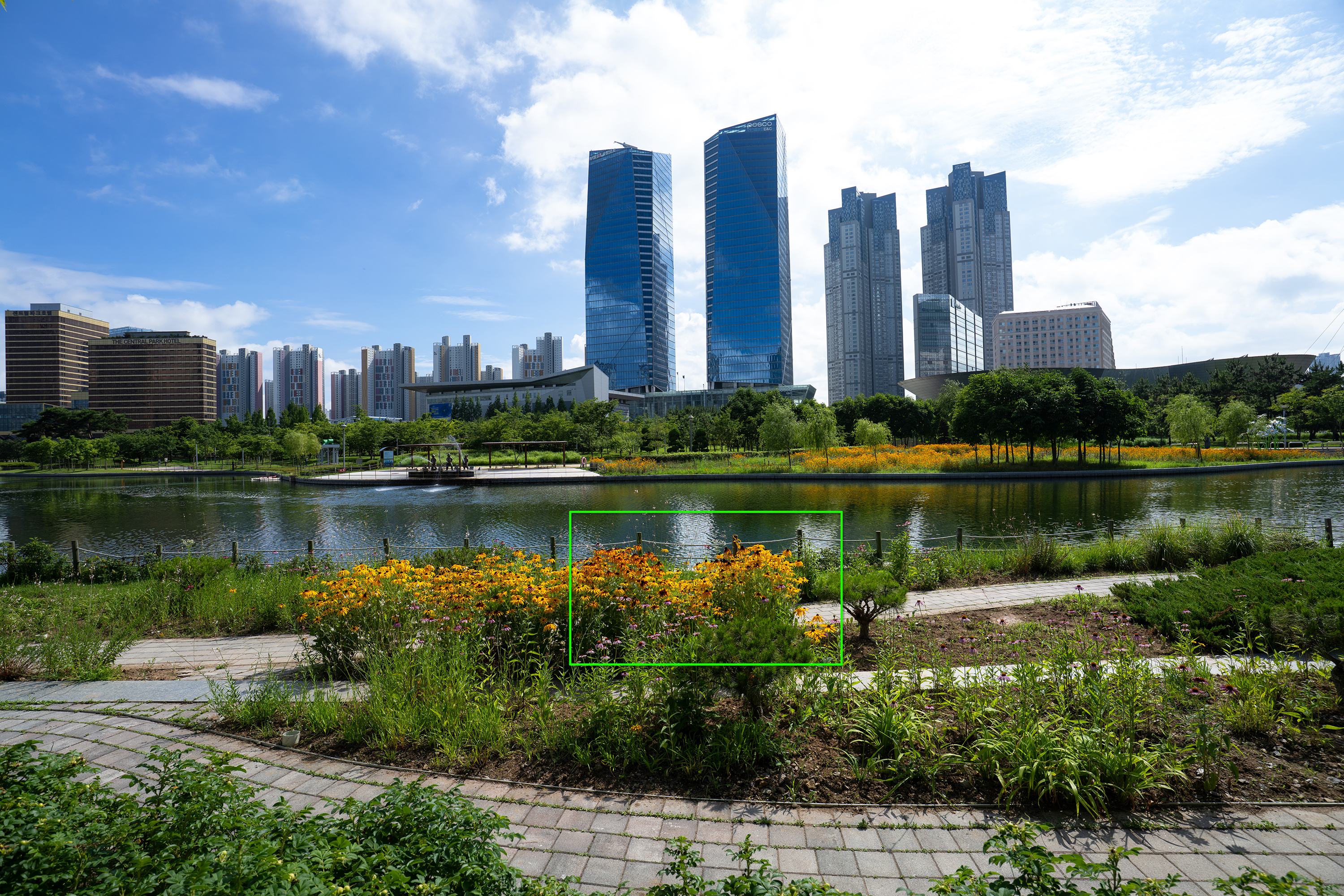 16mm 최대 광각에서의 근접 촬영은 주 피사체가 돋보이면서도 주변 배경이 상당히 넓게 담깁니다. 원근감을 강조해 다이내믹한 연출을 할 수 있어요. 19cm의 촬영 거리는 이미지 센서를 기준으로 한 것으로 체감 촬영은 렌즈와 10cm 정도의 거리에서 이뤄집니다.