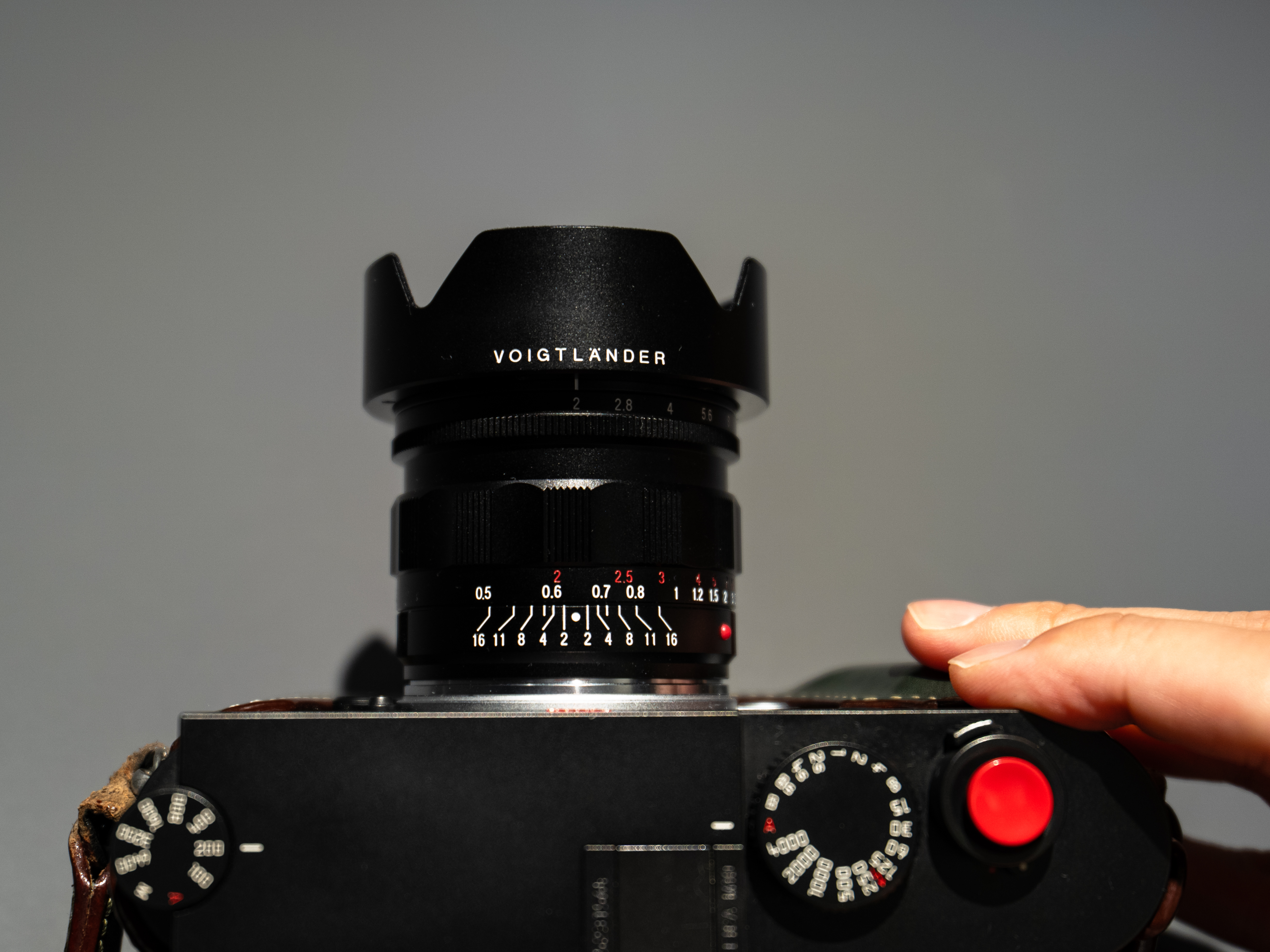 라이카 M10에 마운트 한 모습입니다. 무광 블랙 컬러로 M10 블랙 크롬 컬러와 잘 어울립니다. 보이그랜더의 현행 렌즈 중 일부는 Type I,II으로 나눠 디자인과 색, 마감을 달리하고 있는데 아포-란타 시리즈는 35mm F3.5를 제외하면 블랙 컬러의 단일 디자인으로 판매되고 있습니다.