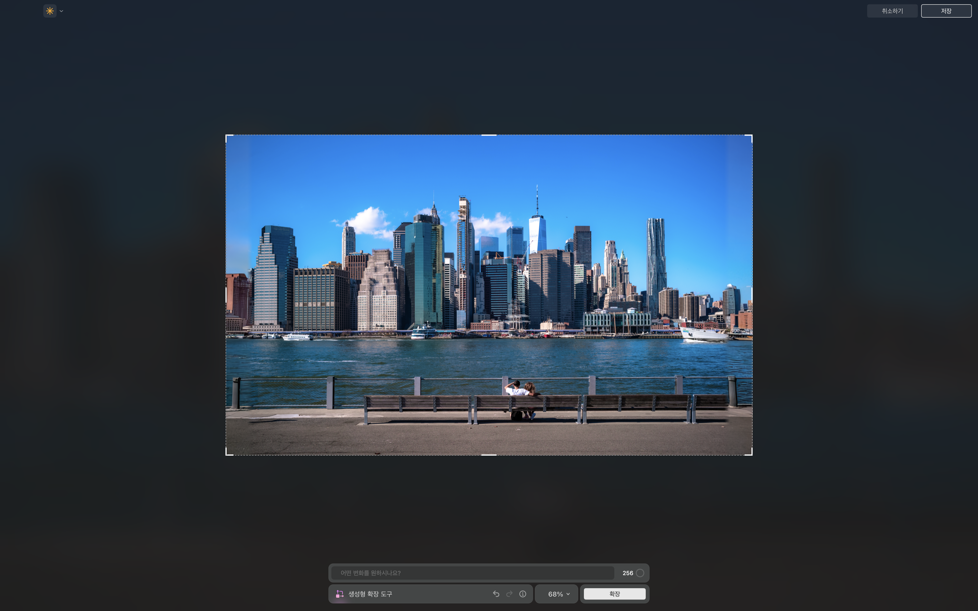 위 이미지는 맨해튼 풍경을 찍은 사진입니다. 생성형 확장 도구를 사용해 좌/우로 늘려 보았는데 생각보다 괜찮은 이미지가 만들어졌어요. 하늘 부분의 색과 밝기가 균일하지 않은 것이 아쉽지만 양쪽 끝에 서 있는 건물들이 AI가 그린 것이라 생각하면 꽤나 신기하죠. 지우기, 교체 기능에 비해 성능이 다소 아쉽지만 그간 찍은 여행 사진들에 한 번씩 적용해 보고 싶긴 합니다.