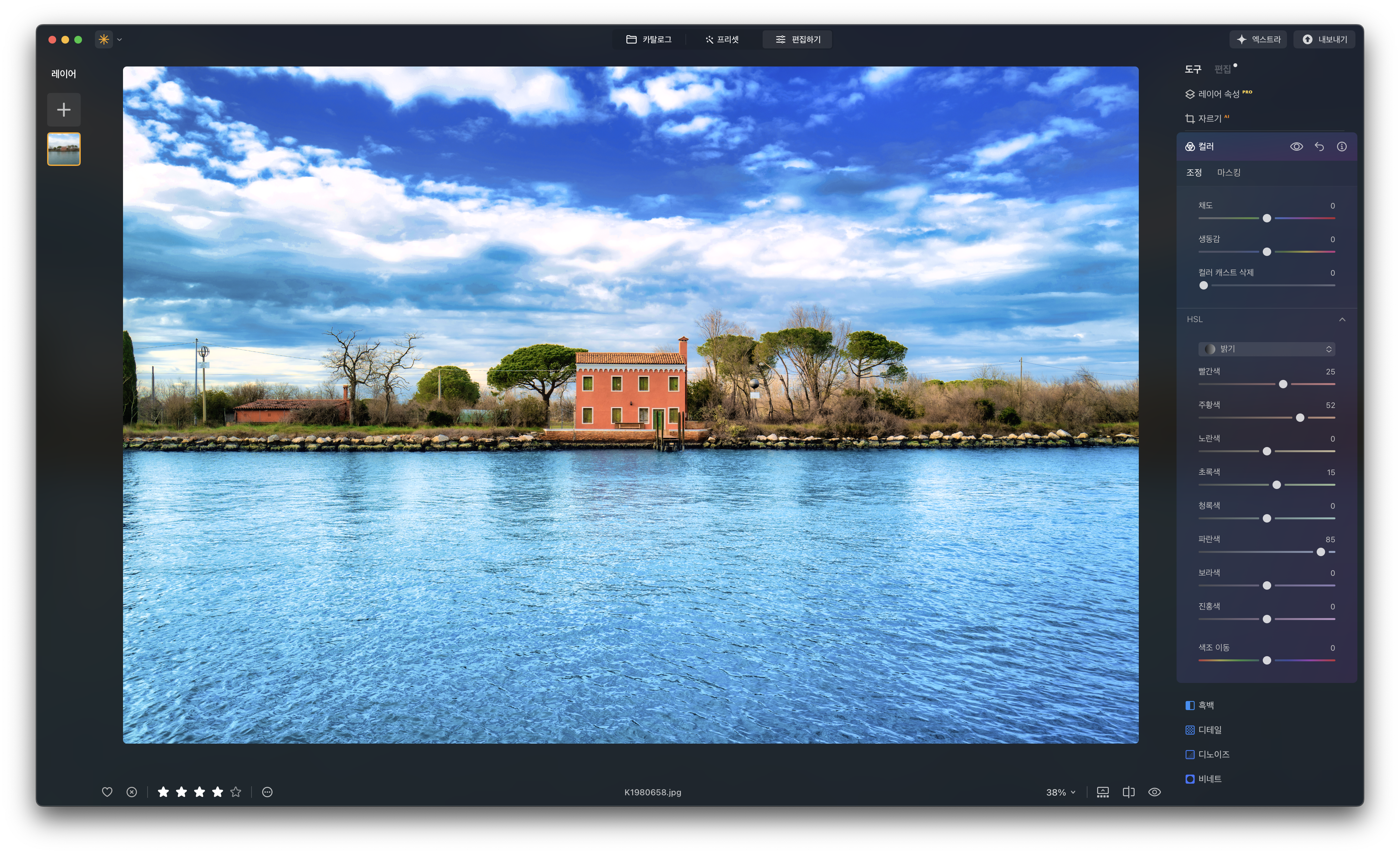 주제, 장르별로 다양한 설정값을 만들어 놓은 프리셋 기능도 좋지만 아무래도 루미나 네오에서는 AI 기능들 그리고 이것저것 만져볼 수 있는 편집 메뉴들을 주로 사용하게 됩니다. 그래서 제가 루미나 네오에서 즐겨 사용하는 기능들을 정리해 봤습니다. 이것들만 잘 사용해도 사진이 눈에 띄게 근사해 질 것입니다.