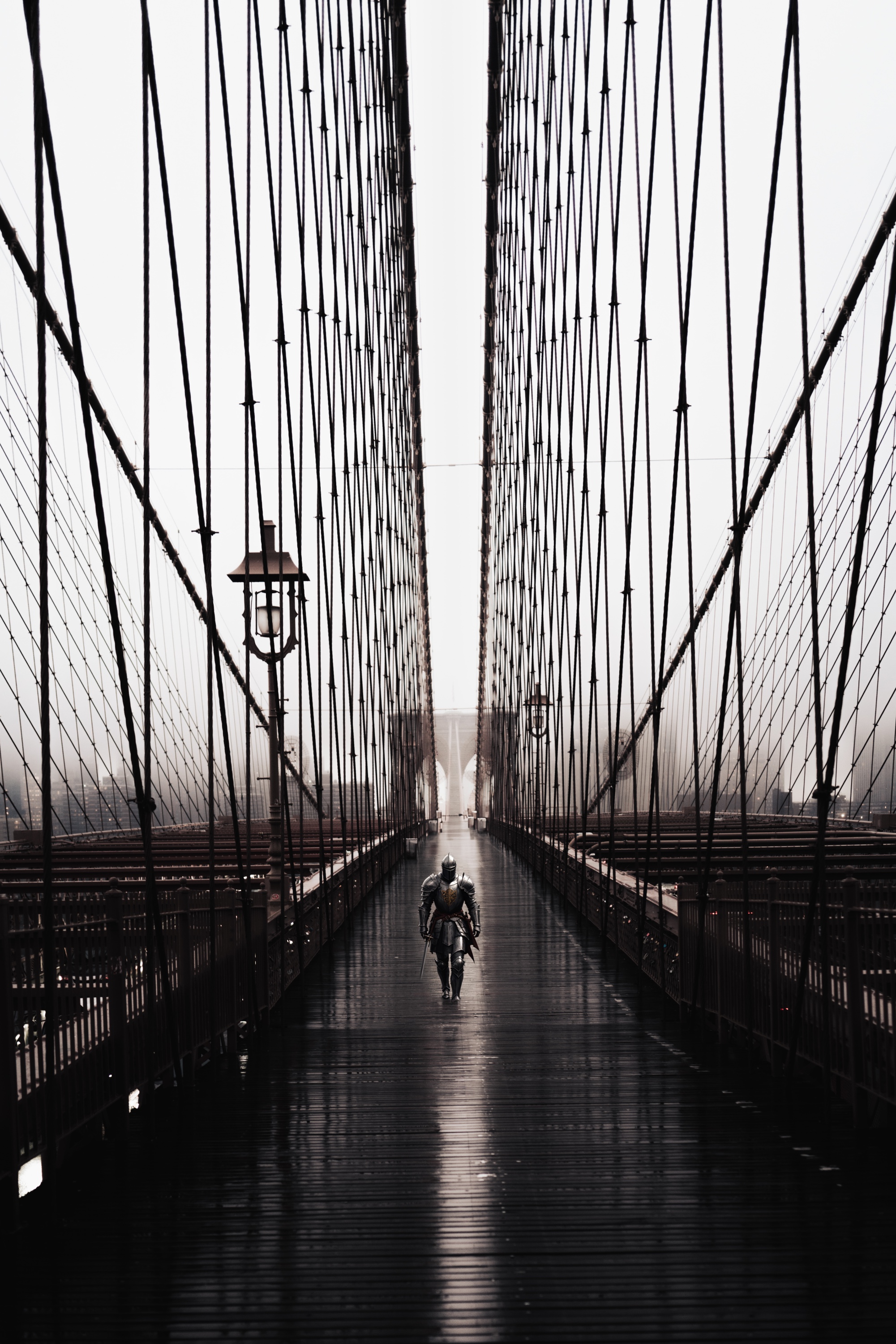 추가로 생성형 지우기로 주변 행인까지 삭제하니 옛날 뉴욕 거리를 촬영한 것 같은 모습으로 바뀌었어요. 지우기 기능에 비해 사용하기가 까다롭지만 잘 활용하면 재미있는 이미지를 만들 수 있습니다. 아래 사진은 사람을 중세 기사로 바꾼 이미지입니다. 게임 속 한 장면 같은 느낌이 들죠?