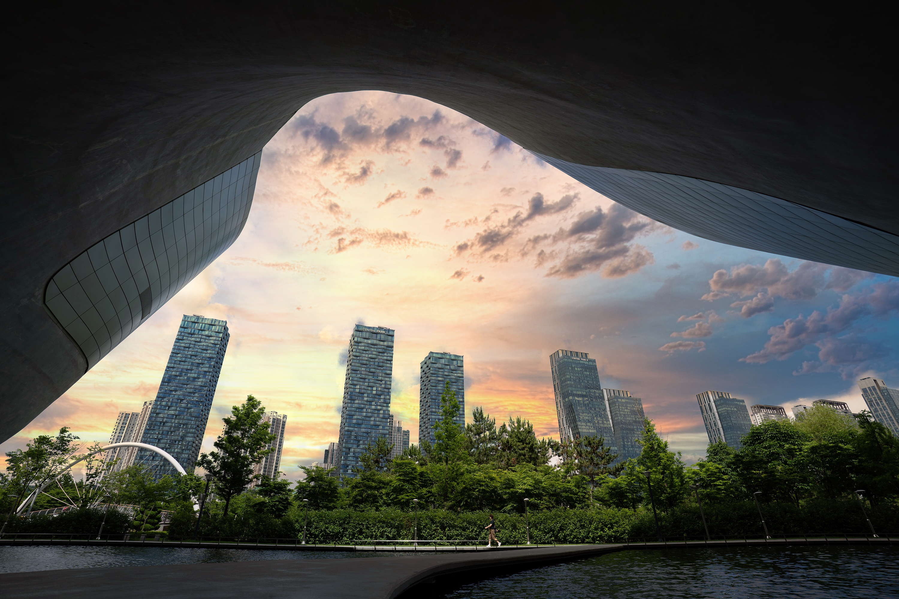 사진의 색감은 색온도 값으로 조절할 때가 많습니다만 노을 지는 풍경에서는 루미나 네오의 골든 아워 옵션이 효과가 좋아요. 풍경 사진 탭에서 디헤이즈, 골든 아워 두 개의 옵션을 주로 사용합니다. 디헤이즈 옵션은 안개나 잡광으로 인해 떨어진 대비를 높여주고 골든아워 옵션은 사진 전체에 은은한 노란 빛을 씌웁니다. 색온도 조절보다 결과물이 오히려 더 자연스러워서 애용하고 있어요. 노랗게 강조해야 할 부분에만 제대로 적용되는 느낌입니다.