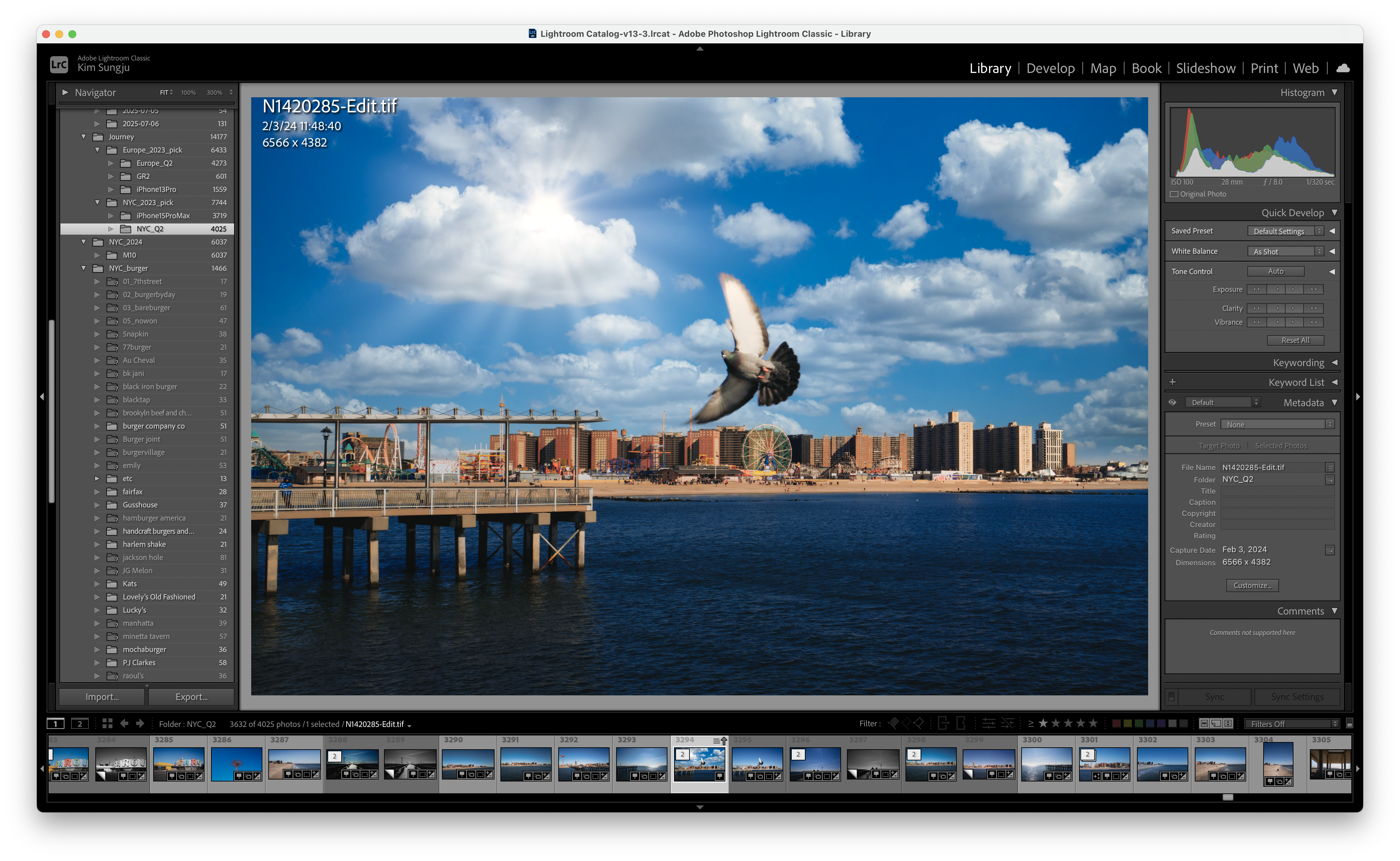 실행 화면 상단에 세 가지 메뉴가 있습니다. 카탈로그는 주로 저장된 사진들을 확인하는 데 사용되지만 최근 업데이트를 통해 생성형 기능들과 병합 도구를 카탈로그 화면에서 사용할 수 있게 됐습니다. 별도로 프리셋/편집 메뉴에 진입할 필요 없이 카탈로그 화면에서 간단한 편집 작업을 즉시 실행할 수 있어 좋습니다.