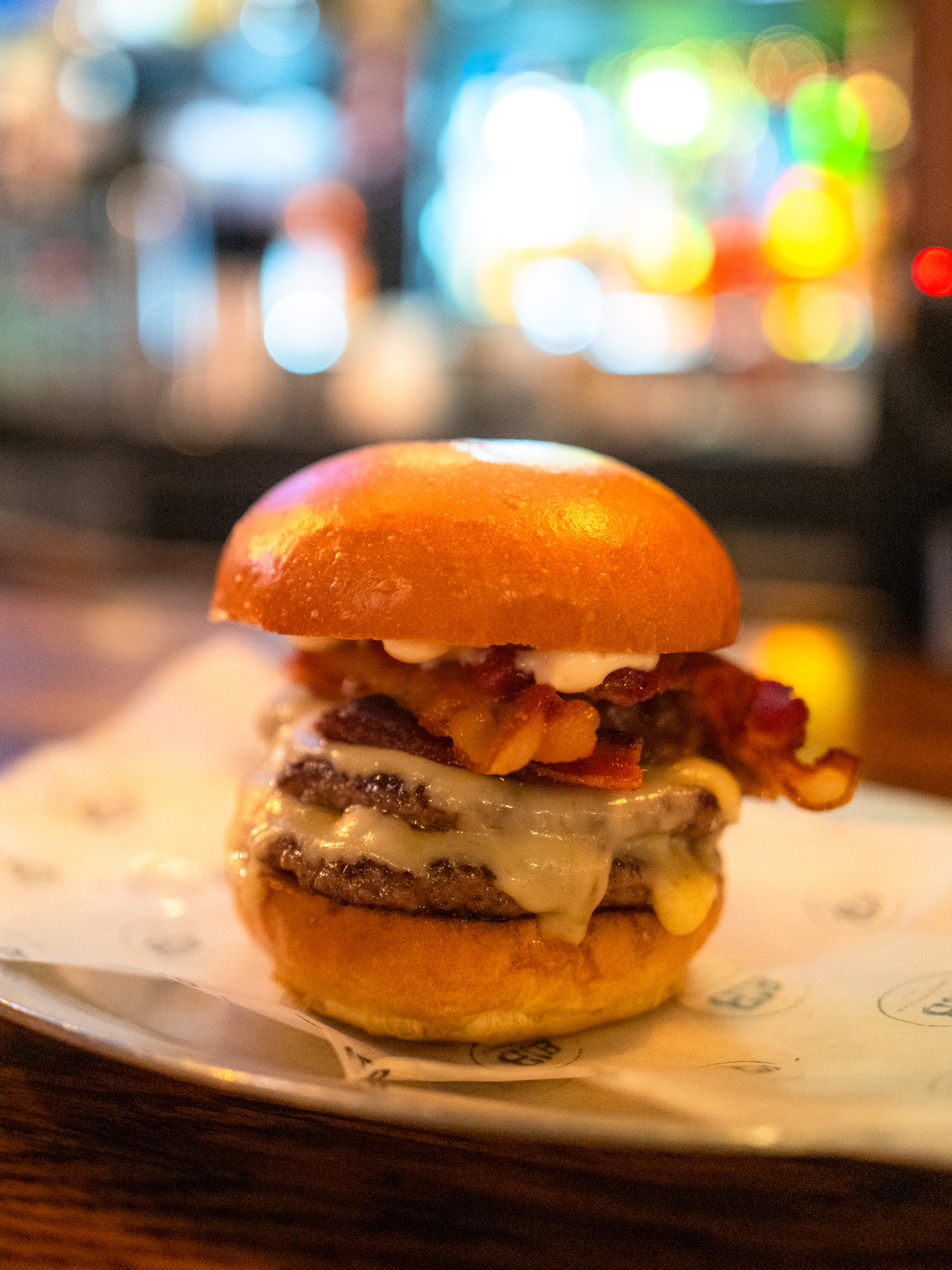 이 집의 자랑인 고기에는 높은 점수를 줍니다. 4온스의 패티는 이상적인 미디엄 굽기로 식감과 육즙이 만족스러웠어요. 더블 패티가 주는 풍성함도 있고요. 단점으로는 단조로운 식감을 꼽습니다. 신선 채소 없이 양파마저 캐러멜라이징 한 것을 넣은 버거는 씹는 재미가 부족했어요. 바텐더가 추천한 베이컨이 좋은 선택이었습니다. 바삭한 식감이 더해지니 먹기가 한결 낫더군요. 기본기는 좋지만 구성이 제 취향이 아니었던 버거였습니다.