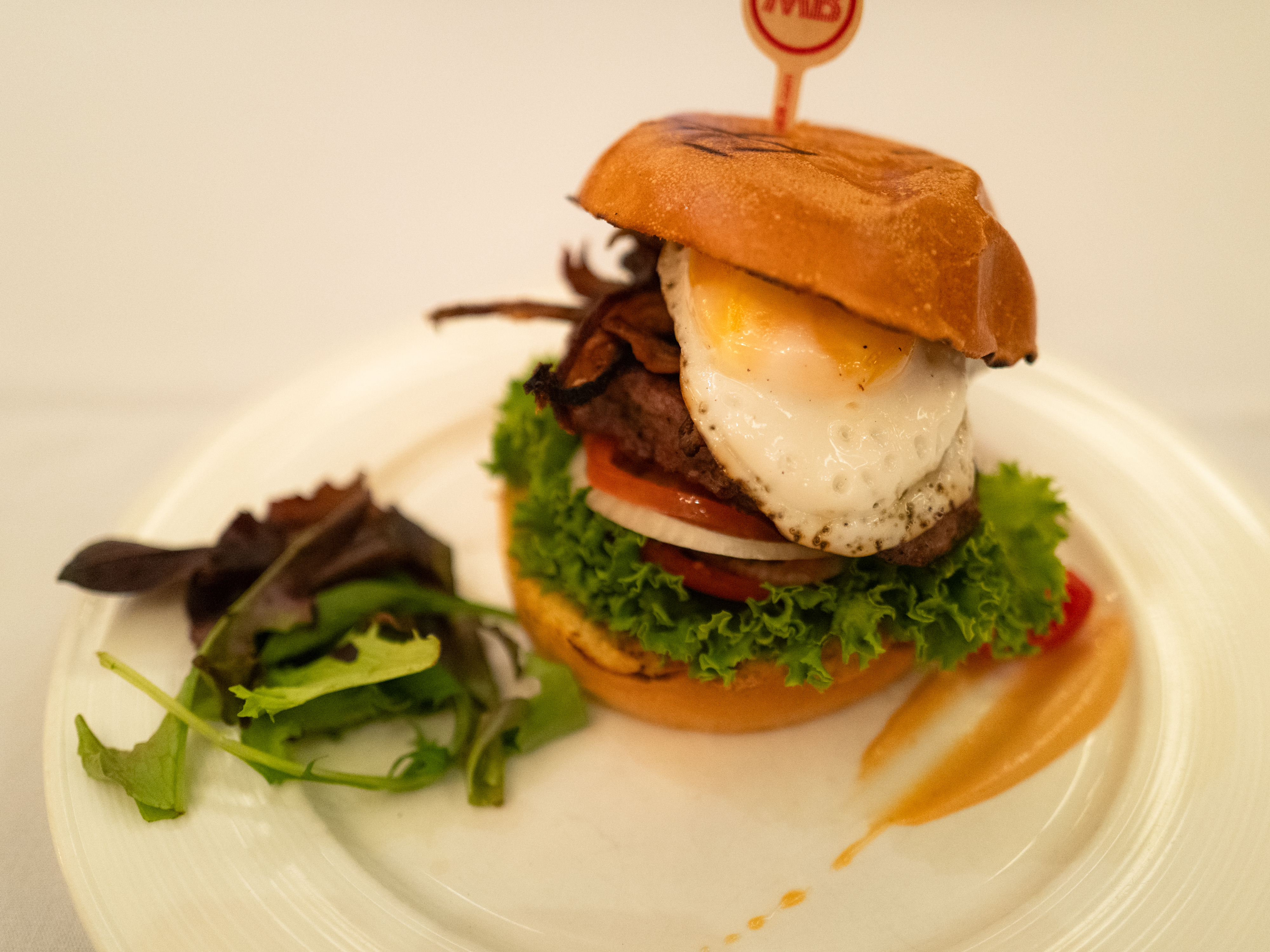 가 주문한 버거는 MB 클래식 BLT 버거입니다. 기본 MB 클래식 버거(26달러)에 달걀과 양고기 베이컨이 추가된 것입니다. 가격은 32달러로 상당히 비싼 편입니다. 이 외에도 이집 버거들의 가격은 대부분 30달러를 넘습니다. 채소와 고기, 달걀 순으로 재료들을 쌓아 올린 뒤 무너지지 않게 나무 꼬챙이를 꽂아 놓았습니다. 캐주얼 레스토랑에서는 나무 대신 나이프를 버거에 꽂아 내 놓곤 하죠. 그보단 이쪽이 좀 더 점잖아보이는 것은 분명합니다. 거기에 접시에 소스를 바른 모양새까지. 고급 레스토랑 답게 담음새에 신경을 꽤 썼습니다.