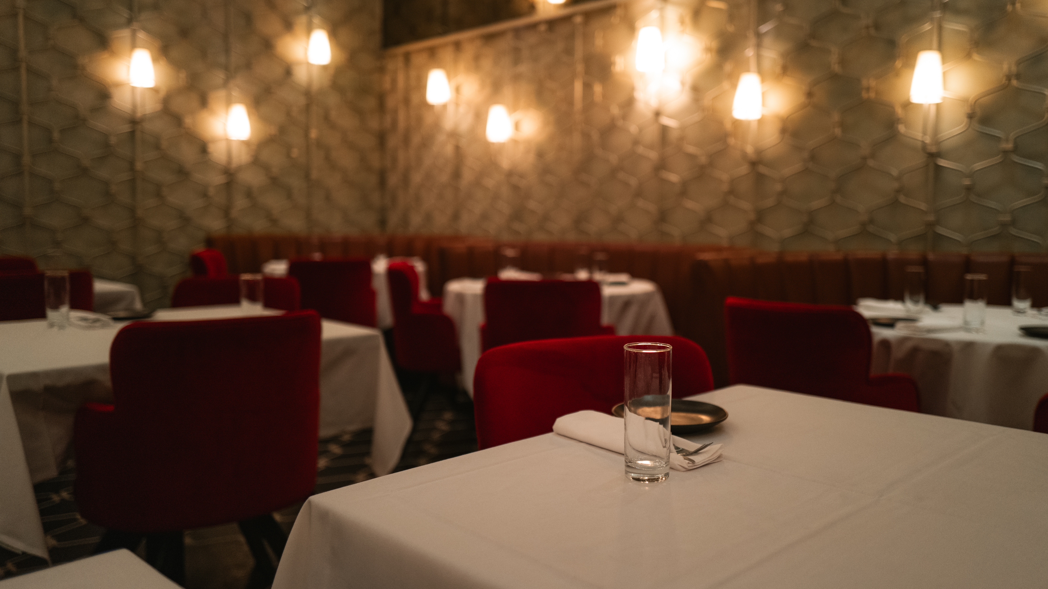 럭스(LUX)라는 이름만큼 실내는 꽤나 크고 화려합니다. 입구에 들어서자마자 유명한 카우스(KAWS)의 조형물이 서 있고 웬만한 버거집 크기만한 바가 이어집니다. 그리고 긴 바를 지나 홀에 입성하면 모던 레스토랑으로 분위기가 또 한 번 바뀝니다. 어둑어둑한 조명, 벨벳 느낌의 빨간 의자, 흰색 식탁보 그리고 금속 벽 장식. 벽쪽에는 가죽으로 된 소파 좌석도 있습니다.