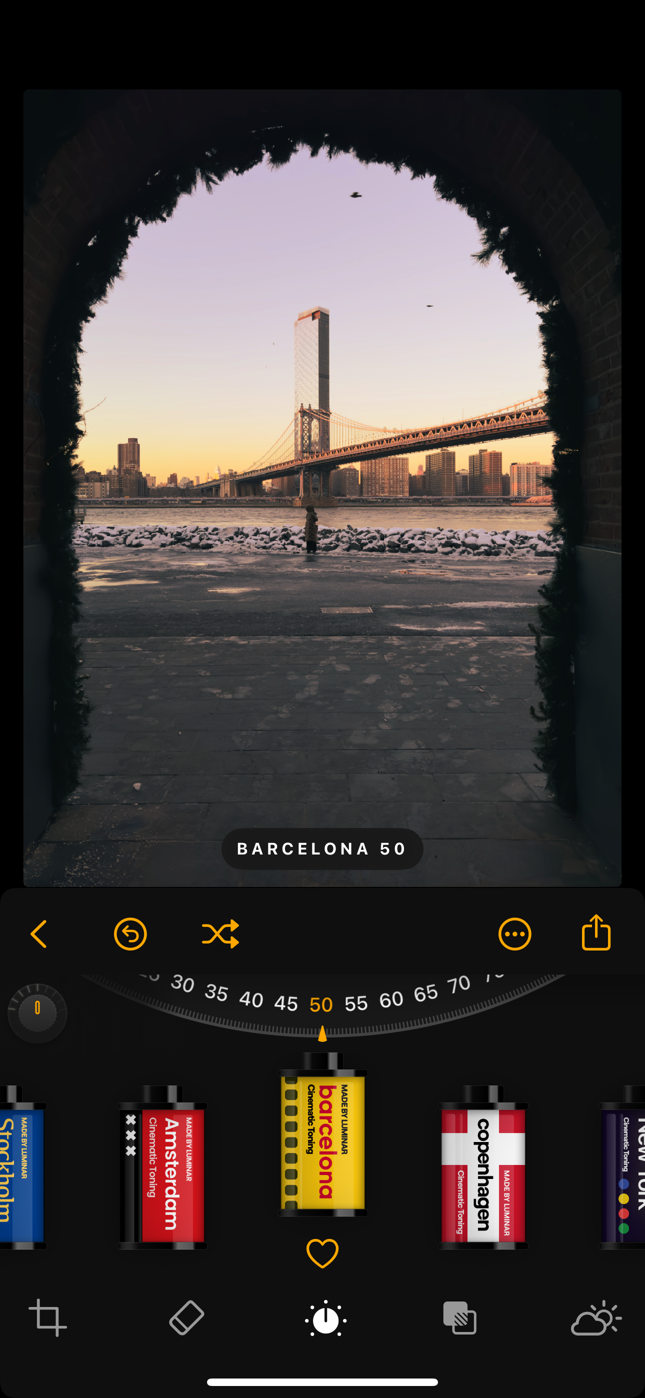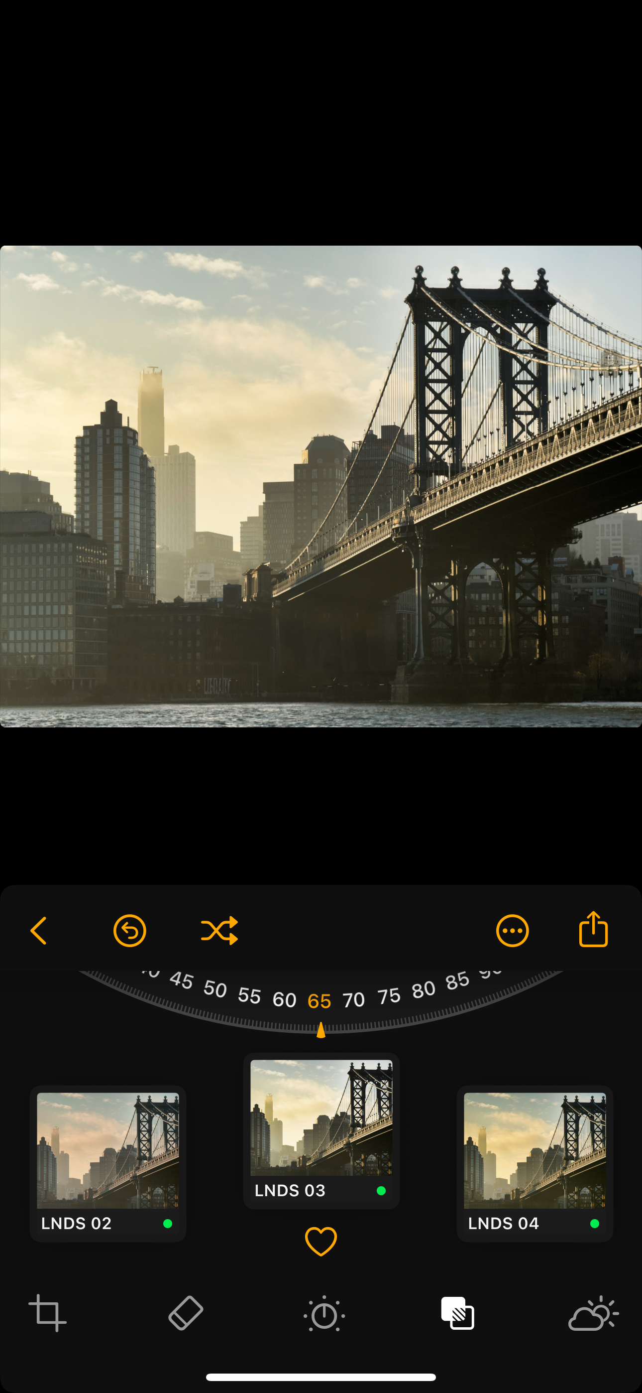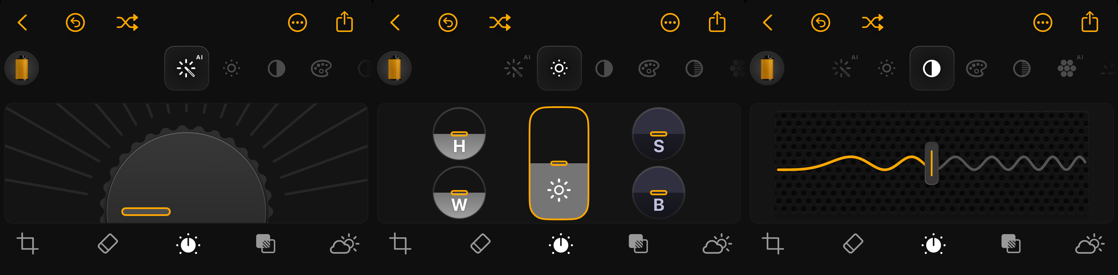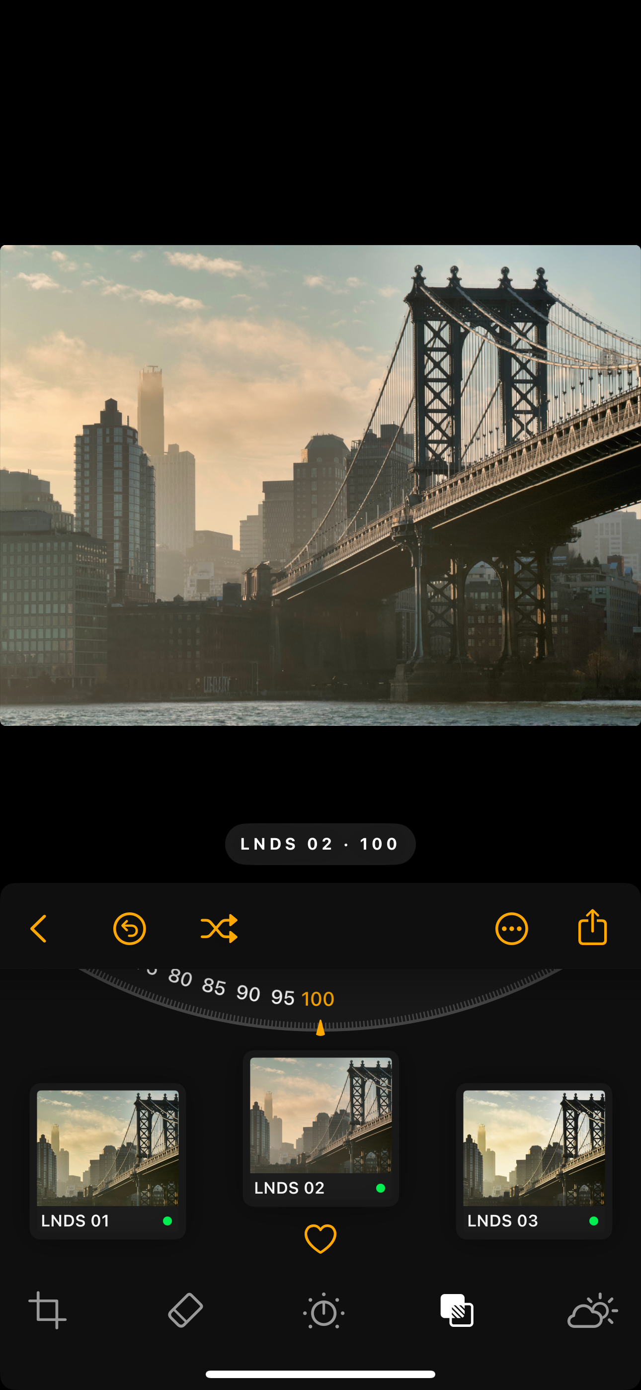노출과 WB, 하이라이트/그림자, 샤프니스 등 전문 이미지 편집 툴의 옵션들을 모두 갖추고 있습니다. 거기에 루미나 시리즈의 장점인 하늘, 사람 등의 AI 편집 기능이 추가된 것이 특징입니다. 모바일 환경에 맞춰 손가락 하나로 모든 조작이 가능하도록 한 것, 각각의 기능에 맞춰 직관적인 UI를 도입한 것이 눈에 띕니다. 다이얼을 돌리던지 게이지를 올리는 방식이죠. 덕분에 복잡한 기능들을 손쉽게 사용할 수 있어요.