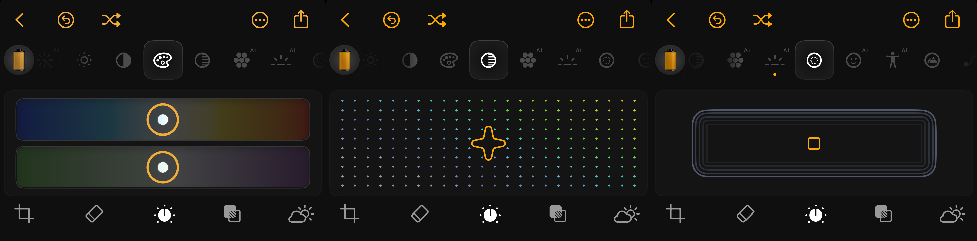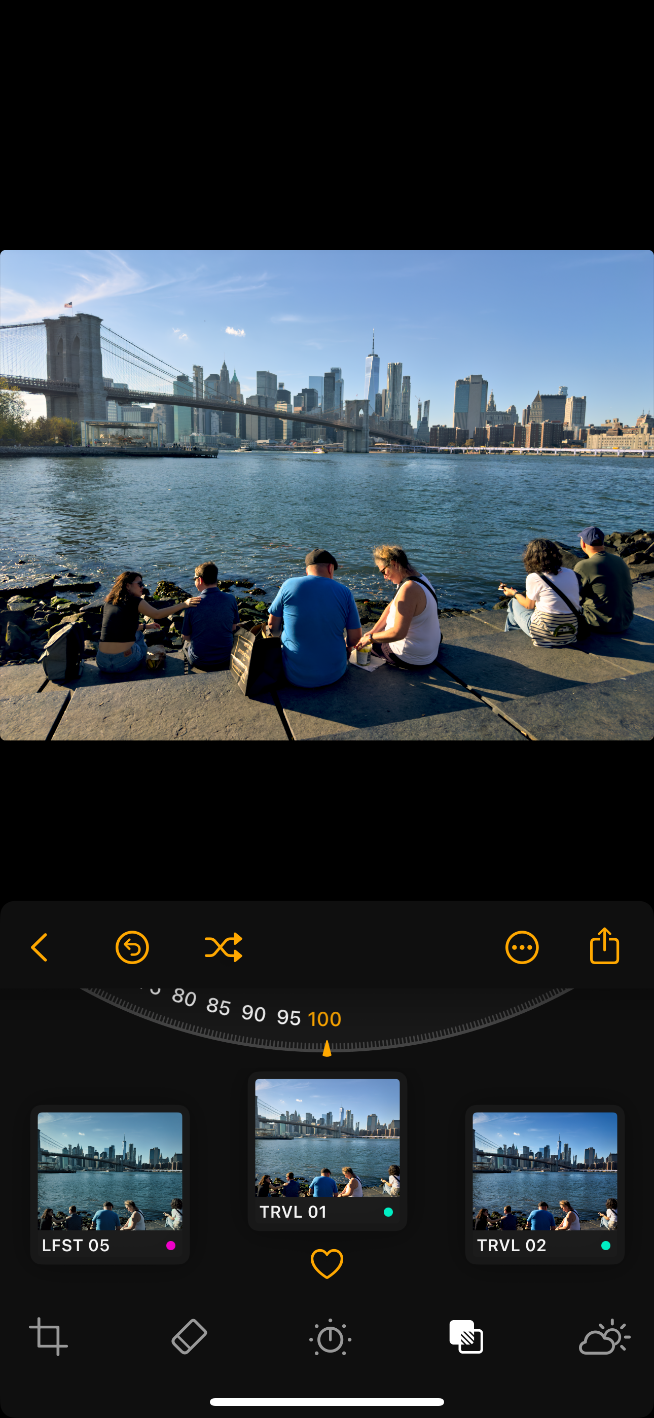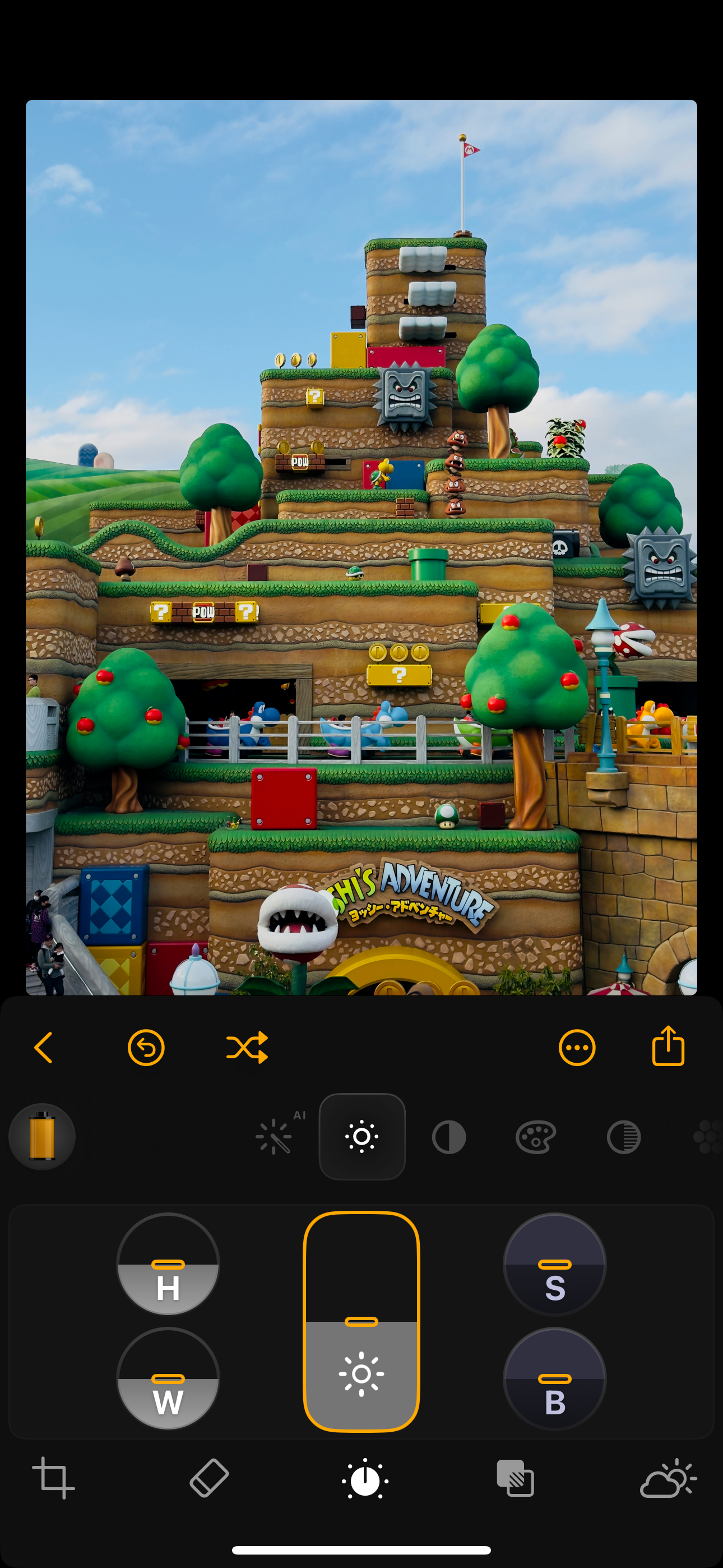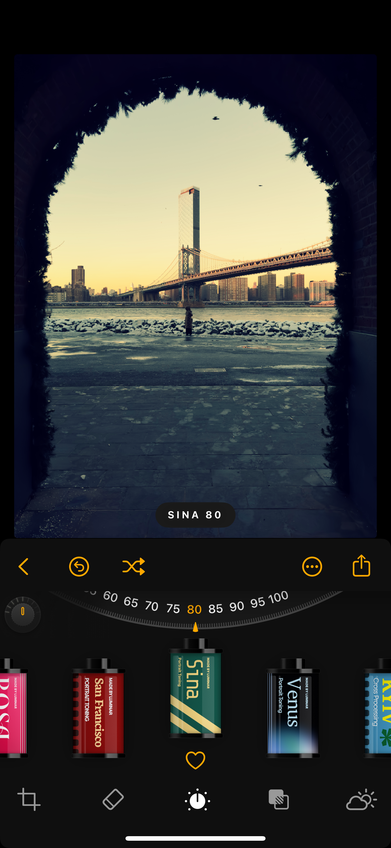 노출과 WB, 하이라이트/그림자, 샤프니스 등 전문 이미지 편집 툴의 옵션들을 모두 갖추고 있습니다. 거기에 루미나 시리즈의 장점인 하늘, 사람 등의 AI 편집 기능이 추가된 것이 특징입니다. 모바일 환경에 맞춰 손가락 하나로 모든 조작이 가능하도록 한 것, 각각의 기능에 맞춰 직관적인 UI를 도입한 것이 눈에 띕니다. 다이얼을 돌리던지 게이지를 올리는 방식이죠. 덕분에 복잡한 기능들을 손쉽게 사용할 수 있어요.
