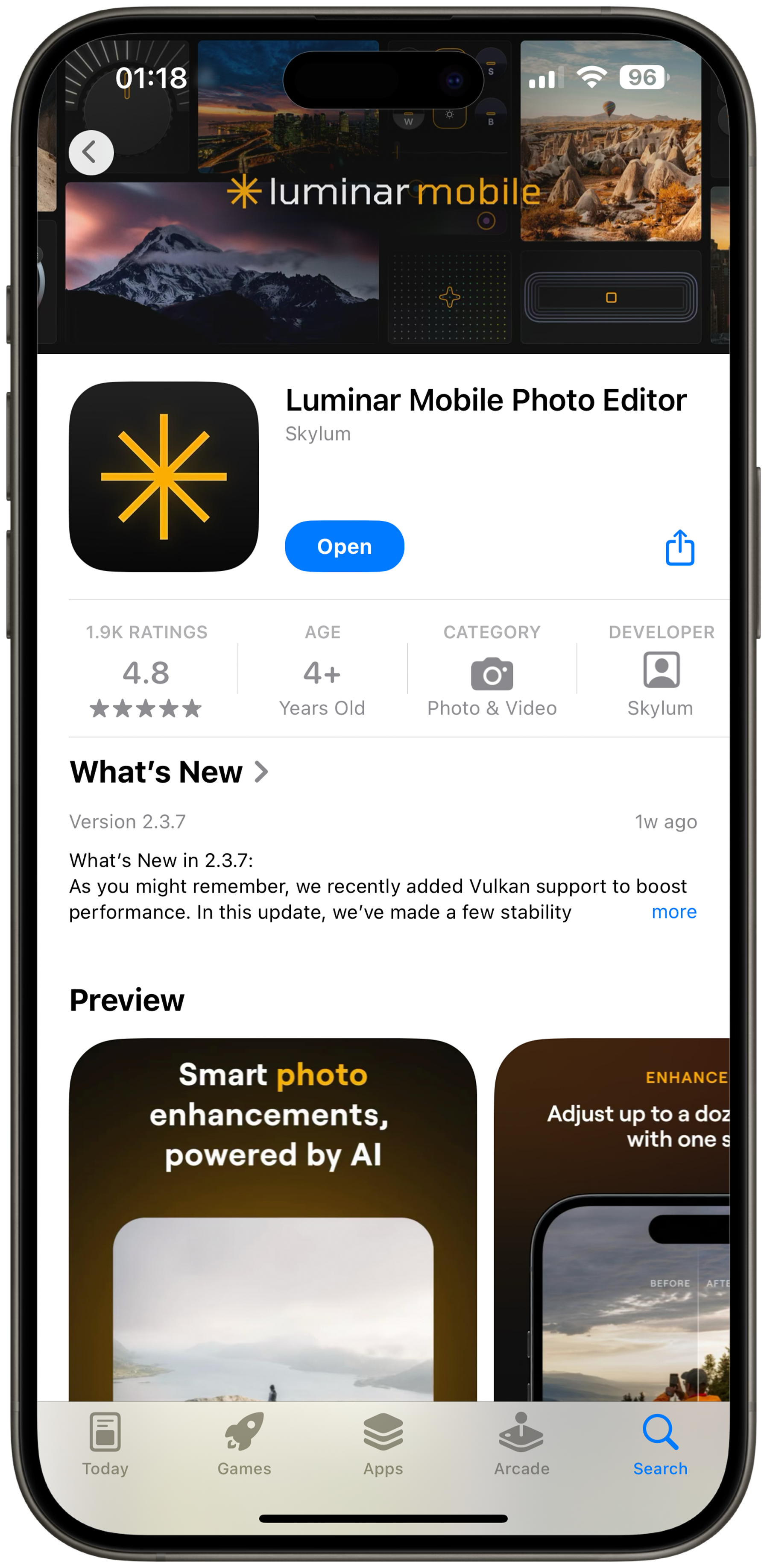AI 기반 이미지 편집 툴 루미나(Luminar) 시리즈로 알려진 SKYLUM의 모바일 어플리케이션 루미나 모바일을 사용하고 있습니다. 하늘 합성, 인물 피부 및 몸매 보정 등으로 좋은 평가를 받았던 루미나 네오의 기능 대부분을 스마트폰, 태블릿에서 이용할 수 있는 것이 강점입니다. 특히 스마트폰으로 촬영한 사진을 간편하게 편집할 용도로 추천할 수 있겠어요. 저도 아이폰으로 촬영한 여행 사진들은 이 앱으로 편집하고 있습니다.