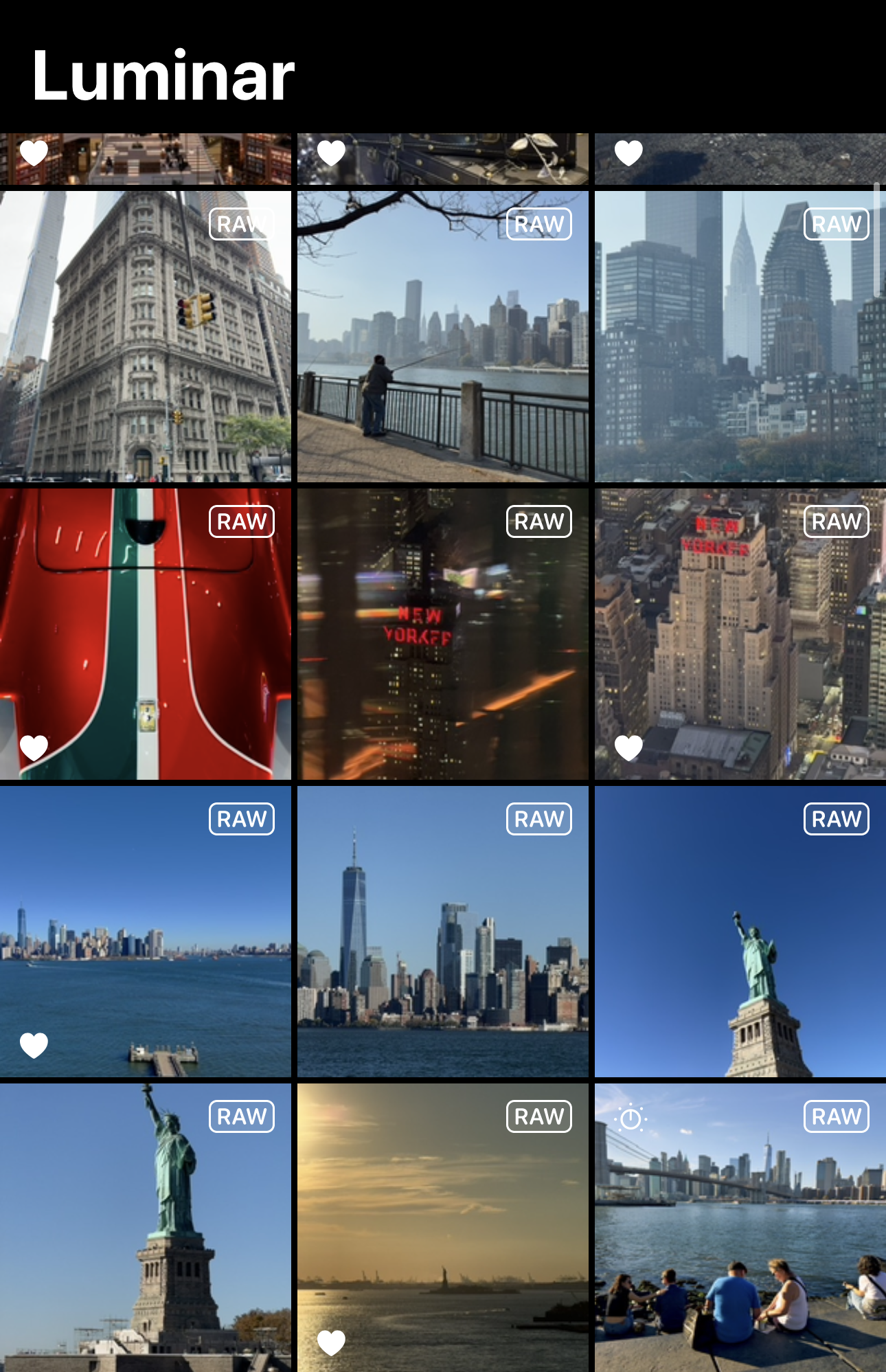 스마트폰 사진 앱과의 연동도 뛰어납니다. 별도의 라이브러리를 만들 필요 없이 아이폰의 사진첩을 그대로 불러올 수 있고 즐겨찾기 설정도 공유합니다. 포맷 역시 JPG, HEIF, RAW 파일을 모두 지원합니다. 아이폰에서 읽을 수 있는 이미지 포맷이라면 루미나 모바일에서 불러오고 편집할 수 있습니다.