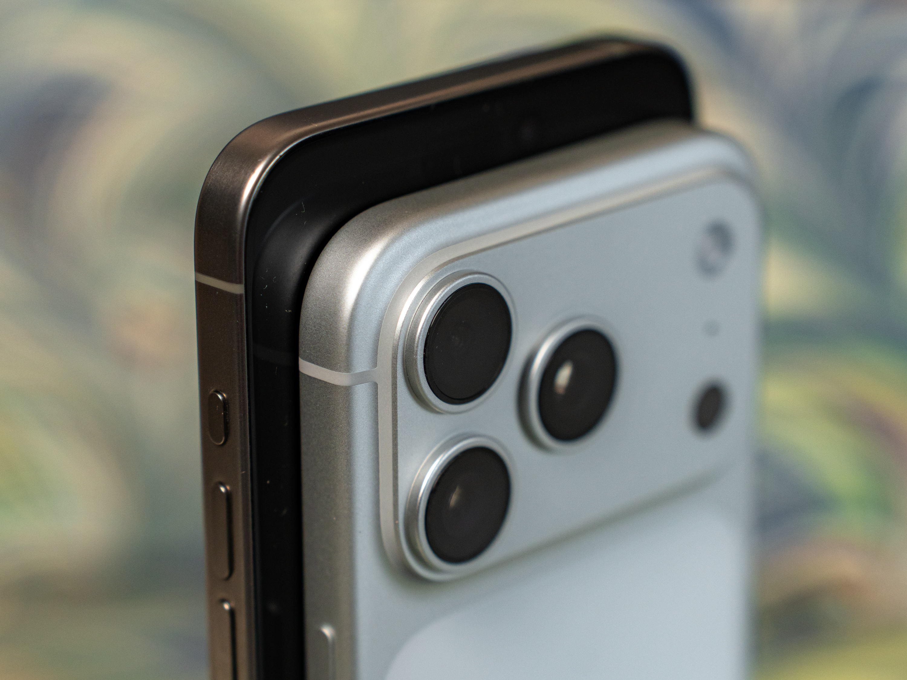 아이폰 15 프로 맥스와의 비교입니다. 아이폰 17 프로의 뒷면은 알루미늄과 유리, 15 프로 맥스는 유리로 돼 있습니다. 일체감은 아무래도 15 프로 맥스쪽이 낫죠. 디자인에 대한 평가는 다분이 개인의 취향을 따릅니다만 간결한 쪽이 더 대중적인 것은 분명하겠죠.