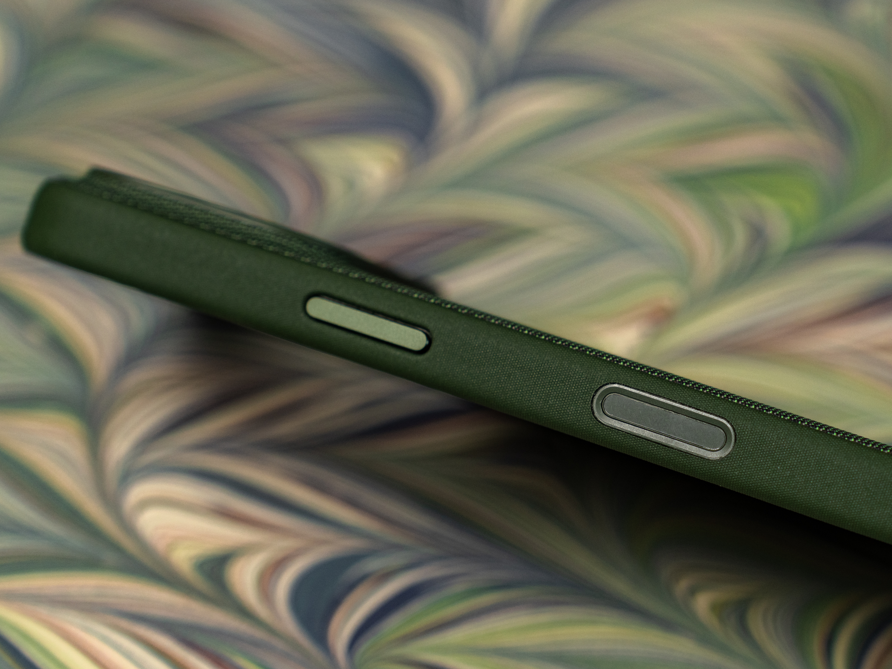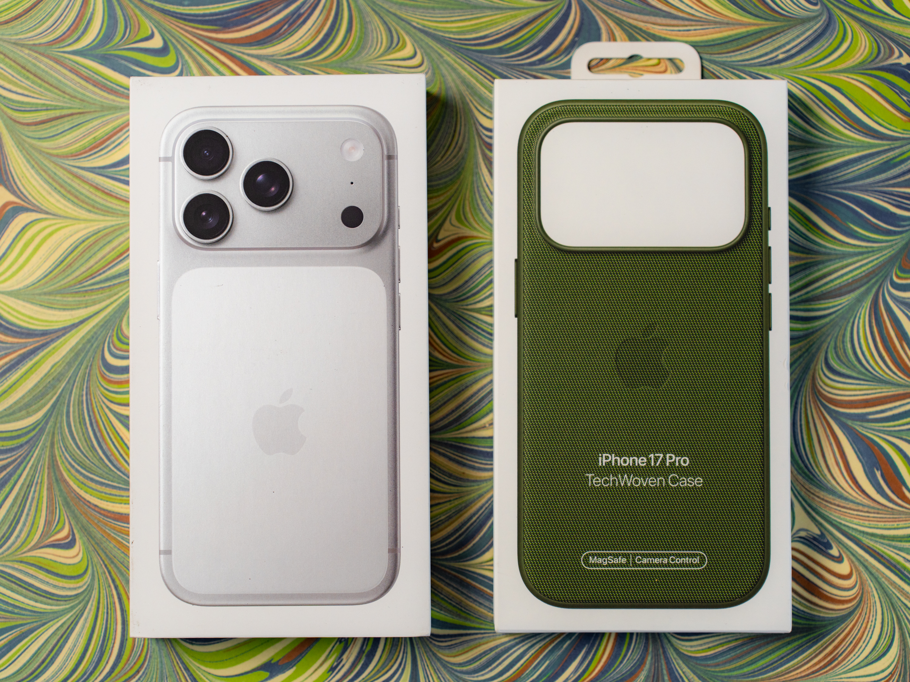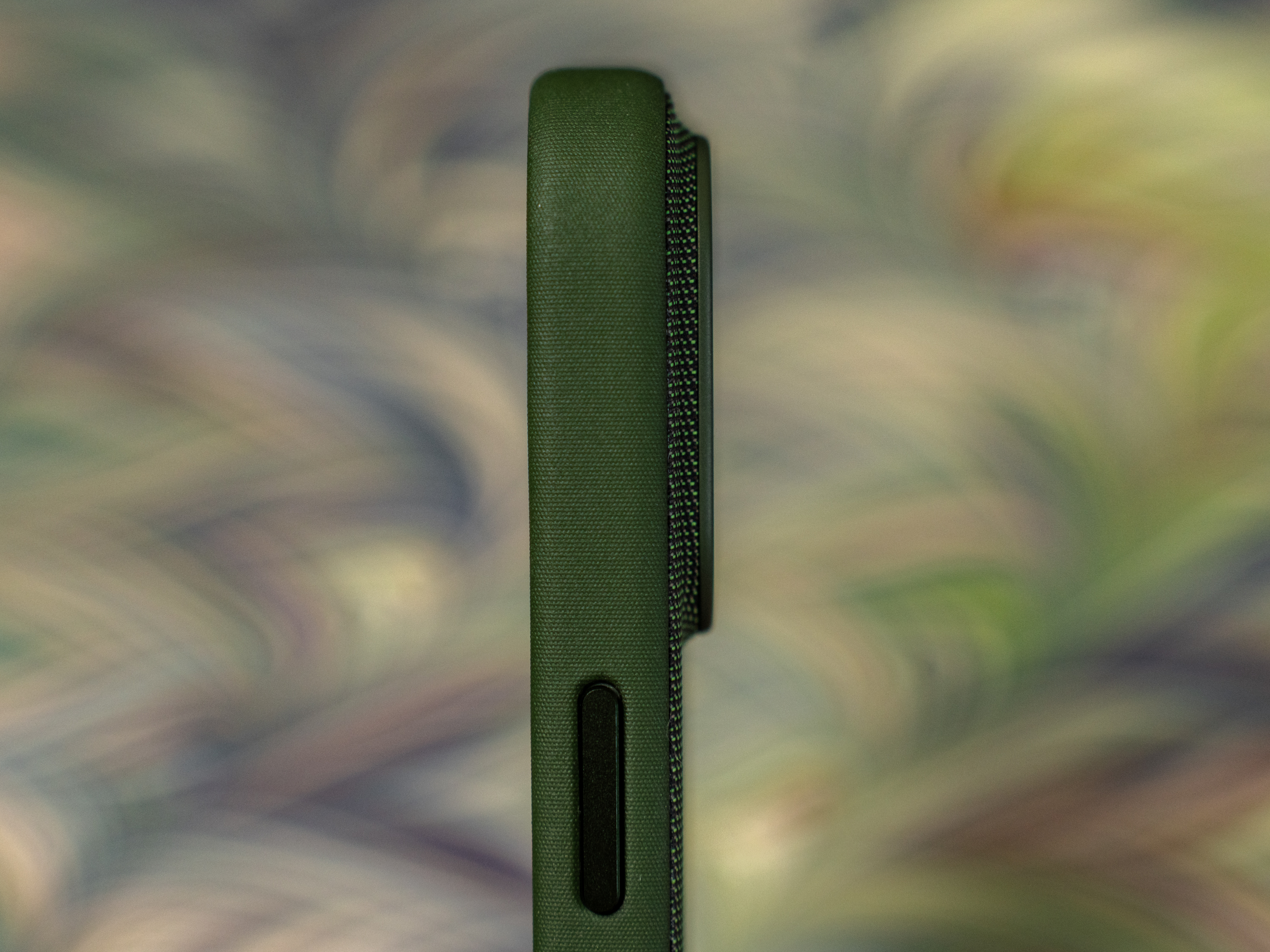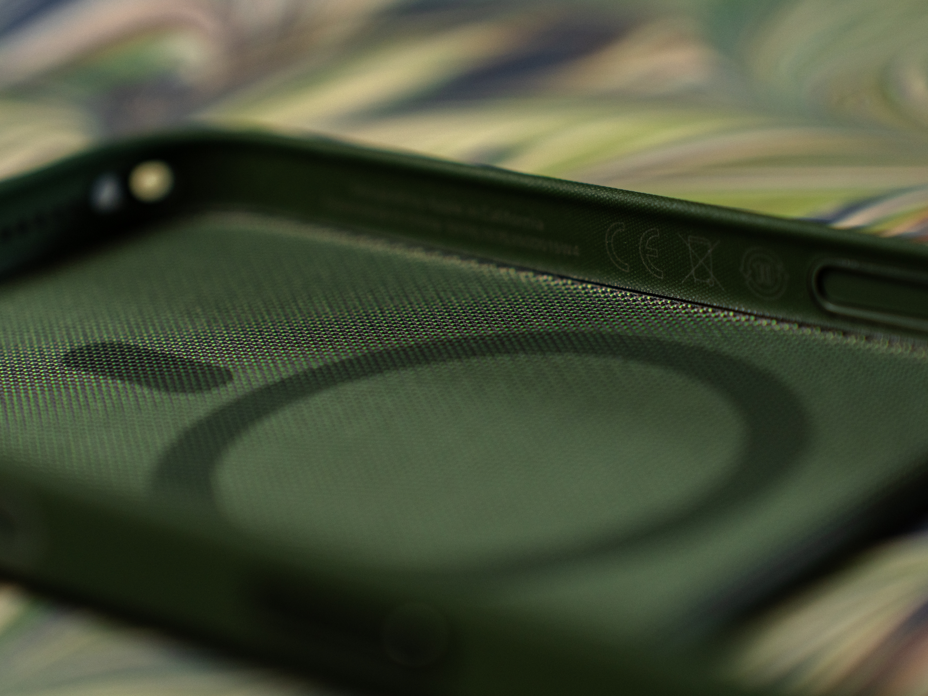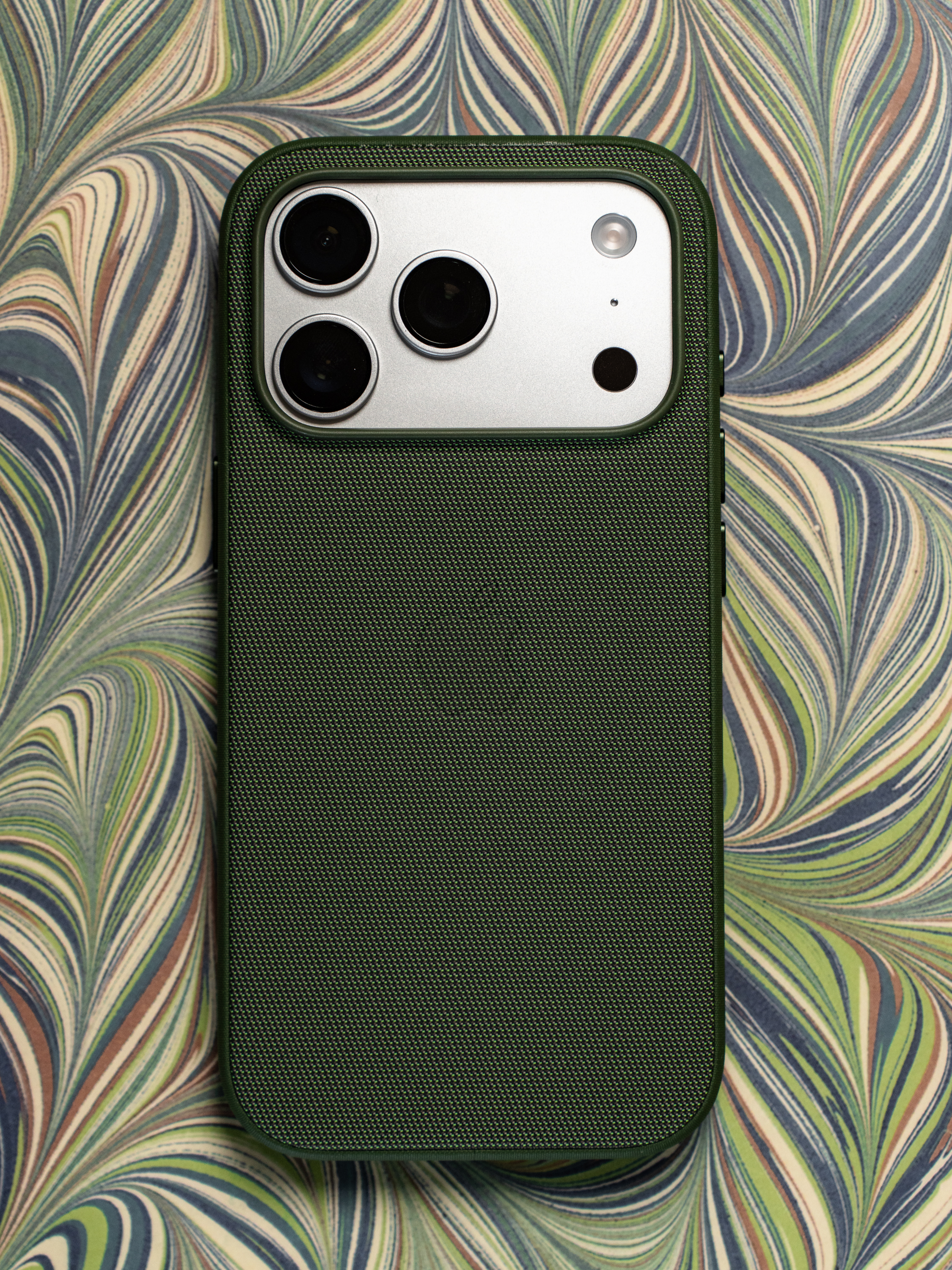 새로운 테크우븐 케이스는 파인우븐 시리즈의 문제가 해결됐다는 평이 많았어요. 사진으로 봤을 때 컬러도 제 맘에 들길래 폰과 함께 구매했습니다. 폰은 아이폰 17 프로 실버, 케이스는 그린입니다. 프로 모델용으로만 테크우븐 케이스가 출시됐다고 해요.