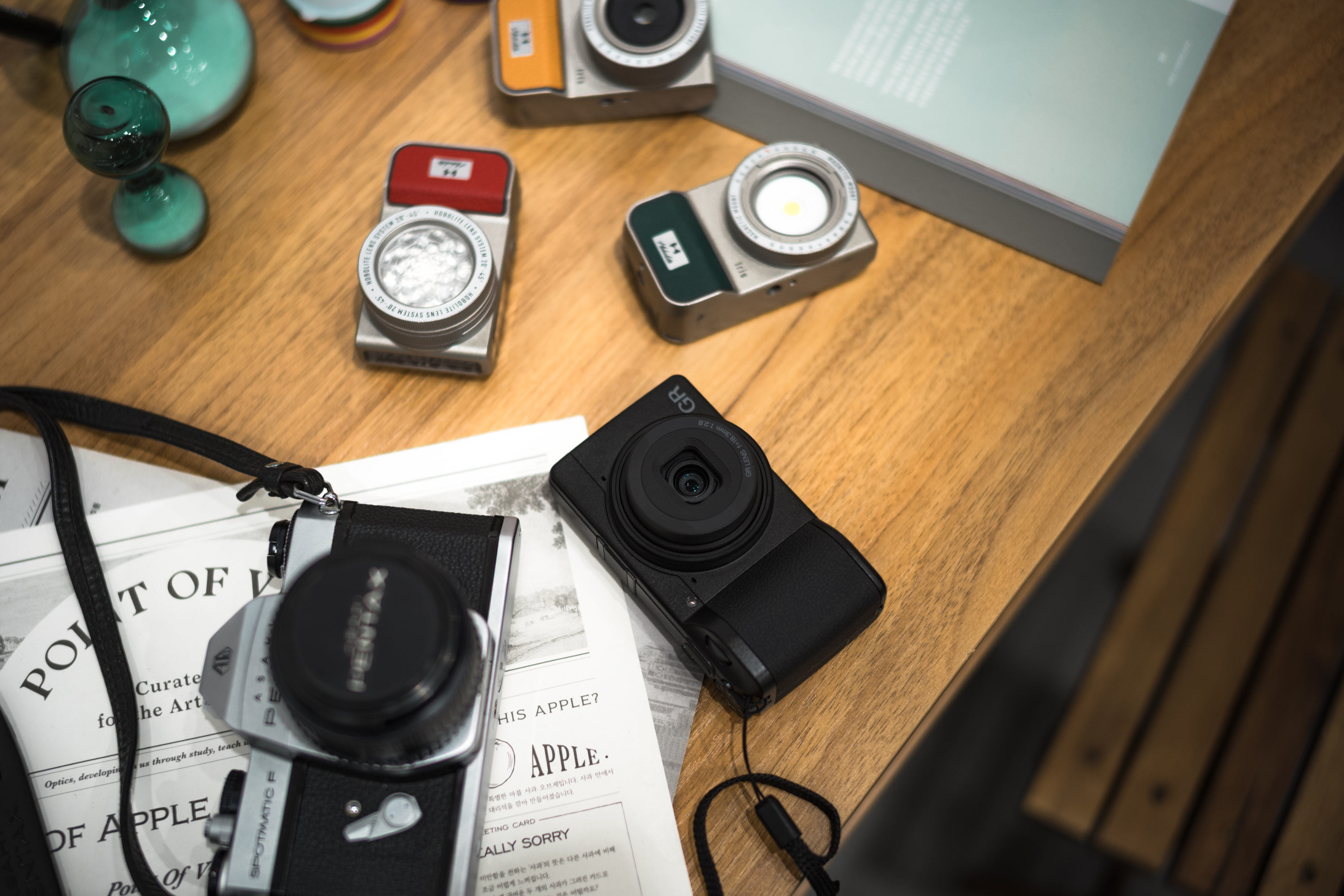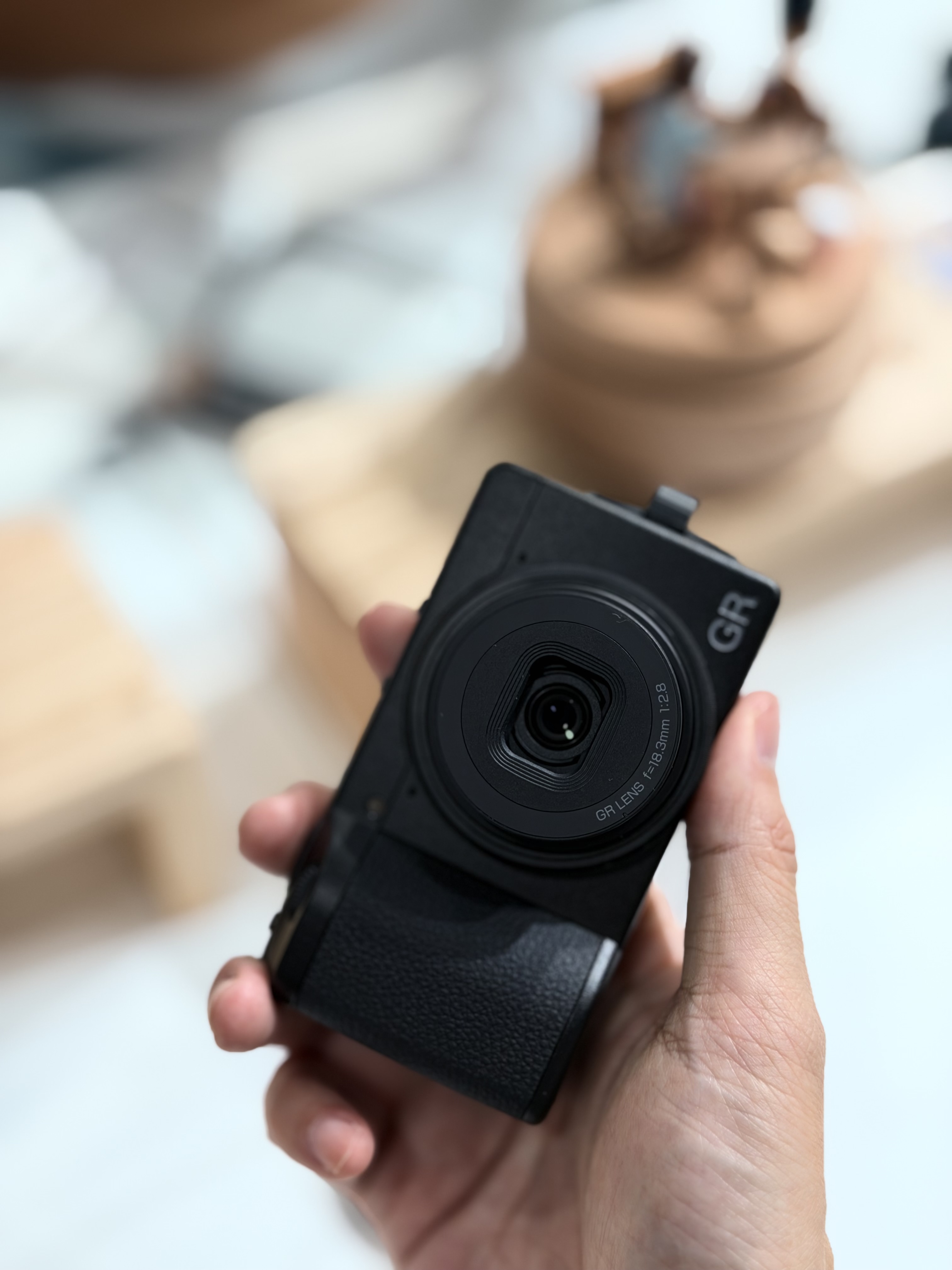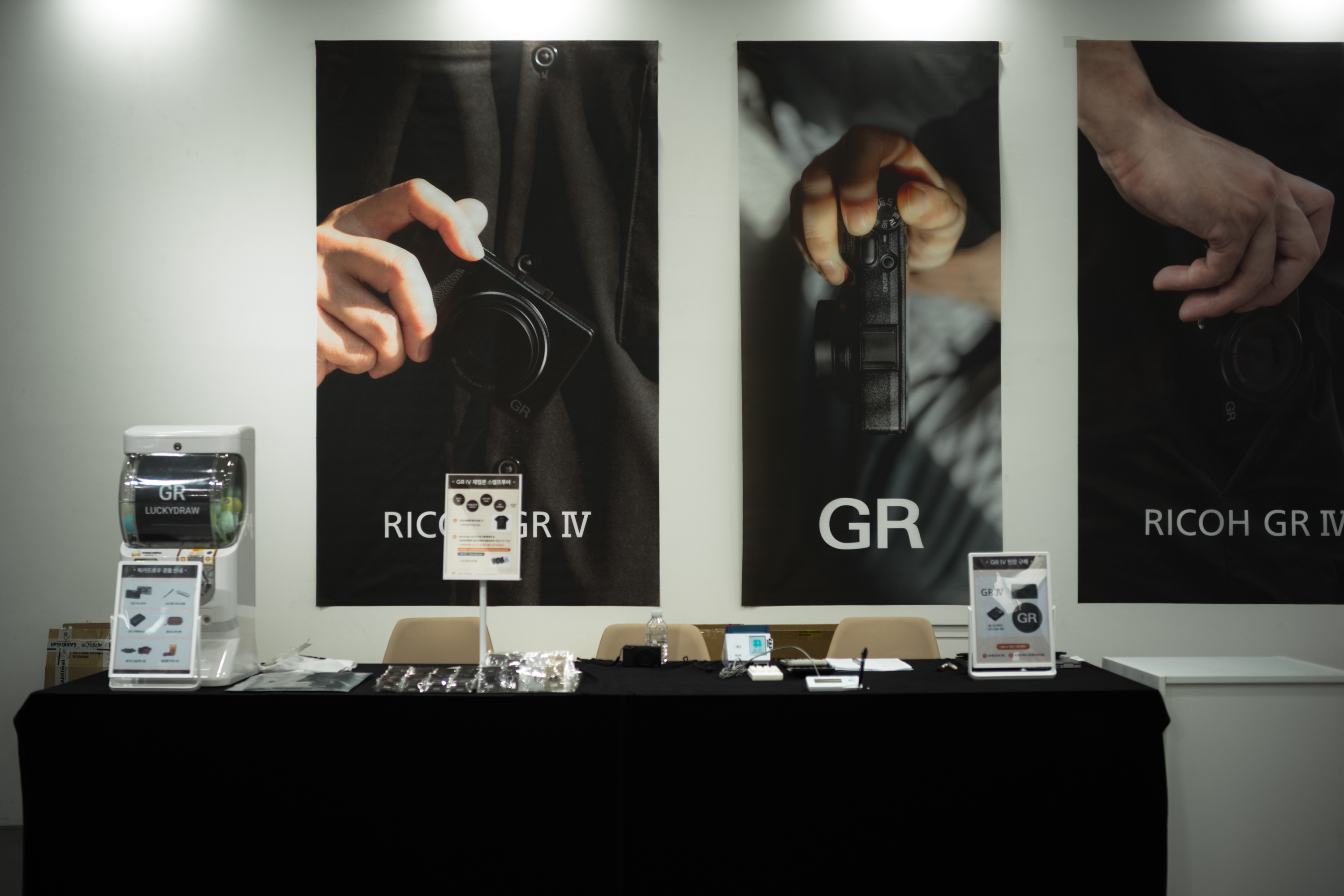 사진가의 방을 테마로 꾸며진 미니 스튜디오에서 직접 사진을 찍어 볼 수 있는 기회까지. 총 네 구역을 돌며 GR4를 다각도로 경험해 볼 수 있었습니다. GR4를 처음 쥐었을 땐 작다는 생각을 못했는데 함께 참석한 지인의 GR3와 비교해보니 2mm 두께가 감소한 것이 그립감에 큰 영향을 미치더군요. 조금 더 경쾌한 인상을 받았습니다.