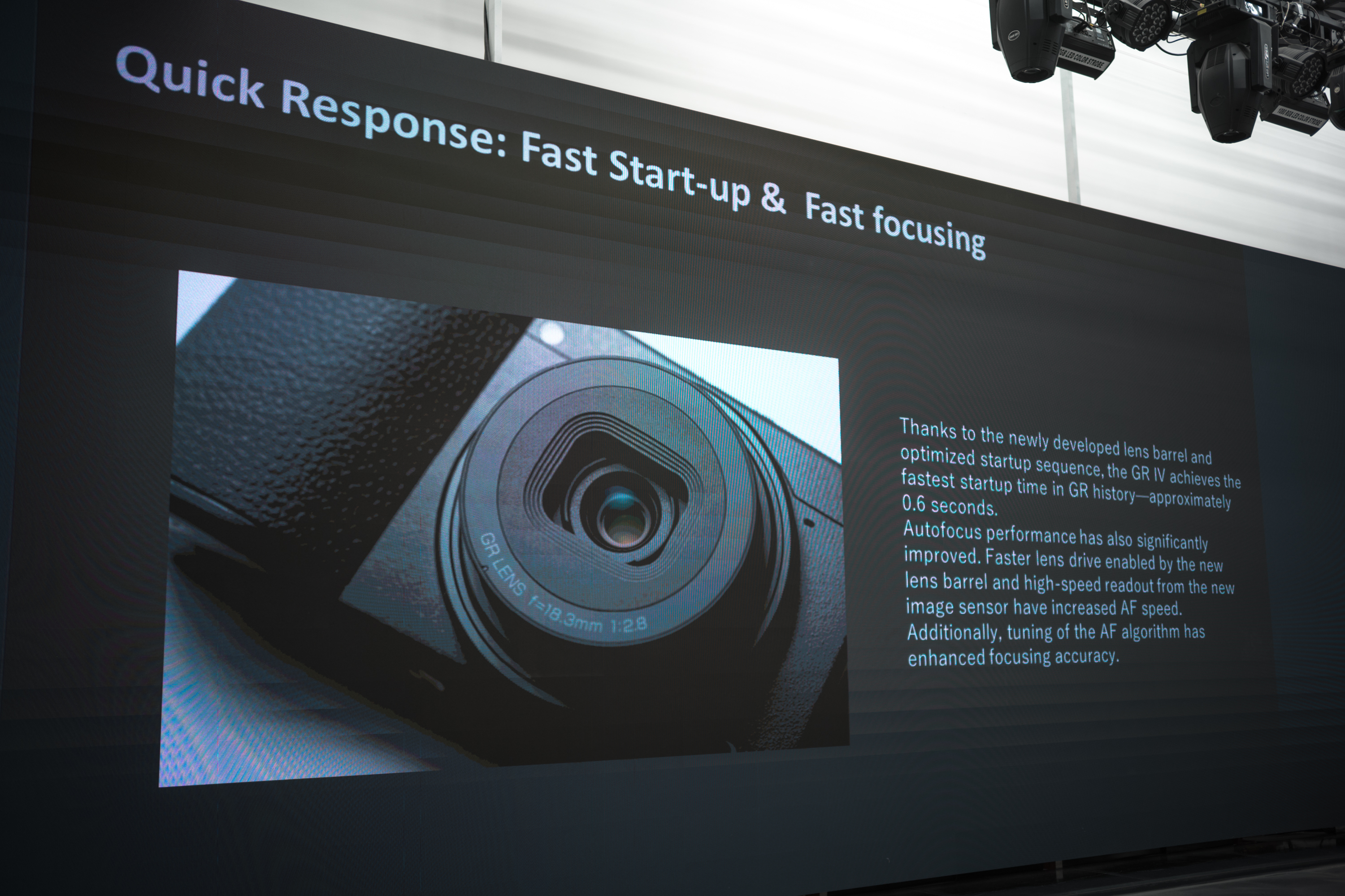 신제품인 GR4은 기동성과 화질을 향상 시켰습니다. 빠른 스냅, 거리 사진에 주로 활용되는만큼 전원 버튼을 눌러 촬영이 가능할 때까지의 시간을 전작 대비 크게 줄였습니다. 제조사 발표 기준 0.6초라고 합니다. 이전 GR 시리즈가 렌즈 구동 시간까지 더해져 제법 답답했는데 현장에서 만져보니 정말로 빨라졌더군요. 주머니에서 꺼내며 전원 버튼을 누르면 곧장 촬영이 가능한, 그런 장면을 상상해 보았습니다.