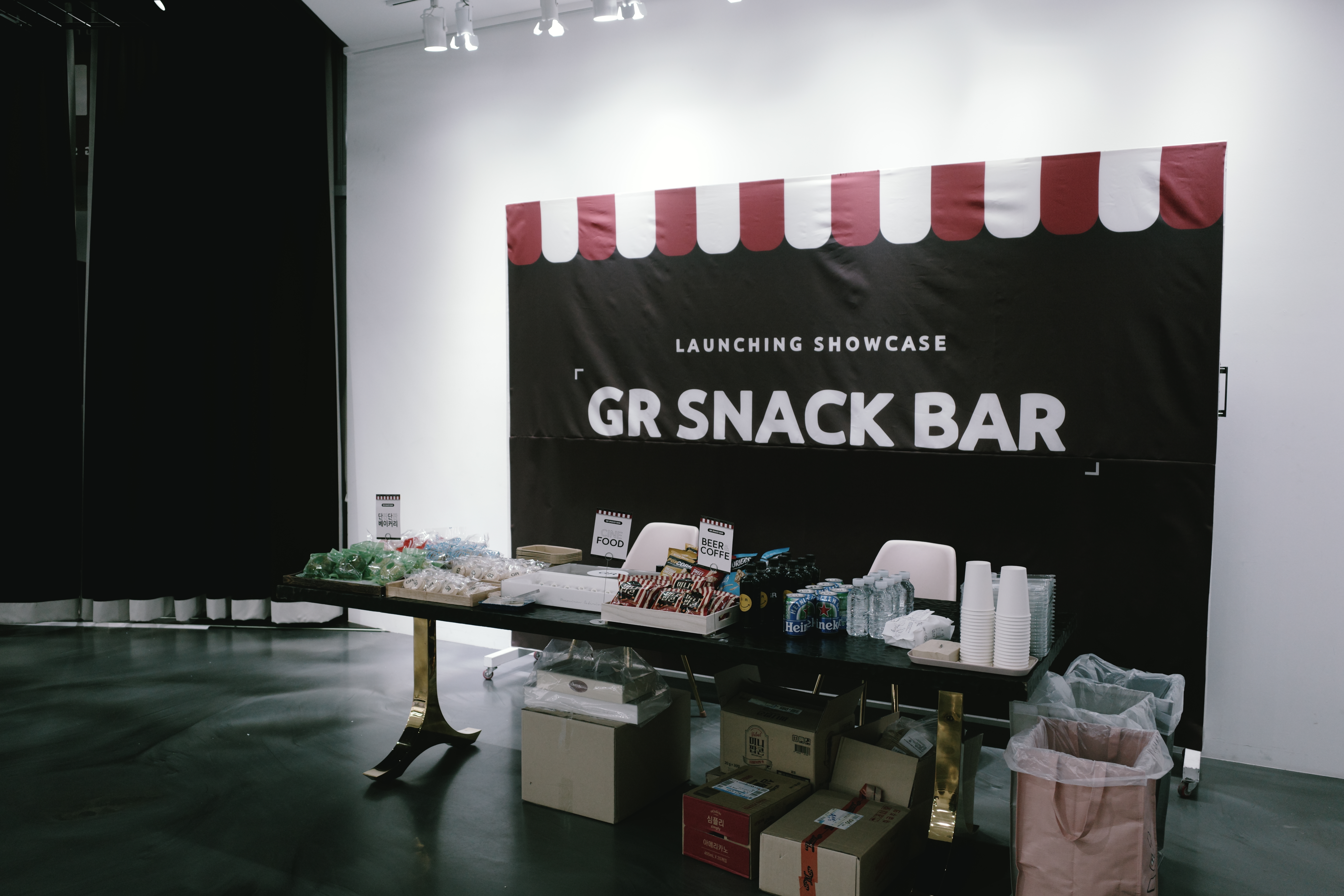 행사 이름과 어울렸던 GR 씨어터. 극장처럼 꾸며진 공간에서 GR 앰배서더들의 인터뷰, 작례들을 볼 수 있었습니다. 세 작가는 작품 스타일만큼이나 같은 제품의 바라보는 시선이 확연하게 달랐어요. 게다가 영상을 보면서 먹을 수 있는 간식들도 준비돼서 즐겁게 감상했습니다.