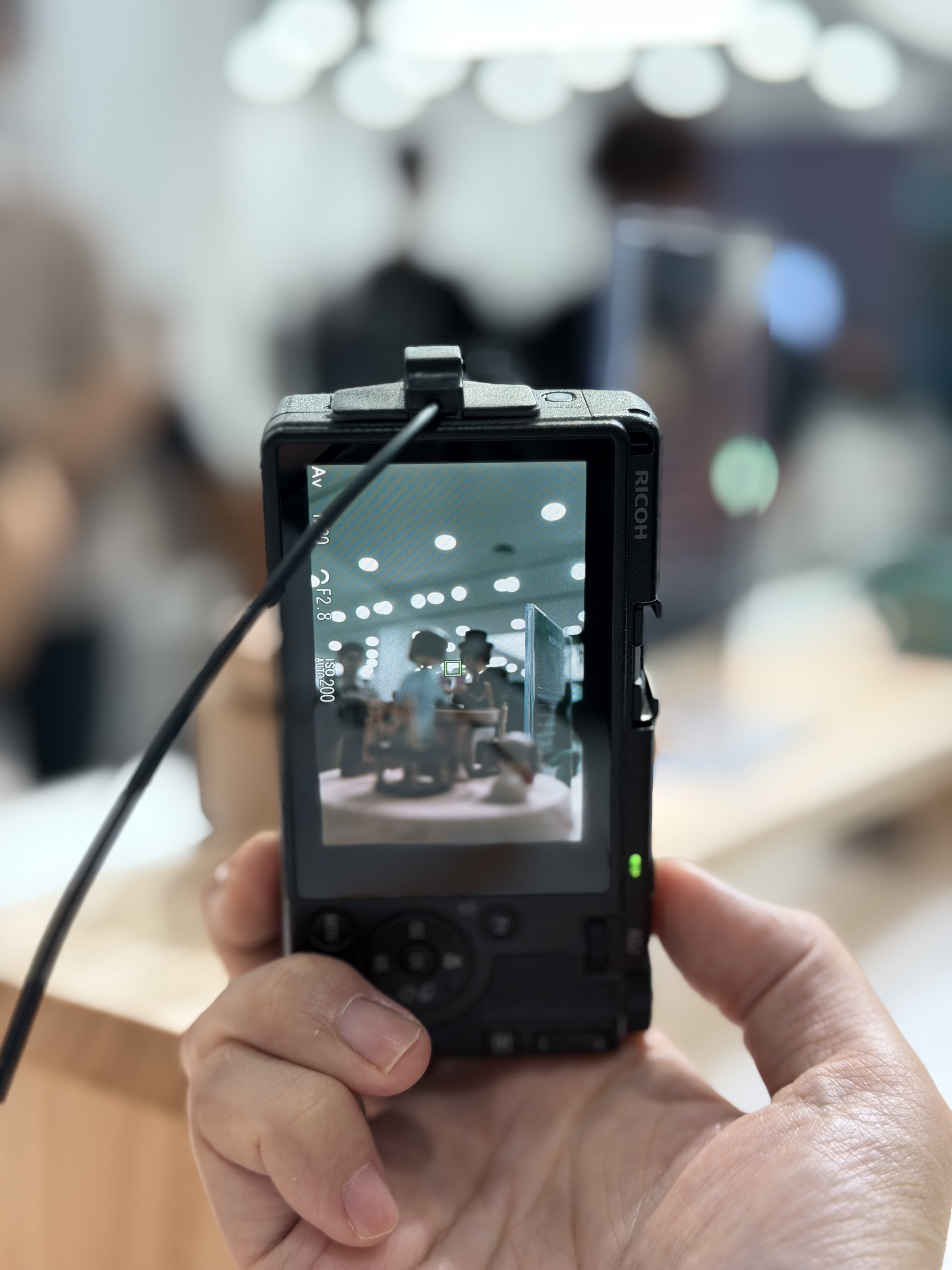 행사장의 각 부스를 돌고 나서 신제품 GR4를 본격적으로 체험해 봤습니다. GR2보다 크기가 꽤 작아졌다는데 전체 길이가 준 것에서 체감할 수 있었어요. 사실 이건 GR3에서의 변화고 GR4에서는 두께가 2mm 가량 감소한 게 핵심이라죠. 물론 휴대성을 이유로 기존 GR 시리즈 사용자가 기변을 할 필요는 없습니다. 어느 시리즈를 사더라도 GR 시리즈는 충분히 작고 가벼우니까.