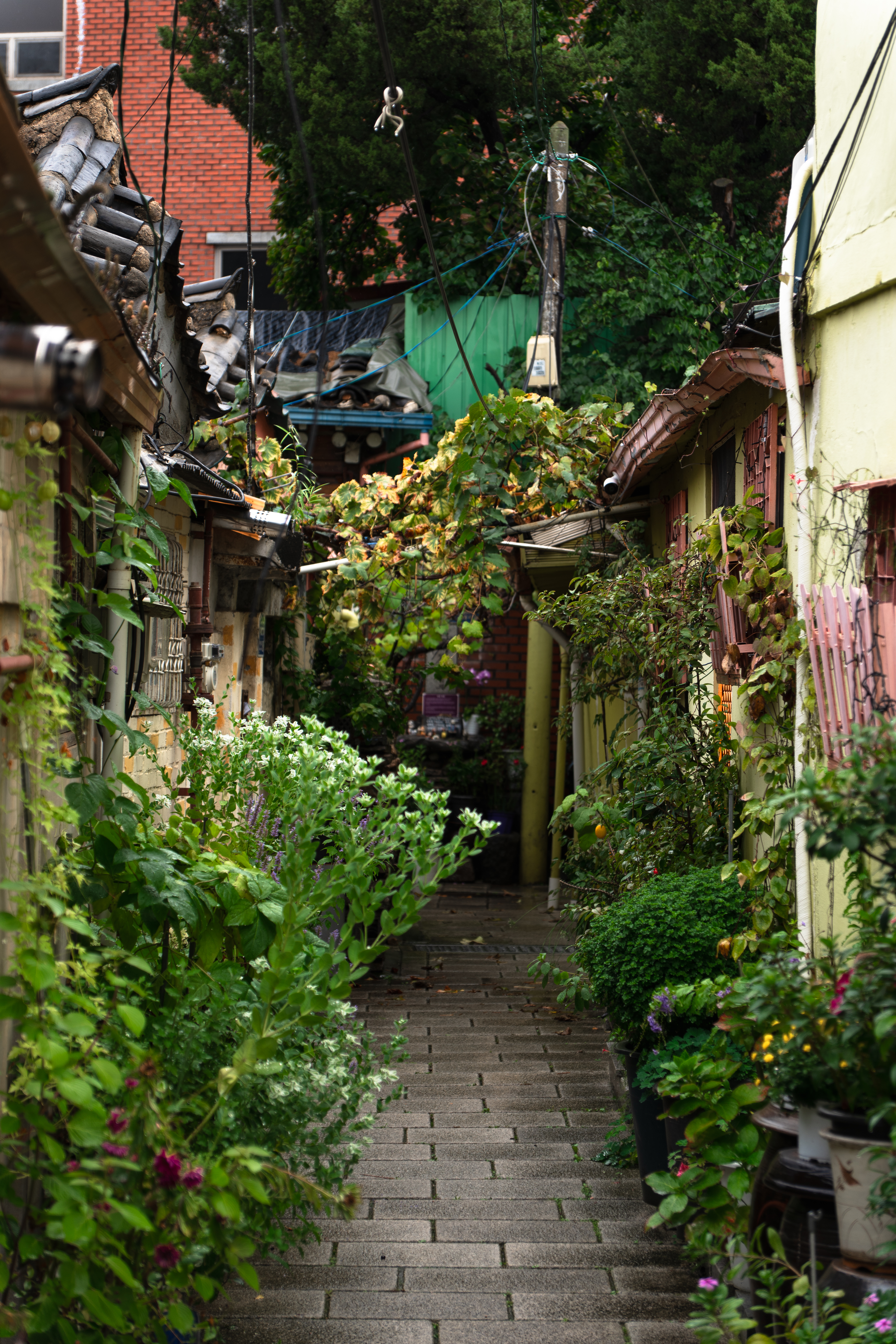 거기에 좁고 구불구불한 골목을 걷는 즐거움까지. 휴일 아침인데다 비까지 내려서 동네가 한산했어요. 제가 좋아하는 식당이나 옷가게들이 휴무인 것은 아쉽지만 좋은 기억이 남아있는 골목들 위주로 산책을 했습니다. 한 손에는 우산, 나머지 손으로는 카메라를 들고 걷다가 마음에 드는 장면이 보이면 멈춰 서서 사진을 찍는 식입니다. A7R4a와 17-70mm F2.8 Di III-A VC RXD은 한 손으로만 조작하기엔 커서 우산을 어깨에 걸어두고 찍어야 할 때가 많았어요. 비도 제법 맞았고요. 그래도 결과물이 마음에 들어 보람 있습니다.