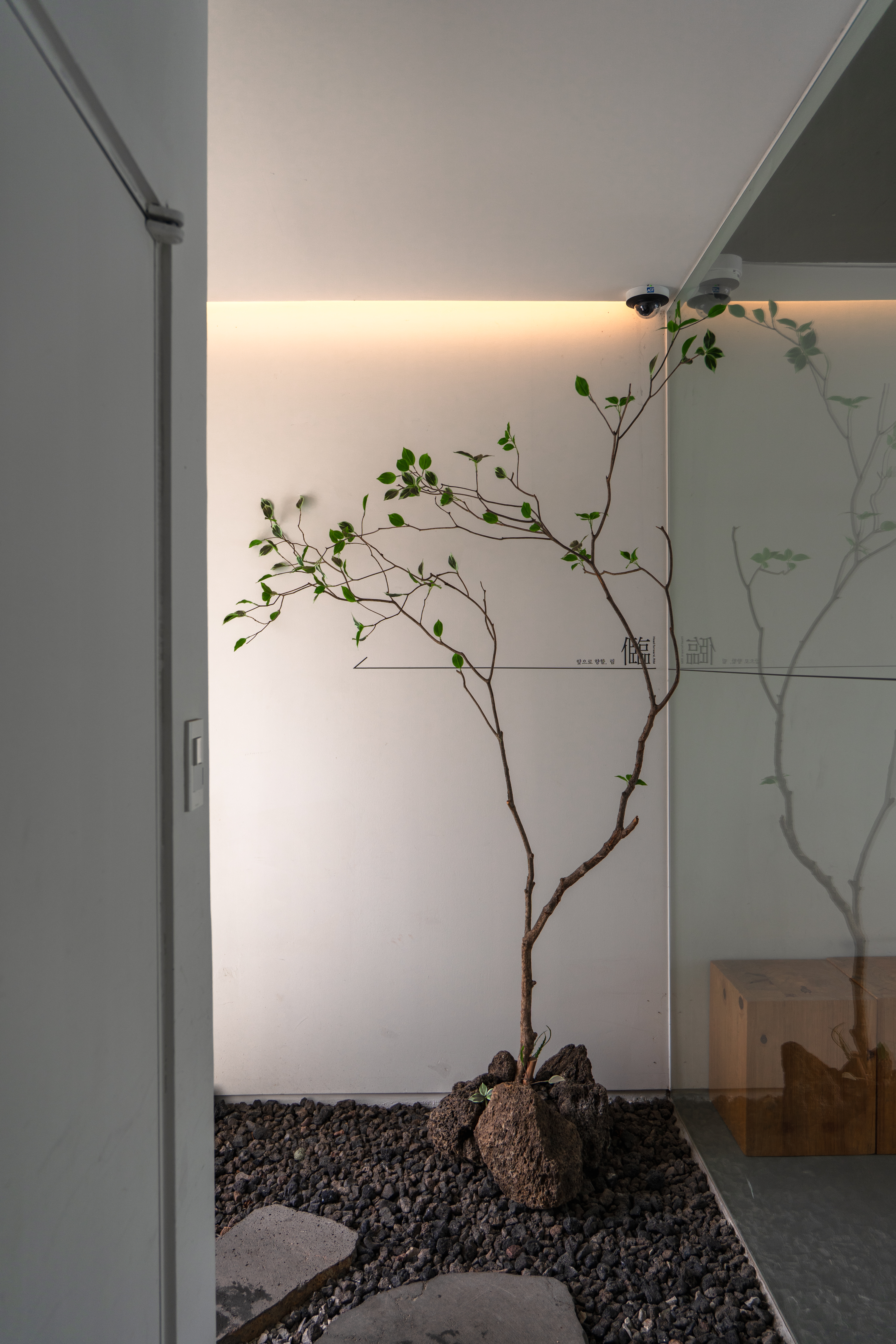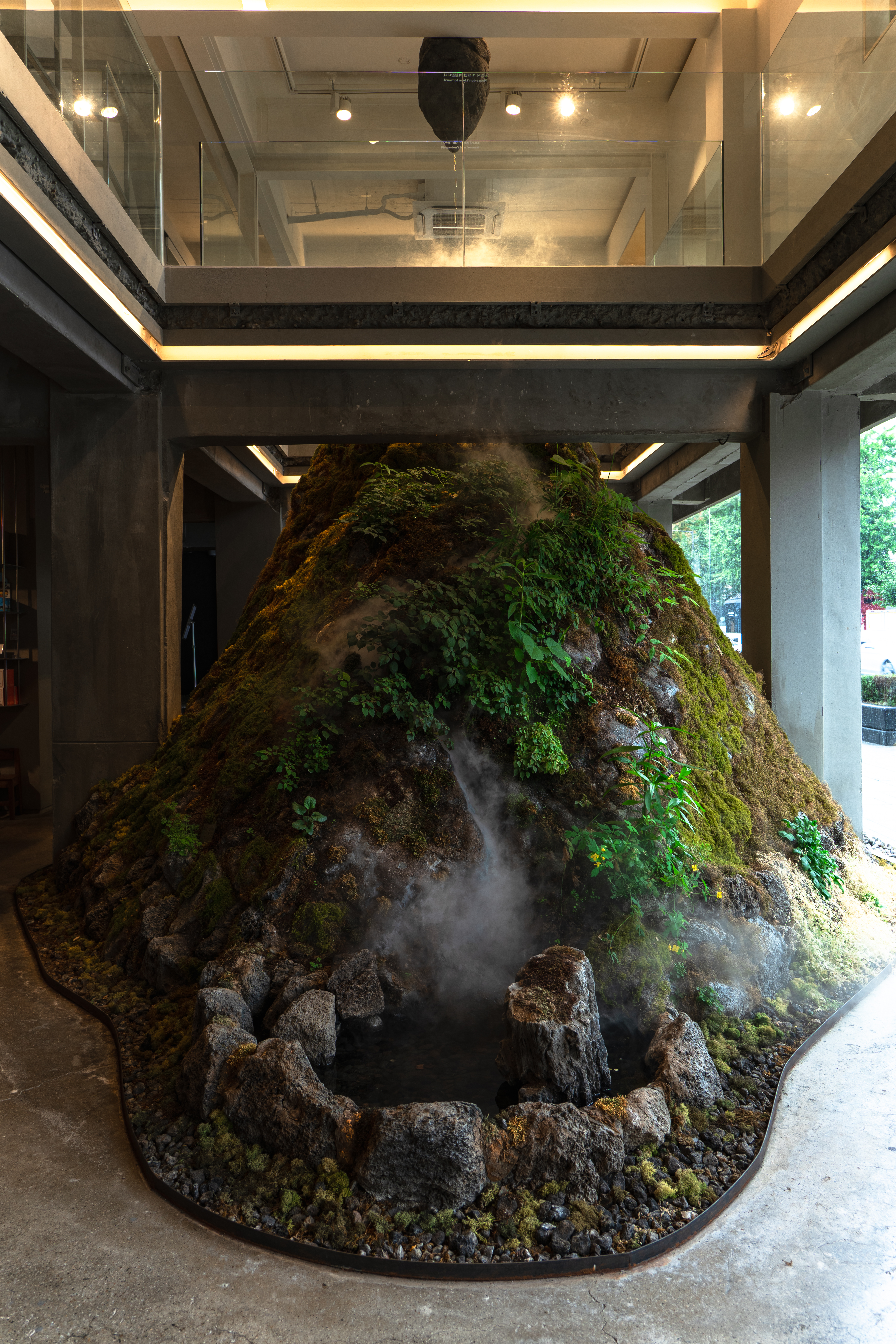 카페의 상징인 커다란 돌. 건물 1층의 절반 가까이를 차지한 돌이 보는 사람을 압도합니다. 거기에 겉면에 이끼를 키우고 있어요. 비 오는 날의 축축한 공기와 아주 잘 어울립니다. 이것 하나만으로도 가 볼 가치가 있다고 생각해요. 꽤나 좋은 볼거리이자 찍을거리입니다.