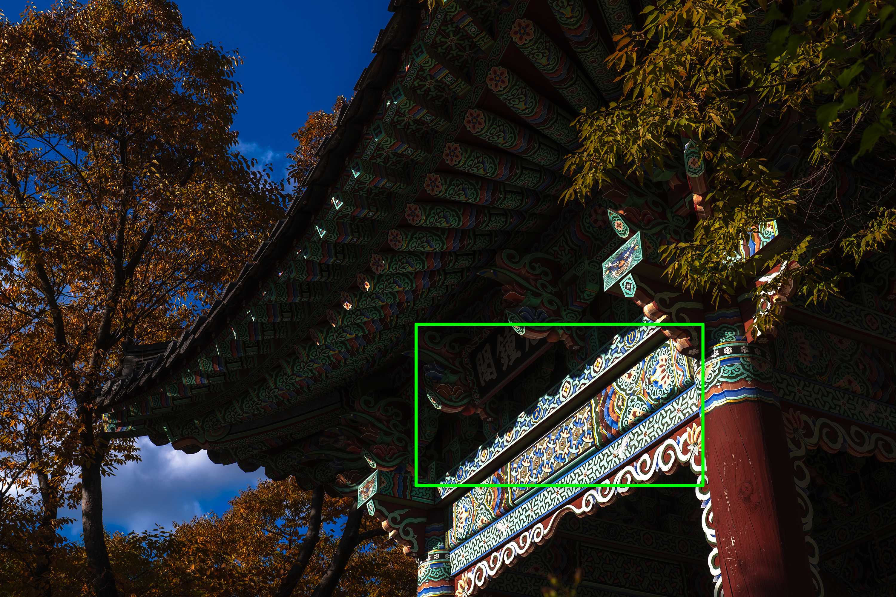아이폰으로도 함께 사진을 찍었지만 역시 이런 날씨, 풍경은 카메라로 찍어야 특유의 선명하고 눈부신 느낌을 제대로 표현할 수 있죠. 칠한 지 얼마 되지 않은 단청이 햇살을 받으니 그야말로 반짝반짝하더군요.