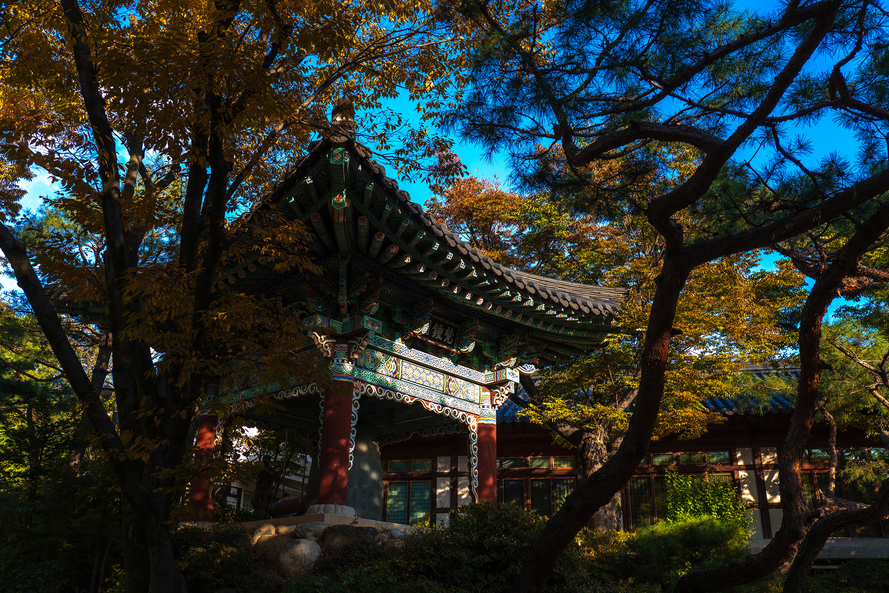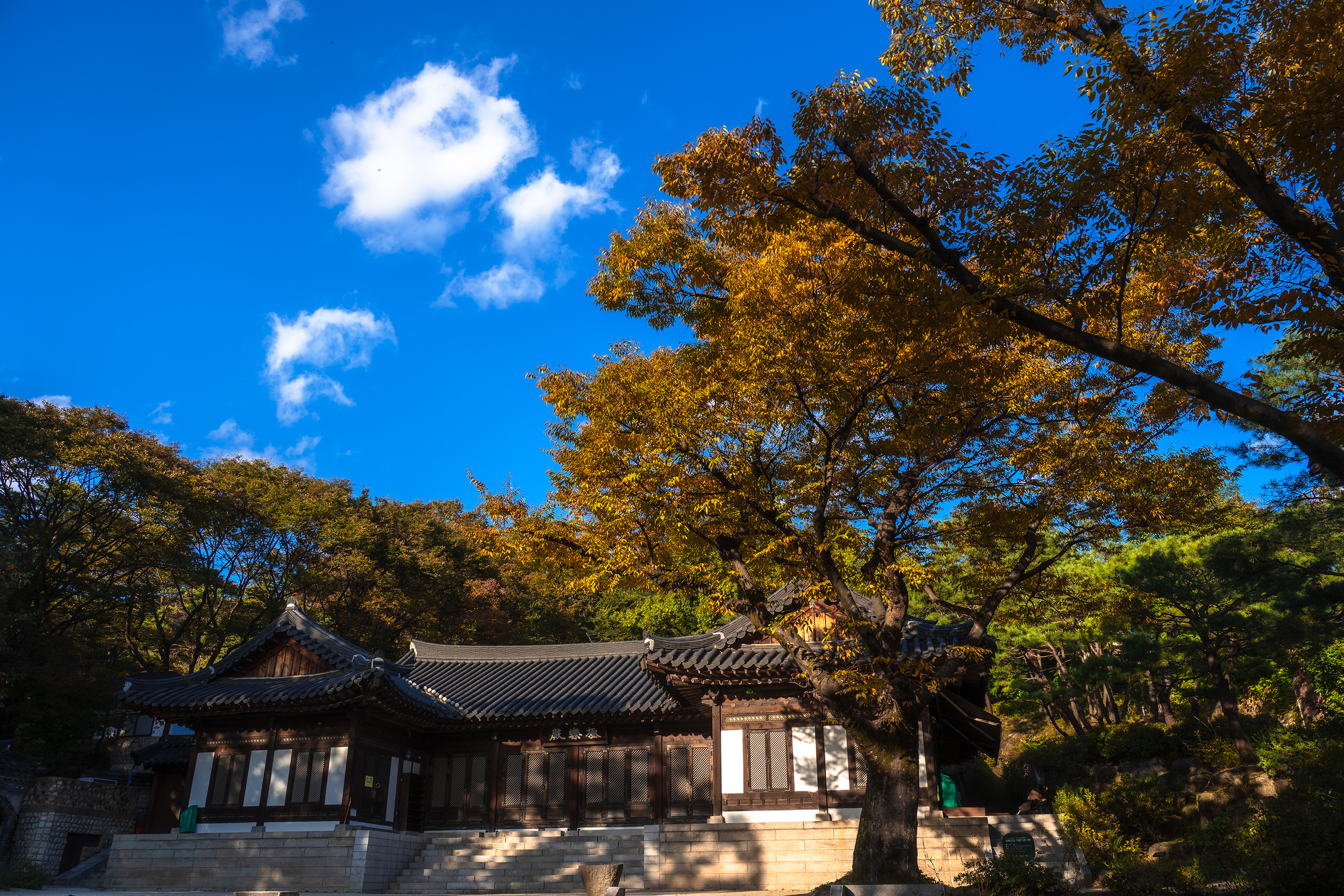 날씨가 좋으니 사진 찍을 맛이 났습니다. 이래서 가을을 좋아하죠. 무성한 잎 사이로 보이는 파란 하늘과 흰 구름만 보고 있어도 마음이 편안해졌고 사찰 곳곳에 내려 앉은 가을 풍경이 반가웠습니다. 도시는 여름에서 겨울로 바로 넘어가는 느낌이지만 이렇게 가을 정취를 흠뻑 머금은 곳이 분명 있어요. 시간 내 오길 잘했다고 생각했습니다.