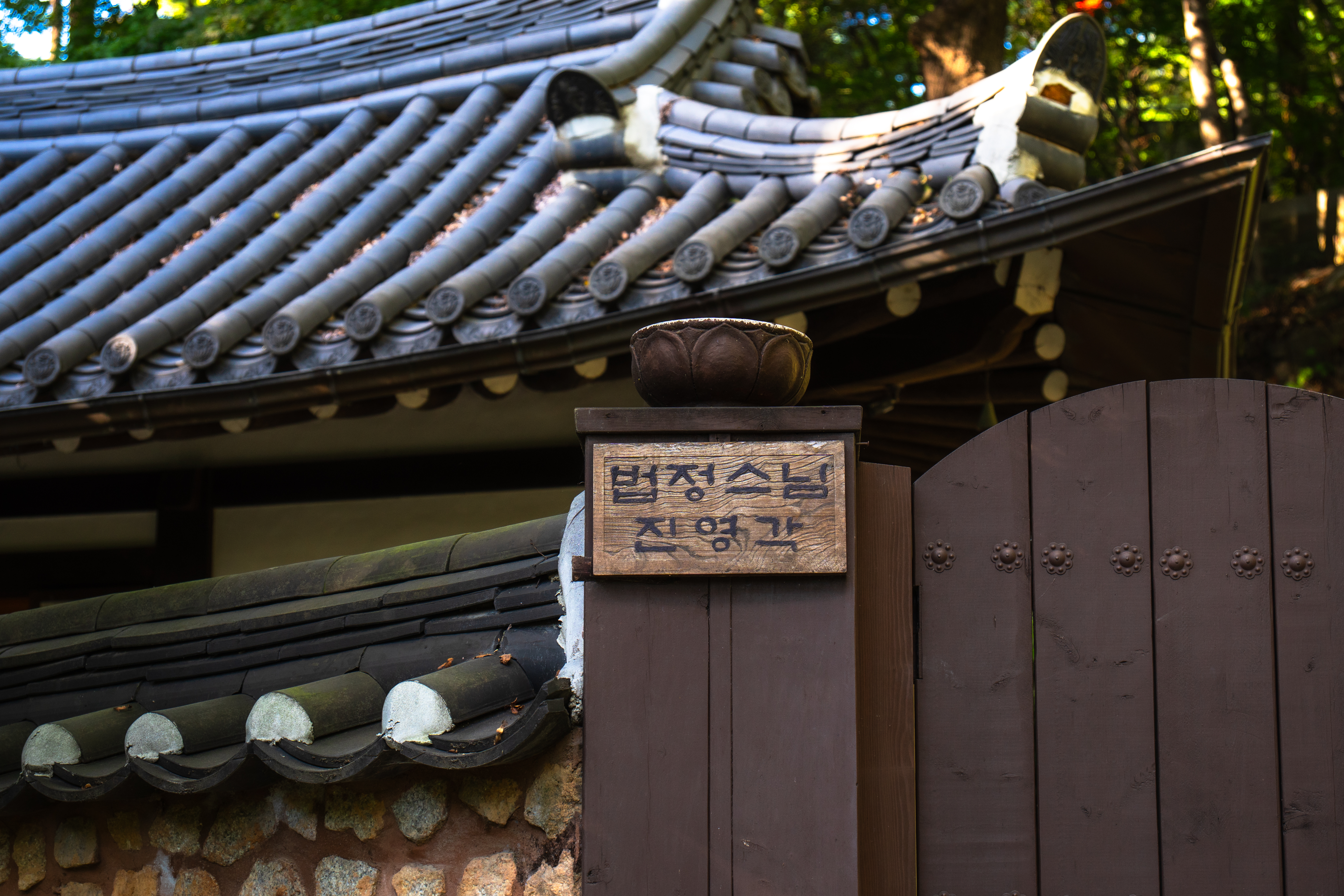 무종교인 입장에서 사찰의 매력이라면 자연 그대로의 풍경과 좋은 뷰 그리고 언제 찾아도 문이 활짝 열려 있는 것입니다. 생태 공원이나 식물원 등을 방문하기 전엔 휴무일을 확인해야 하지만 길상사는 그럴 필요가 없었어요. 월요일 오후라 사람이 많지 않았고 규모도 크지 않아서 여유롭게 내부를 두,세 바퀴 돌았습니다. 중간 중간 마련된 의자에서 앉아 바람 소리도 듣고요. 가장 높은 곳에는 법정 스님이 머물렀던 진영각이 있습니다. 내부는 사진 촬영이 불가능해요.