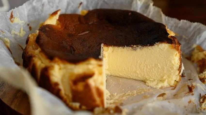 "흔히 바스크 지방의 유서 깊은 '전통 케이크'라고 착각하는 경우가 많은데 전혀 아니다. 실제로는 1990년경에 개발된 생각보다 역사가 짧은 '현대 디저트다. 유래가 아주 명확한데 스페인 바스크 지방 산 세바스티안 구시가지의 작은 바(Bar) 겸 레스토랑인 '라 비냐(La Viña)'[1]의 오너 셰프 산티아고 리베라(Santiago Rivera)가 직접 개발한 레시피다. 여러 치즈케이크 레시피를 가지고 실험을 하다가 우연히 고온에서 구워 표면이 검게 탄 치즈케이크를 만들었는데 맛이 상당히 괜찮아서 이걸 발전시켜 라 비냐만의 독특한 스타일로 완성시켰다. 이후 라 비냐의 치즈케이크는 입소문을 타고 지역 명물이 되었다. 2000년대에 핀초 투어(pincho tours) [2]가 유명해지며 스페인을 찾은 외국인들에게도 바스크치즈케이크가 알려지게 되었다." (https://namu.wiki/w/바스크%20치즈케이크#s-3)