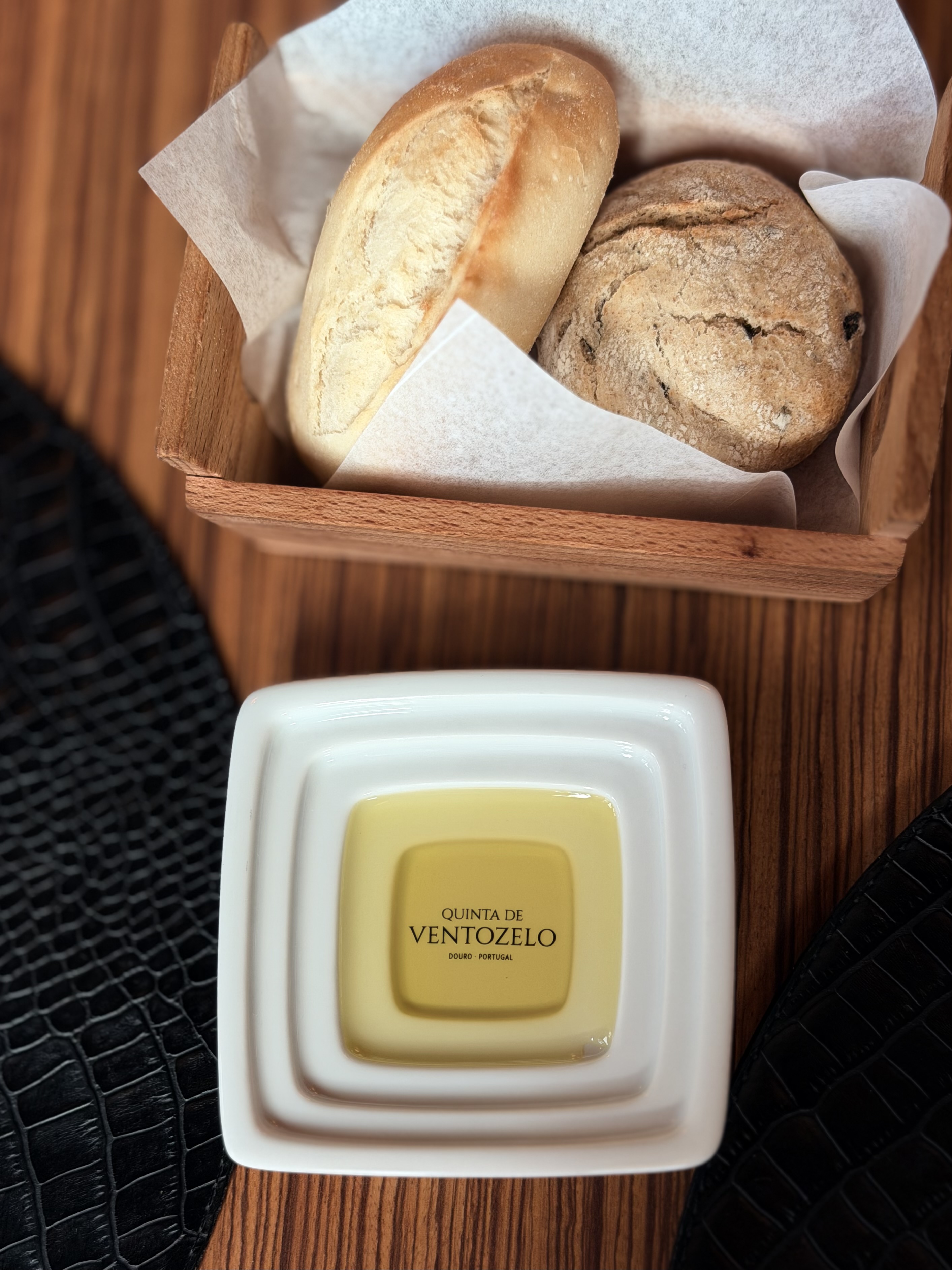 주문 직후 나오는 빵과 올리브 오일. 직접 구운 빵은 풍미와 식감이 좋습니다. 이렇게 빵이 맛있는 레스토랑에서는 메인 메뉴 취소하고 빵과 버터만 먹고 싶을 때가 많아요. 올리브 오일은 도오루 강변에 있는 농장의 올리브로 짠 것이라고 하네요. 포르투갈 사람들의 포도, 올리브에 대한 자부심은 대단합니다.