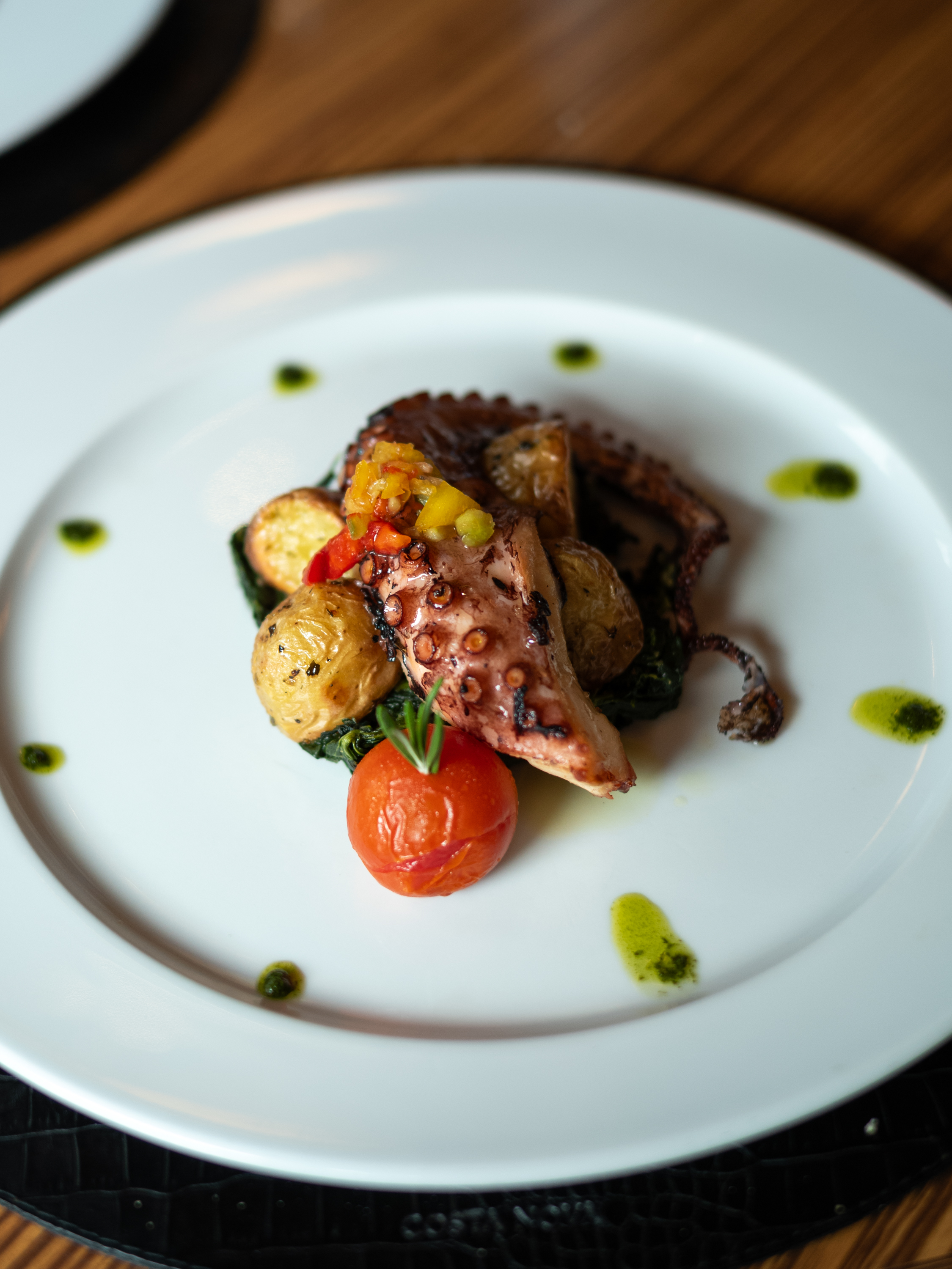 메인 메뉴인 문어 스테이크입니다. 여러 식당에서 공유하는 이 동네 레시피로 문어 다리를 조리했습니다. 문어 다리를 푹 삶은 뒤 겉면을 구웠고 가니시로 감자, 순무 잎을 곁들였습니다. 제가 먹어본 문어 스테이크 중에는 엘르비(Élebê)가 최고였지만 이집도 가격 대비로는 꽤 괜찮아요. 겉면은 파삭하고 속살은 야들야들합니다. 제가 서울에선 문어를 잘 안 먹는데 포르투에서는 환장하고 먹어요. 이 동네 문어는 어딜 가도 맛있습니다.