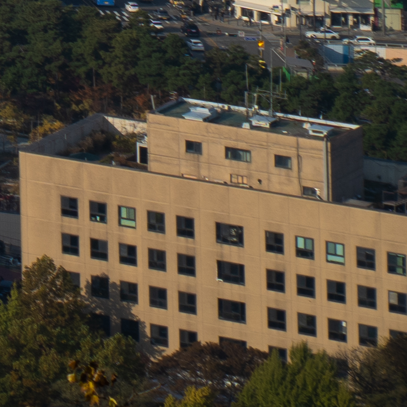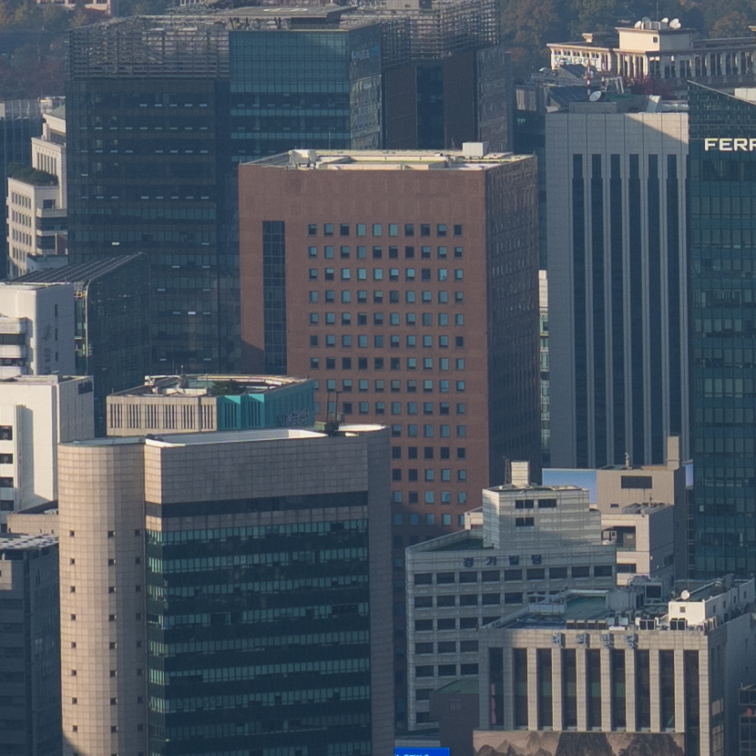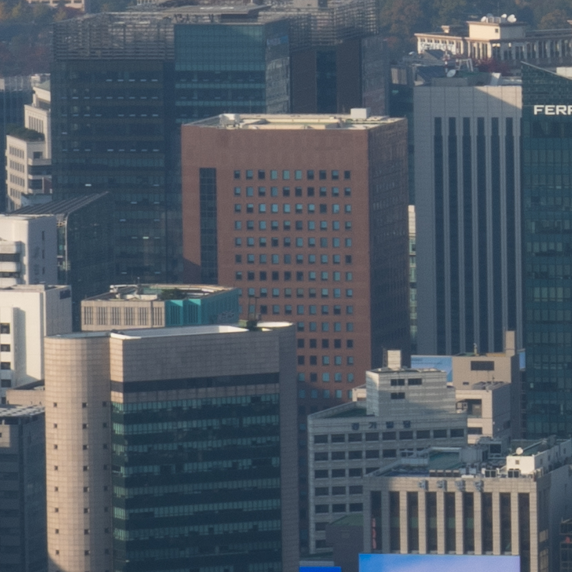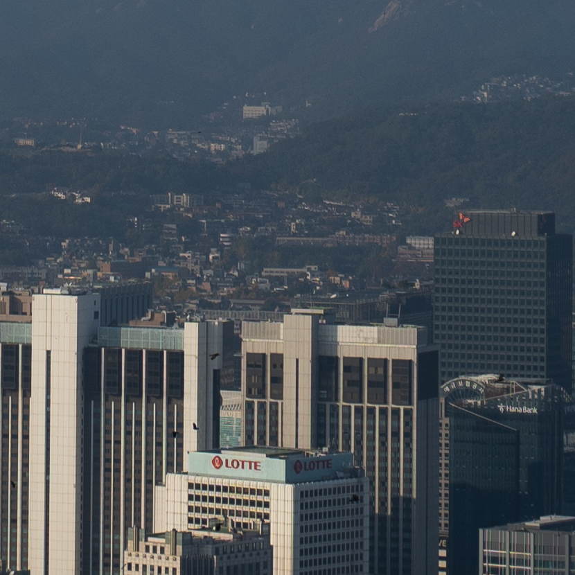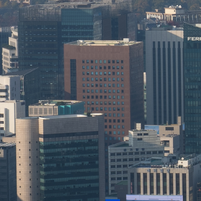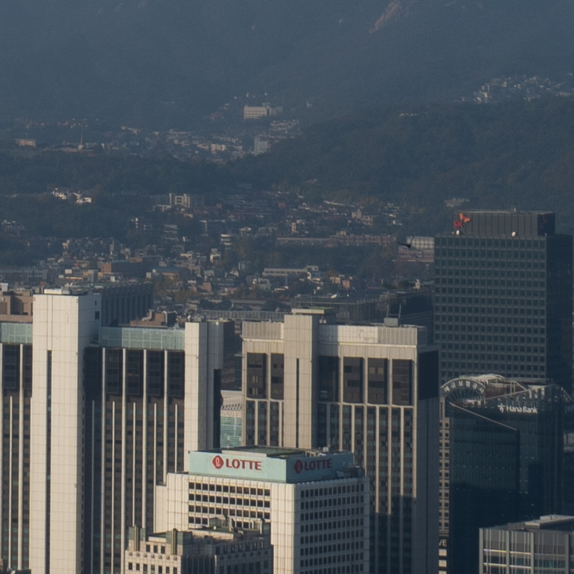 빌딩 숲 사이에서 쉽게 보이지 않았던 청와대를 200mm 최대 망원에서 또렷하게 찍을 수 있습니다. 25mm와 비교하면 어마어마한 차이입니다. 하나 더 인상적인 것은 200mm 최대 개방에서의 이미지 품질입니다. 과거에 사용했던 고배율 줌렌즈들은 공통적으로 망원에서 해상력이 급격히 떨어지는 문제가 있었는데 현대 광학 성능의 발전은 대단하군요.