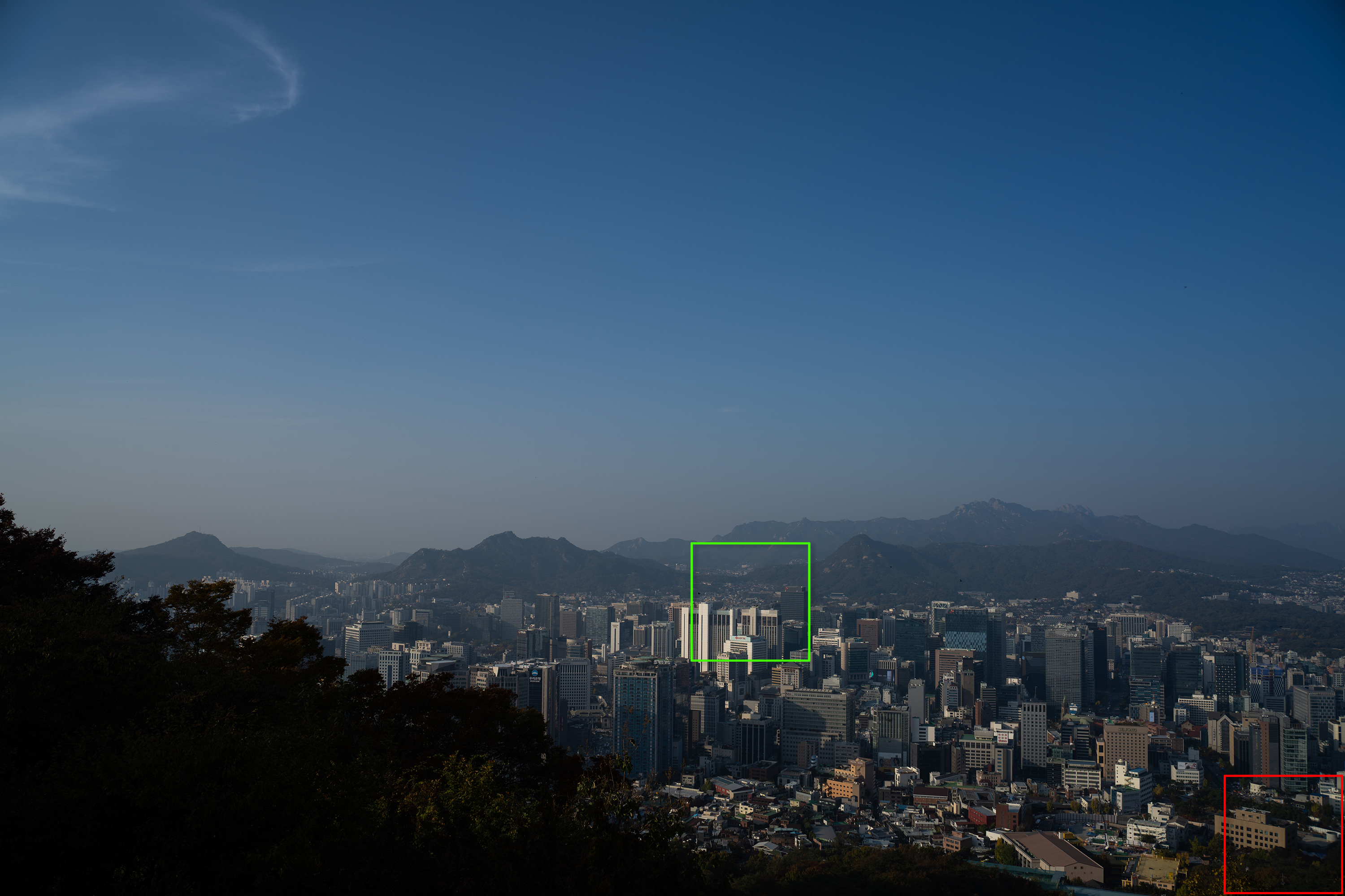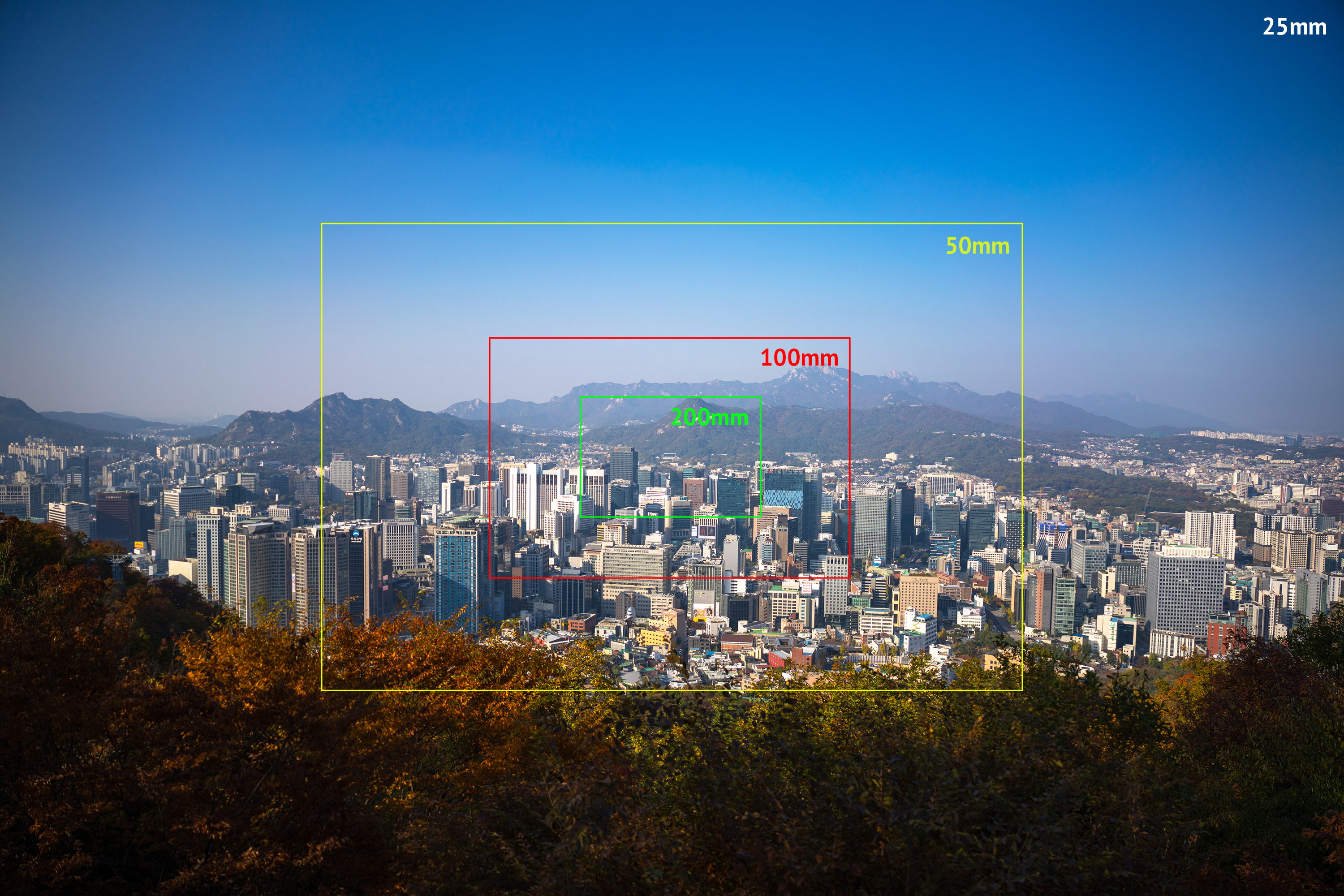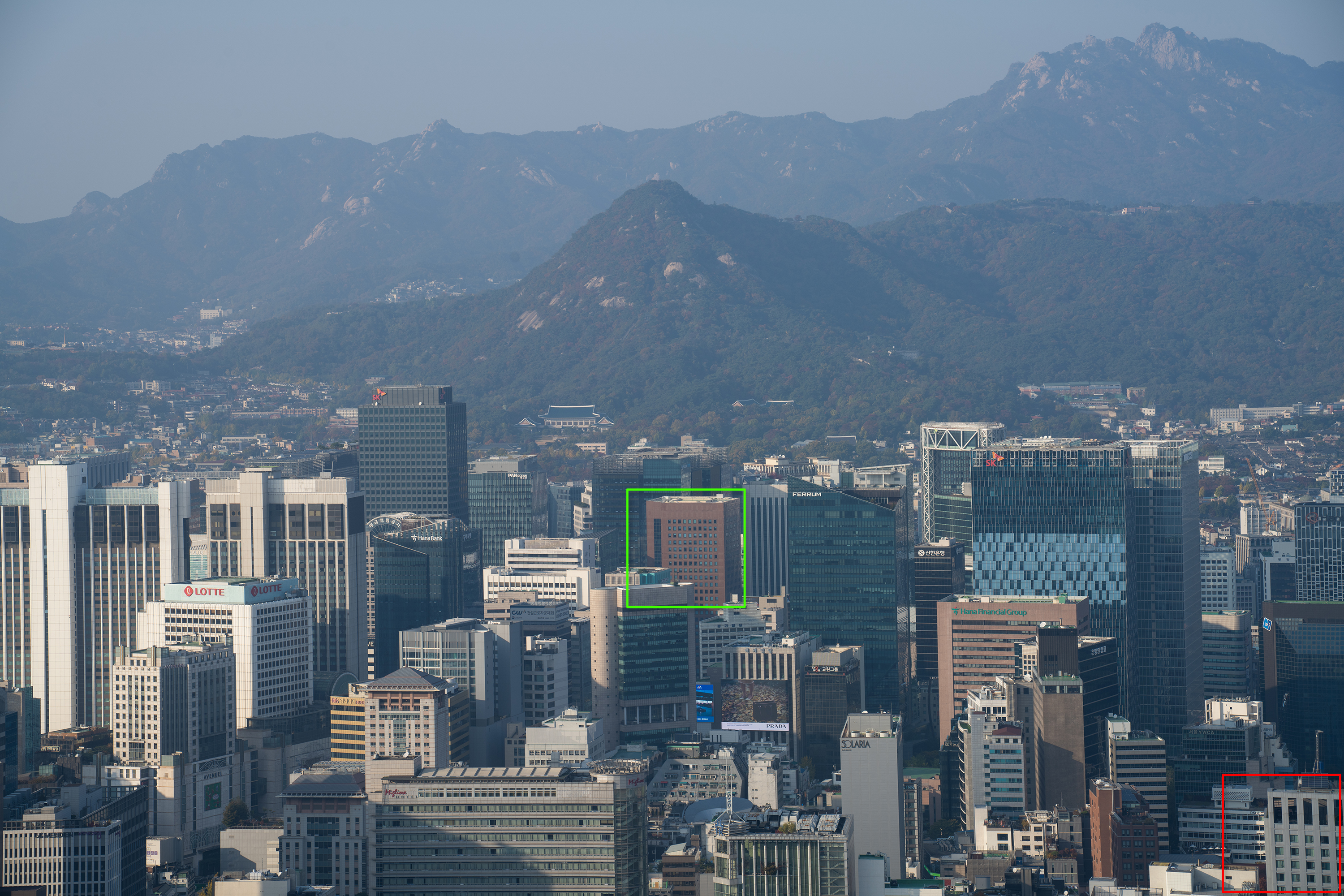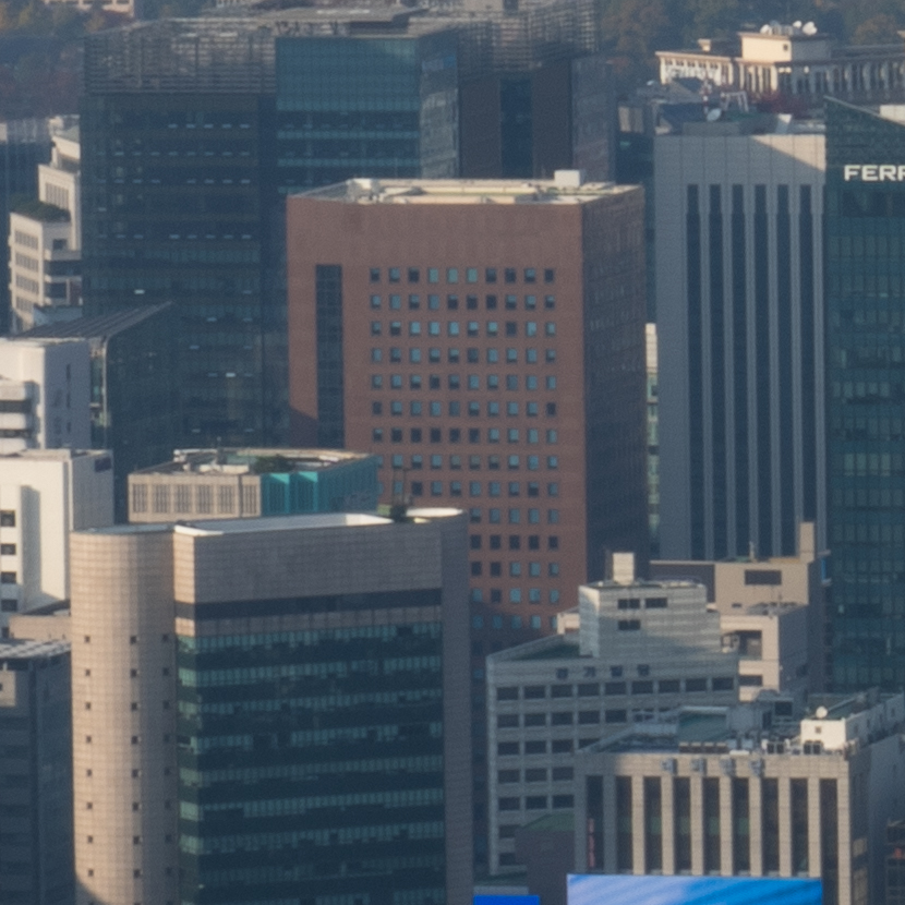빌딩 숲 사이에서 쉽게 보이지 않았던 청와대를 200mm 최대 망원에서 또렷하게 찍을 수 있습니다. 25mm와 비교하면 어마어마한 차이입니다. 하나 더 인상적인 것은 200mm 최대 개방에서의 이미지 품질입니다. 과거에 사용했던 고배율 줌렌즈들은 공통적으로 망원에서 해상력이 급격히 떨어지는 문제가 있었는데 현대 광학 성능의 발전은 대단하군요.