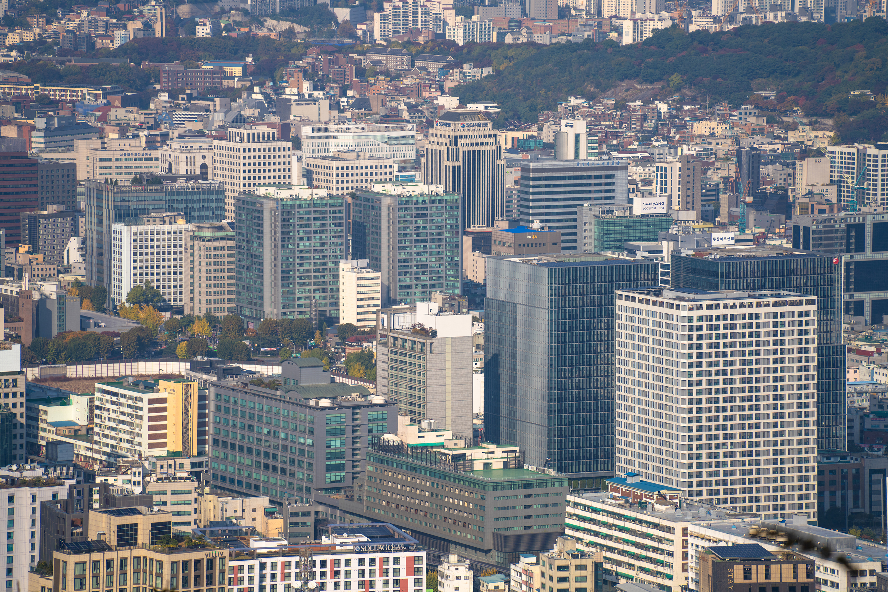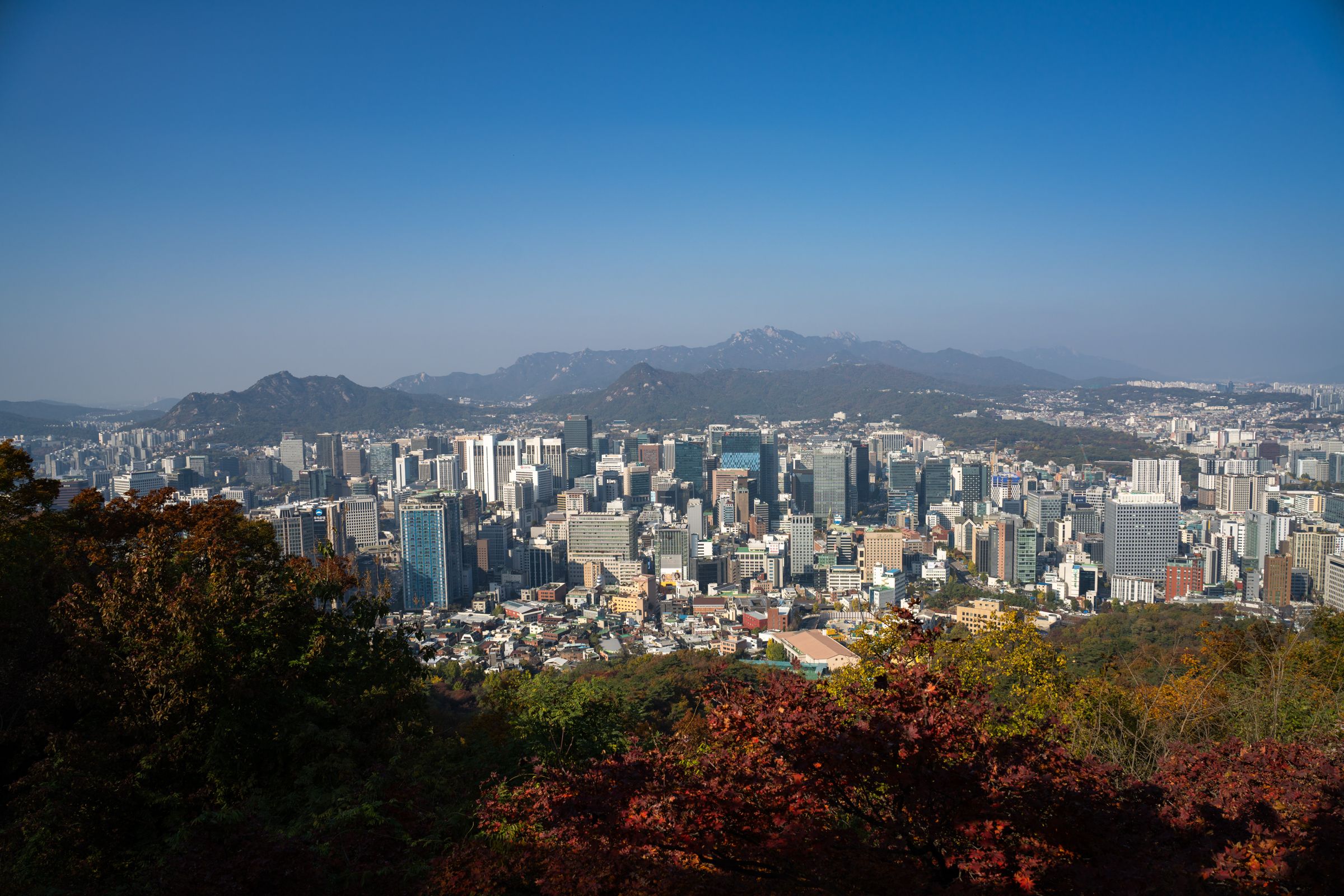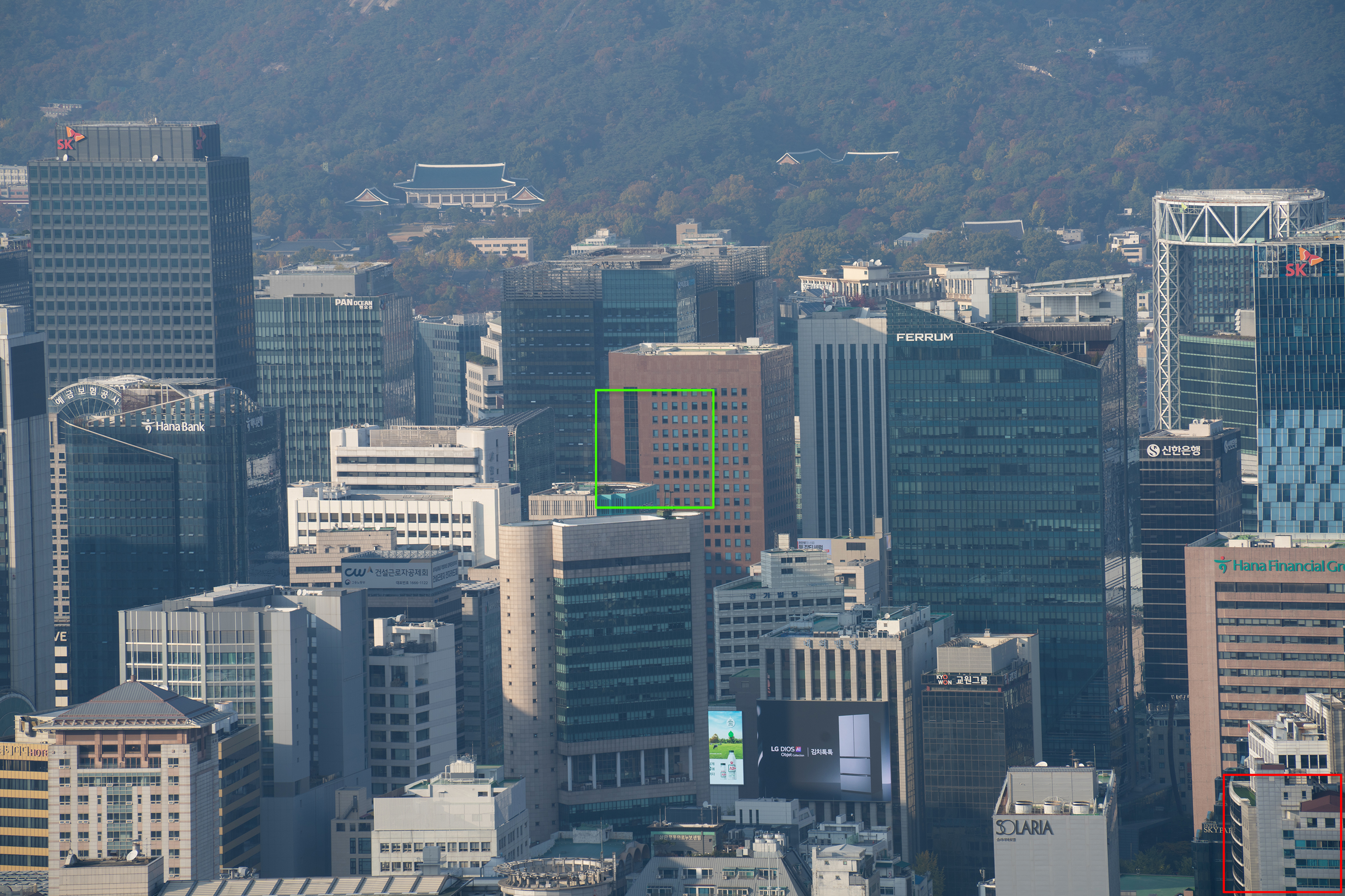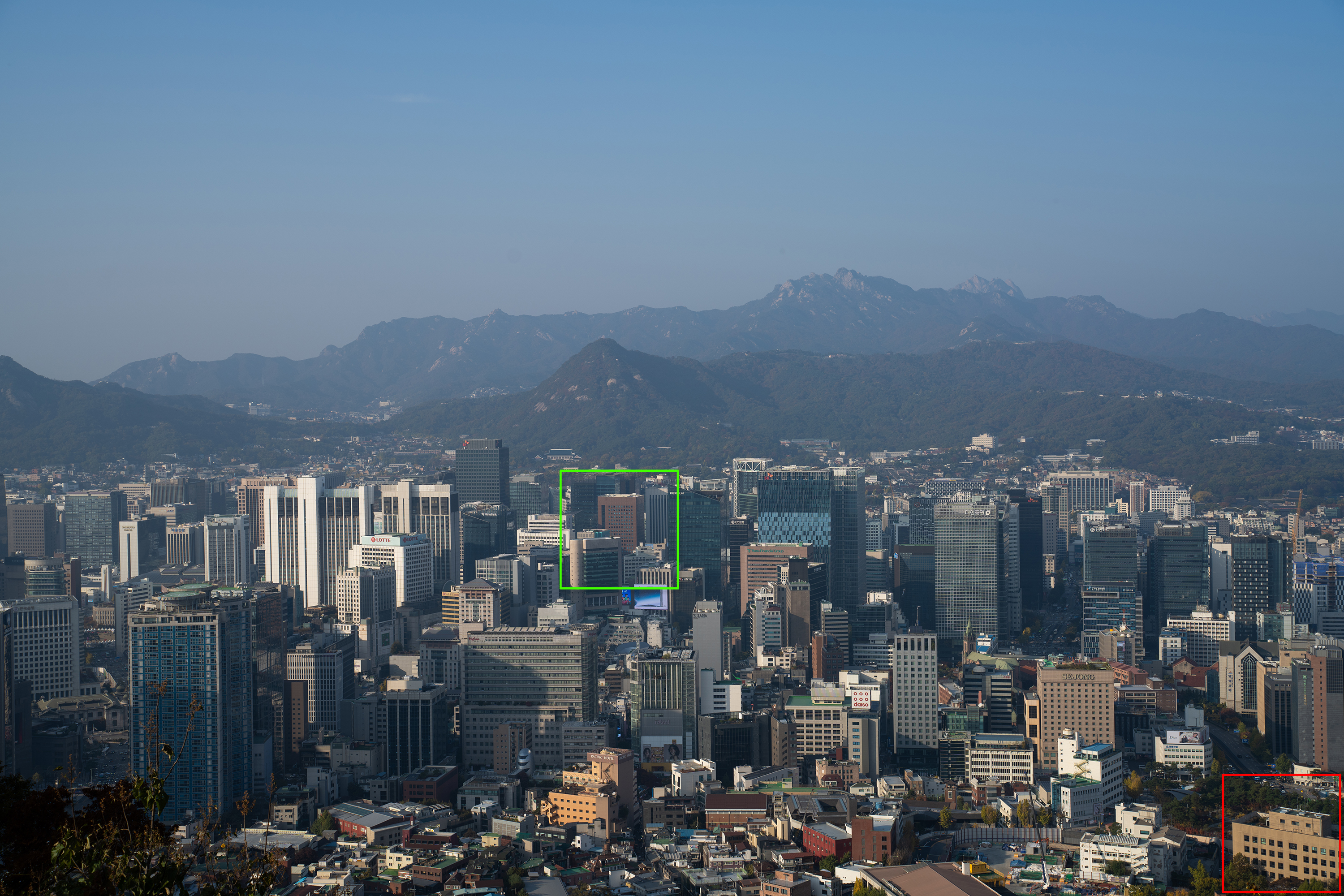 빌딩 숲 사이에서 쉽게 보이지 않았던 청와대를 200mm 최대 망원에서 또렷하게 찍을 수 있습니다. 25mm와 비교하면 어마어마한 차이입니다. 하나 더 인상적인 것은 200mm 최대 개방에서의 이미지 품질입니다. 과거에 사용했던 고배율 줌렌즈들은 공통적으로 망원에서 해상력이 급격히 떨어지는 문제가 있었는데 현대 광학 성능의 발전은 대단하군요.
