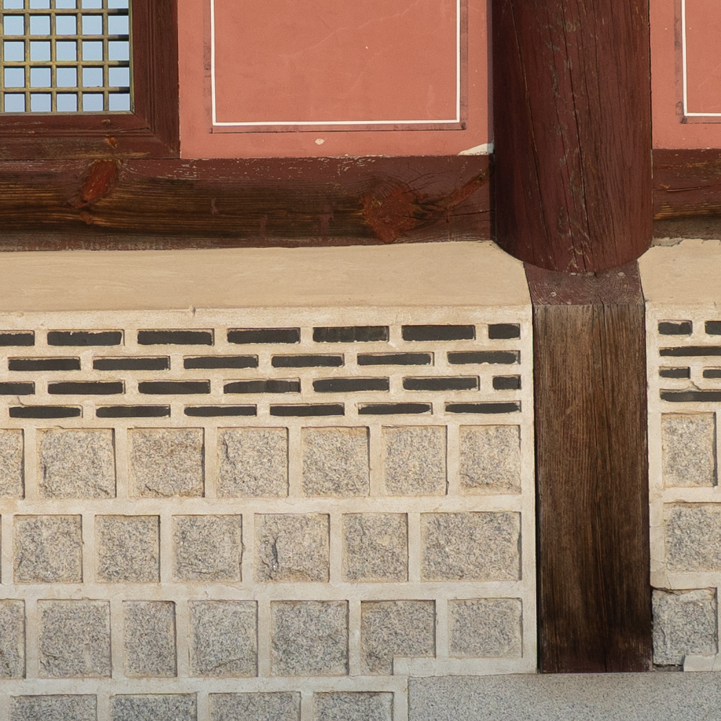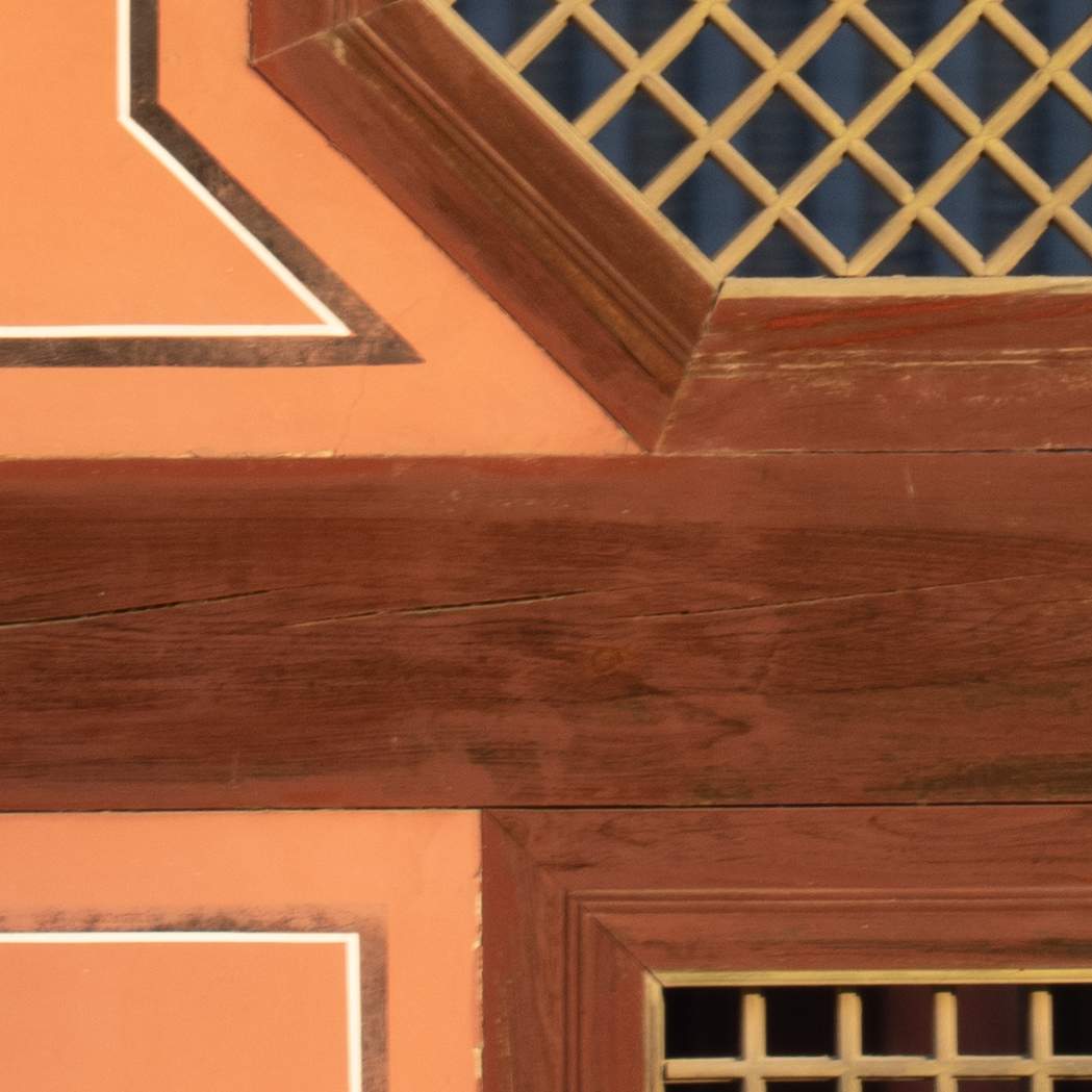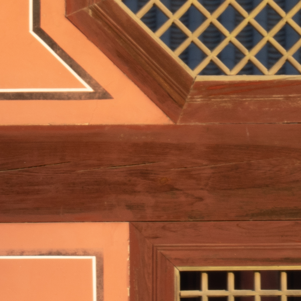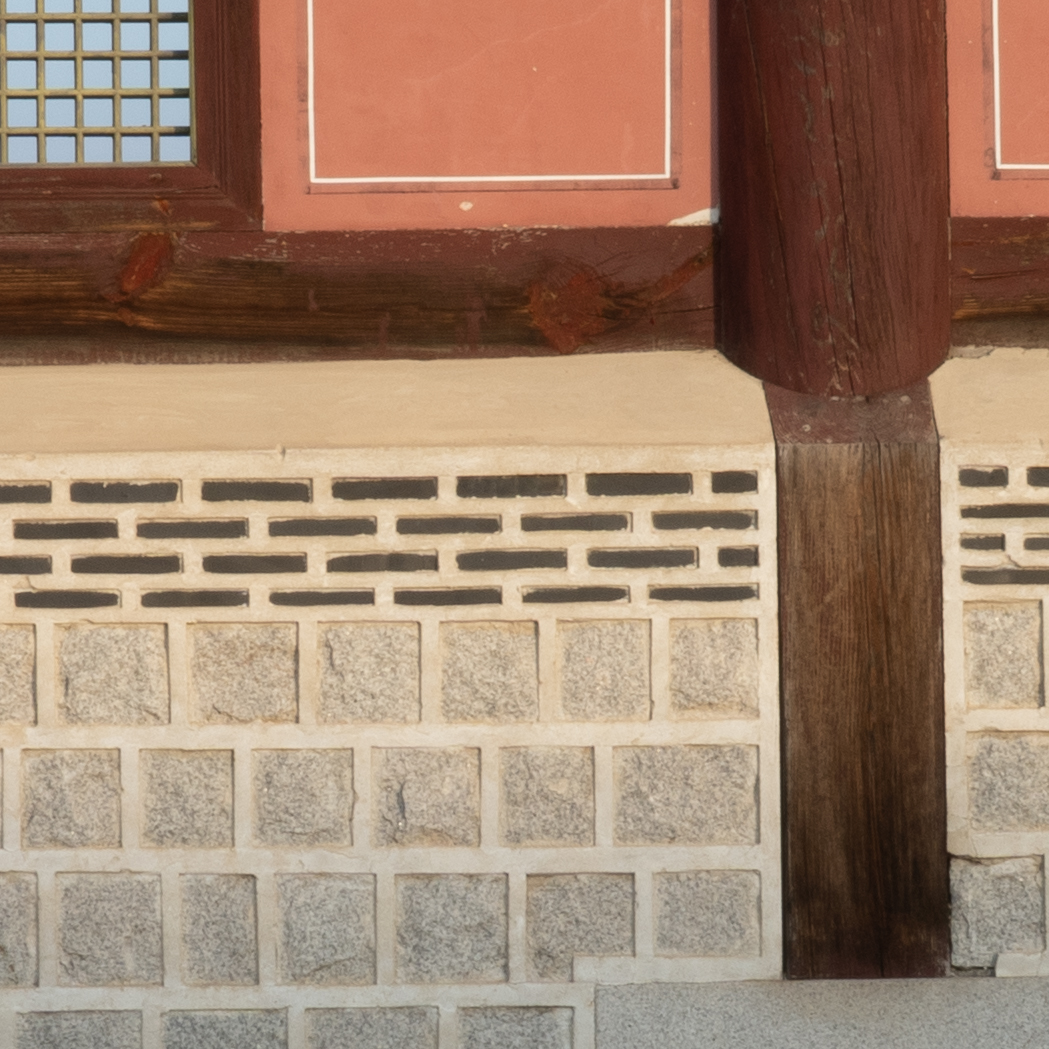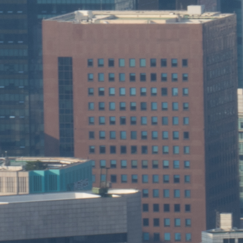 해상력은 합격점. 유의해야 할 것은 왜곡입니다. 광각에서는 가운데가 볼록한, 망원에서는 반대로 중앙이 오목한 형태의 왜곡이 보입니다. 카메라의 보정 옵션을 적용한 뒤 JPG로 촬영하거나 편집 소프트웨어에의 도움을 받는 게 좋겠어요. 원본은 직선, 건축 촬영에서 제법 신경이 쓰입니다.