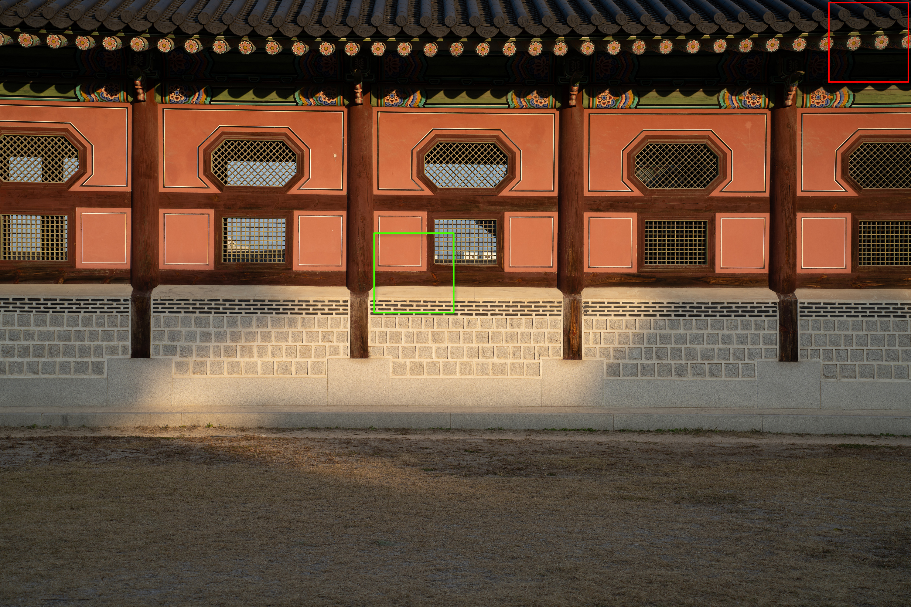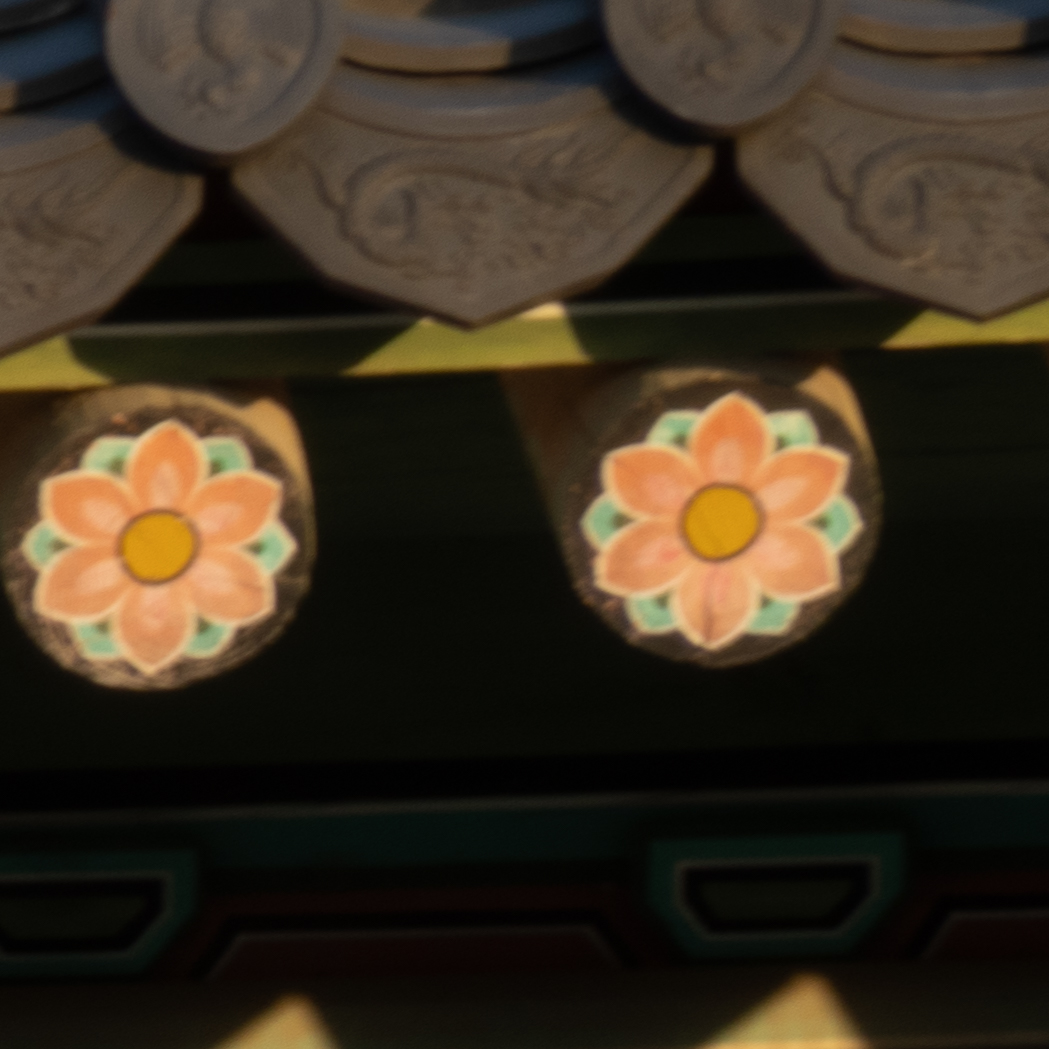25mm는 렌즈를 사용하며 신경 쓰였던 비네팅, 왜곡이 가장 잘 드러나는 초점거리입니다. 위 테스트에서는 개방 촬영에서의 비네팅이, 아래에선 주변부 왜곡이 보이죠. 물론 위 사진들은 RAW 촬영 후 JPG로 변환한 것으로 카메라의 주변부 조도, 왜곡 보정을 적용하면 훨씬 나은 결과물을 얻을 수 있습니다. 궁금했던 해상력은 기대 이상으로 좋습니다. 중심부야 말할 것도 없고 기대하지 않았던 주변부도 꽤나 깔끔합니다. 중심부는 F2.8-8이 큰 차이 없이 균일하고 주변부는 F2.8 개방에서 해상력 저하가 다소 있습니다. F4-5.6 구간에서 개선되니 이 사이에서 적절히 선택하는 것이 좋겠네요.