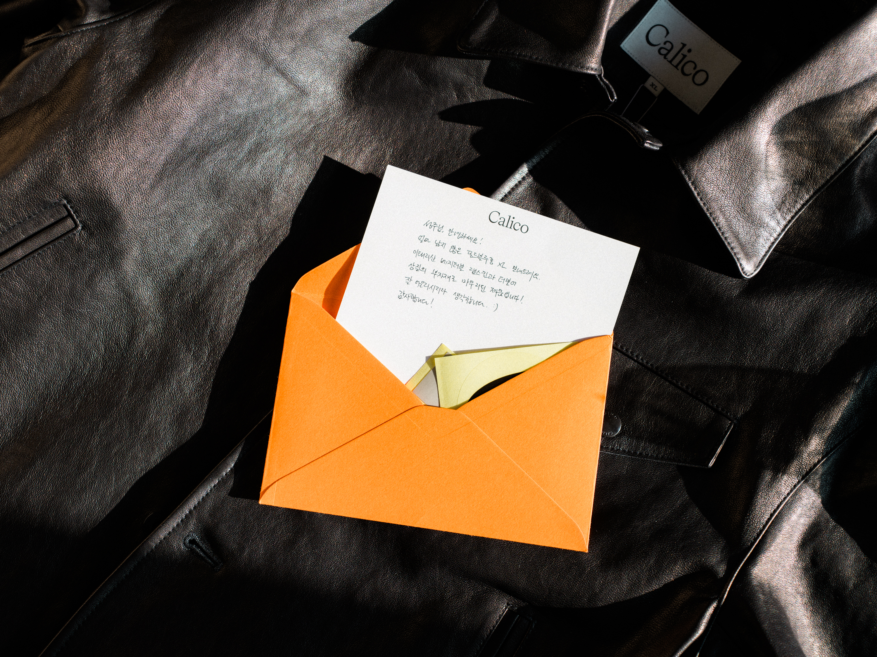 가죽 옷에는 전혀 관심이 없었습니다. 이번 시즌 특히 레더 재킷이 유행인지 여기저기서 출시 소식을 들으면서도 심드렁했거든요. 15년 전쯤 저렴한 가격에 레더 재킷 한 장 구매했었는데 무겁고 불편한 옷이란 생각 때문에 이후로는 눈길조차 주지 않았어요. 그런데 자꾸 신상 재킷들을 봐서 그런지 눈이 마음이 가더라고요. 마침 무신사 블랙프라이데이 행사 기간이기도 했고. 칼리코라는 브랜드에 평소 호감도 있었고. 그렇게 구매한 레더 블루종입니다.