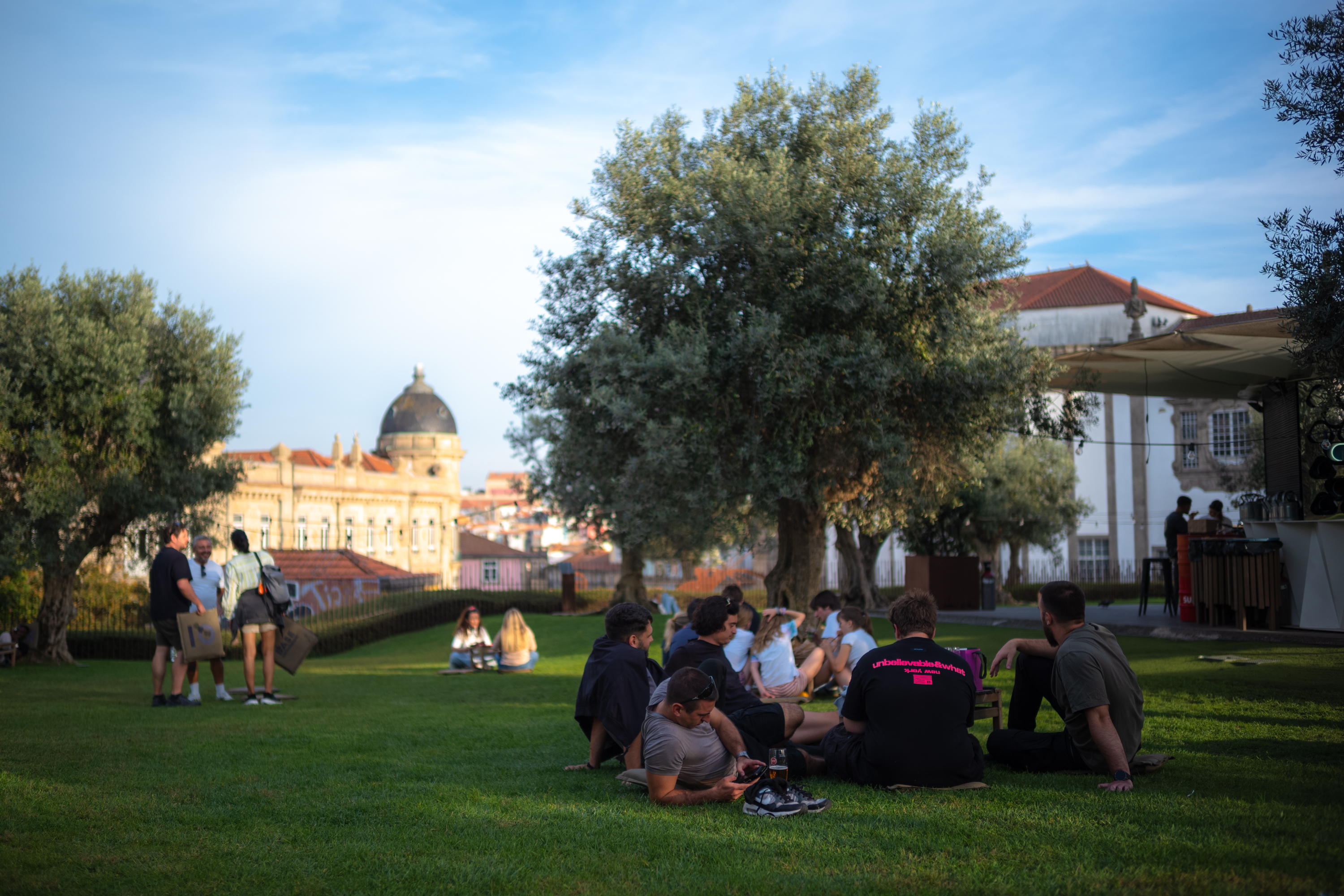 잔디밭에도 빈 자리가 많지 않아서 우선 자리부터 잡았습니다. 클레리구스 타워와 베이스 포르투 그리고 책 읽는 사람이 한 눈에 보이는 포인트가 마음에 들었어요.
