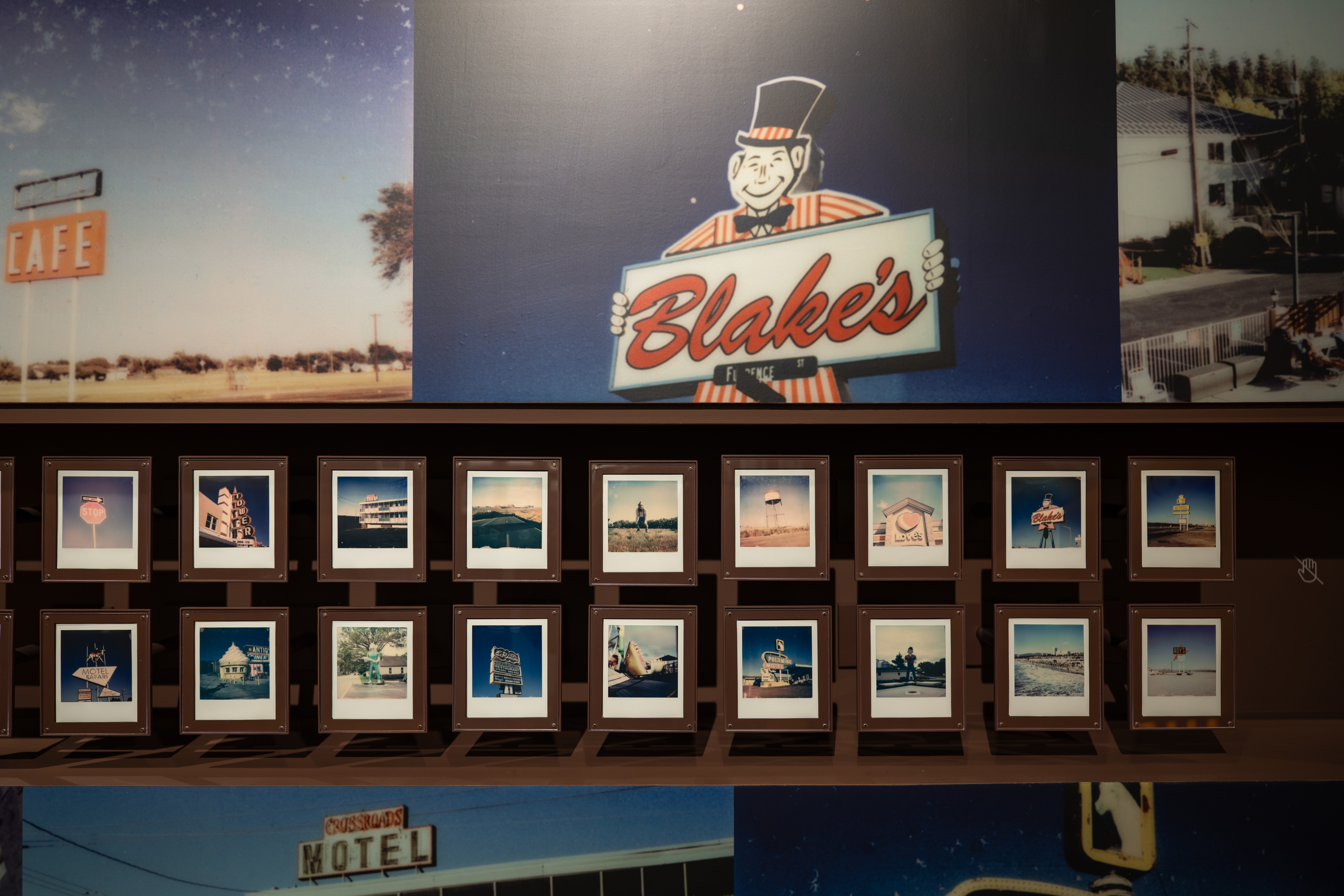 뉴욕에서 LA까지 미 대륙을 한 달간 횡단하며 찍은 사진들이 뉴욕 사진들보다 더 좋았어요. 여기선 폴라로이드로 많은 작업을 했는데 왜곡된 색과 흐릿한 형태, 답답한 프레임이 로드 트립과 잘 어울렸거든요. 낡은 모텔 건물, 외롭게 서 있는 표지판, 황무지 풍경같은 것들과.