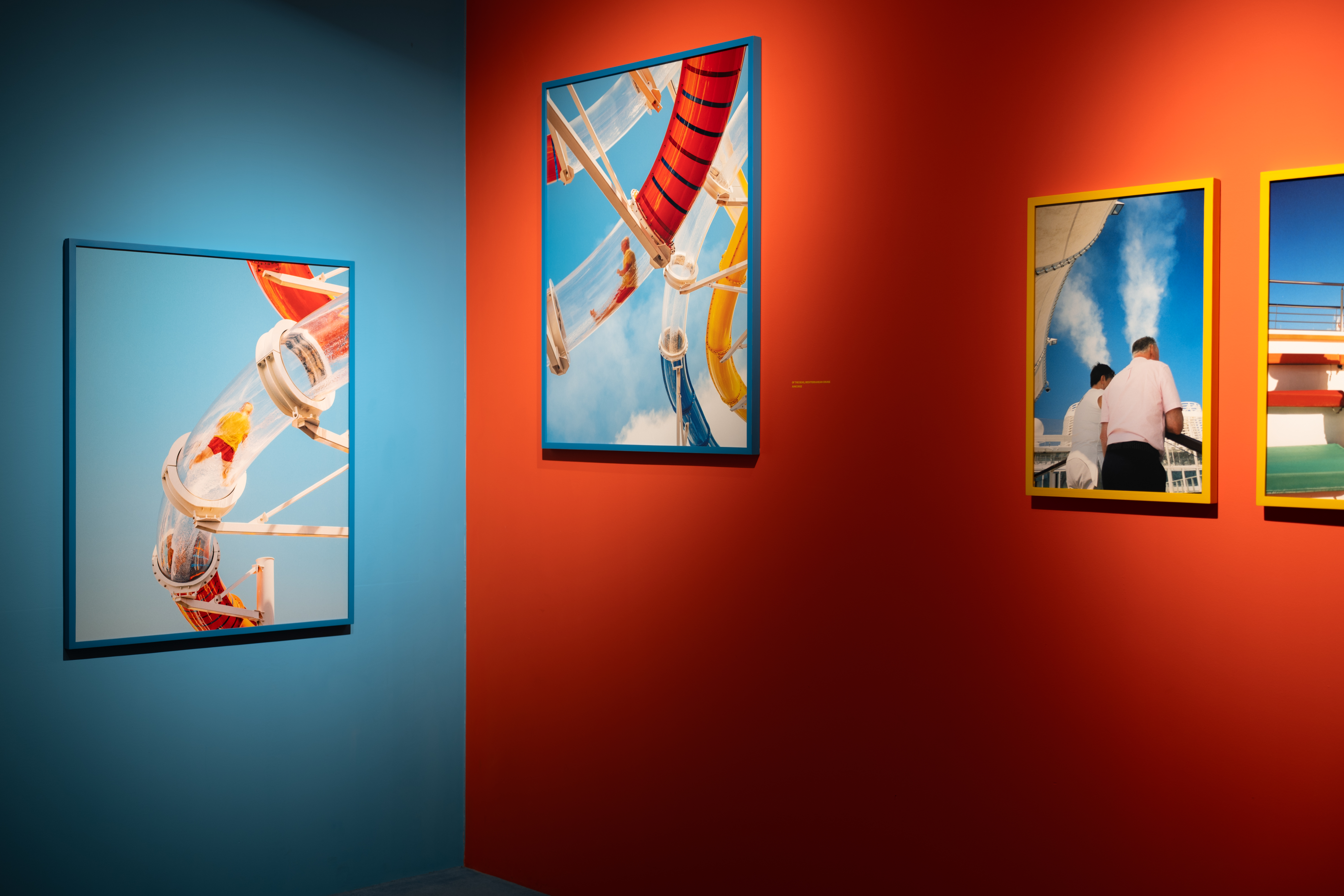 배 안에서 하루에 12km를 넘게 걸으며 휴가를 즐기는 사람들의 모습을 집중해서 담았다고 합니다. 여유가 느껴지는 풍경, 아름다운 날씨, 선명한 색들을 배경으로 요시고다운 사진들을 찍었습니다. 첫 번째 방에서 봤던 바닷가 사진들과 결을 같이 하는 느낌.