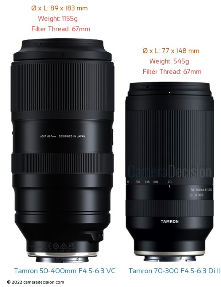 [탐론 28-75mm F2.8 DI III VXD G2와 50-400mm F4.5-6.3 Di III VC VXD 렌즈 비교]