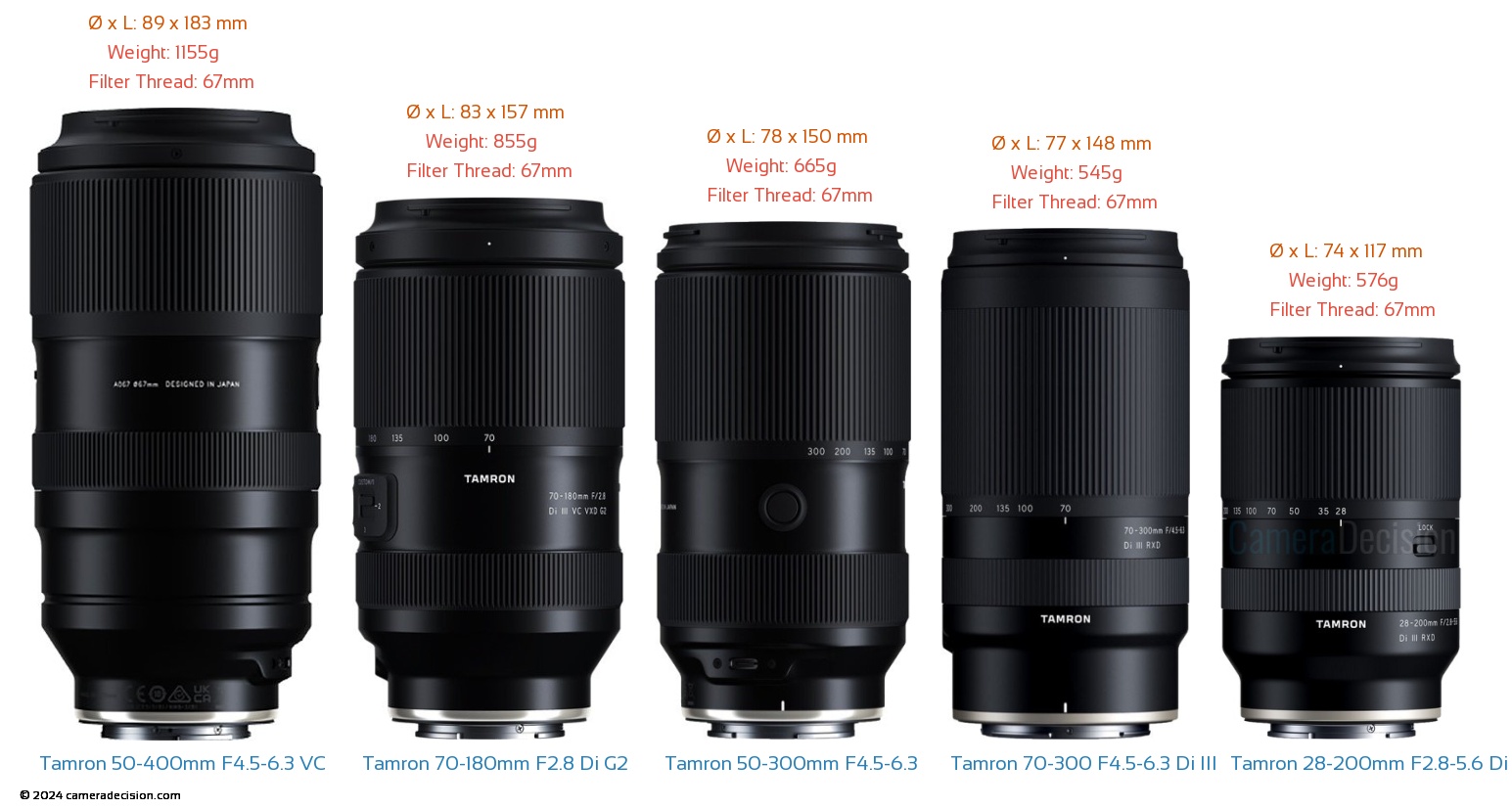탐론의 망원 줌렌즈 비교