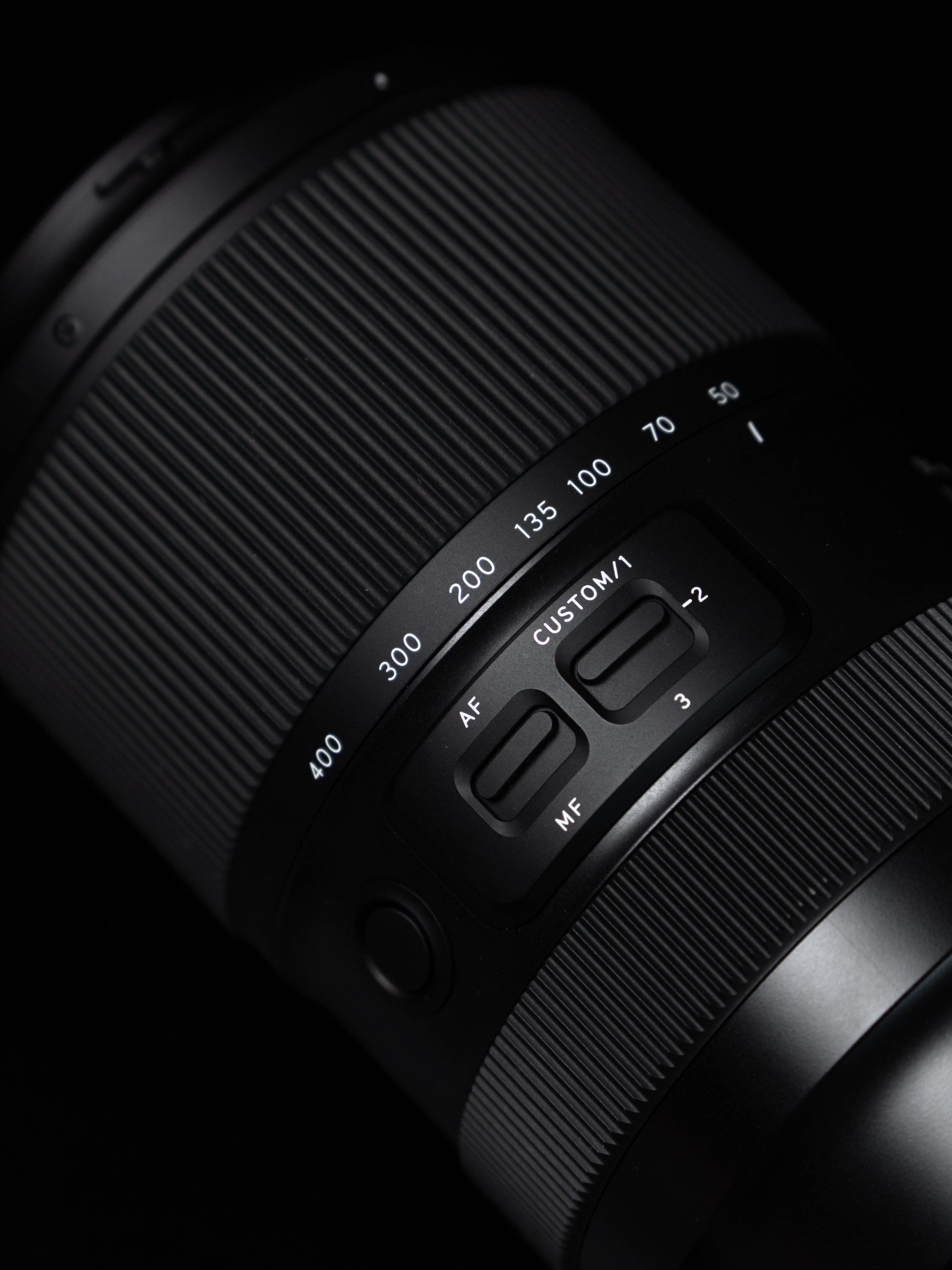 경통은 마운트부부터 단계별로 두꺼워지는 형태입니다. 경통 두께가 가장 두꺼워지는 대물렌즈 주변으로 사용 빈도가 높은 줌 링과 커스텀 스위치, AF/MF 전환 스위치 등의 조작계가 배치돼 있습니다. 상대적으로 쓸 일이 적은 초점링은 다른 렌즈와 같은 크기고요. AF 렌즈들이 대부분 이렇죠.