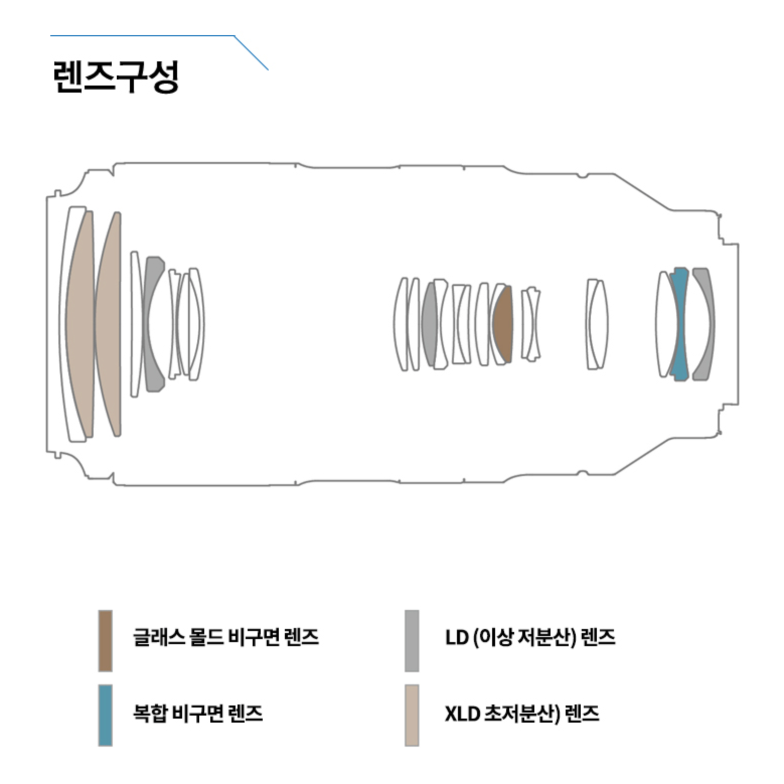 (글래스 몰드 비구면 렌즈 1매, 이상 저분산 렌즈 3매, 복합 비구면 렌즈 1매, 초저분산 렌즈 2매)