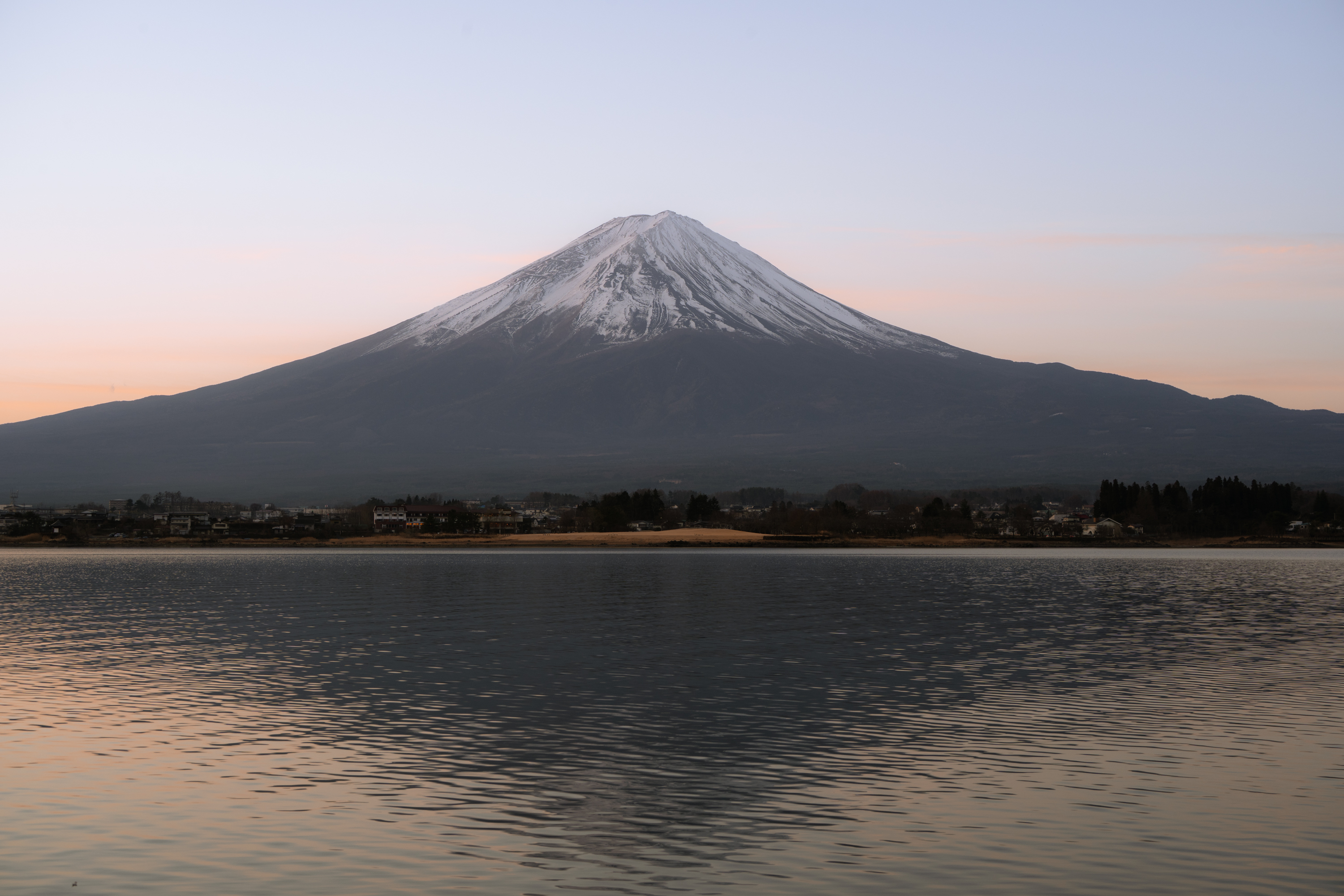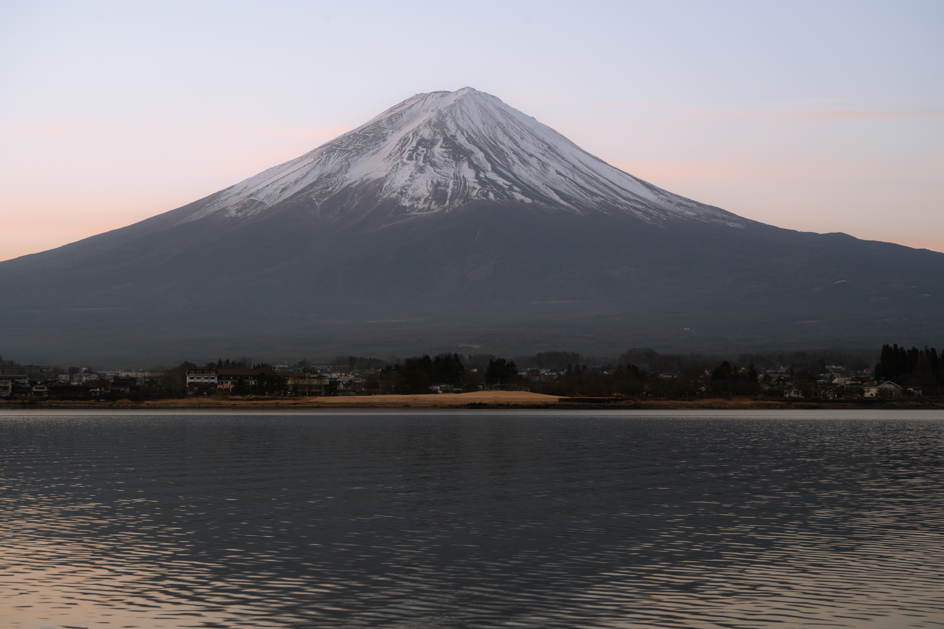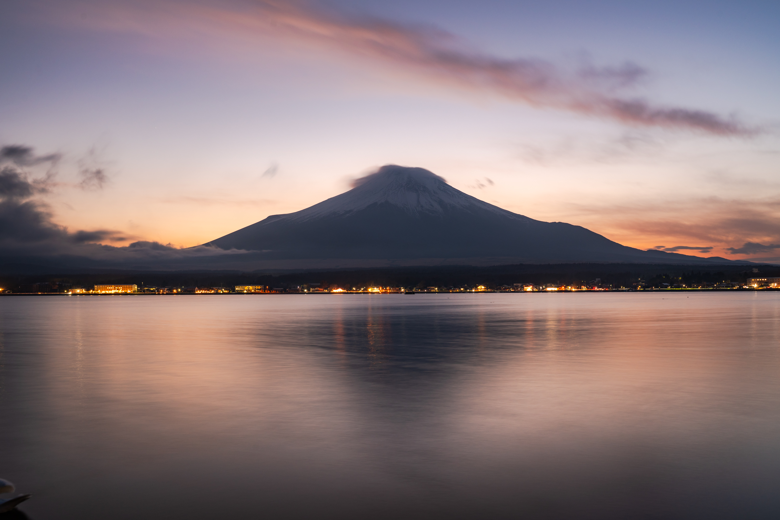 가와구치코 역에서 가장 가까운 호수로 많은 분들이 후지산 관람과 사진 촬영을 위해 찾는 곳입니다. 저는 일출을 보기 위해 새벽 다섯 시쯤 숙소에서 나왔어요. 반영을 볼 수 있는 포인트까지 한 시간 가까이 걸어가야 했거든요. 오이시 공원이 가장 유명한데 저는 그 전에 있는 나가사키 공원에서 촬영했습니다. 새벽이라 물이 잔잔해서 꽤나 아름다운 반영 사진을 찍을 수 있었습니다. 이같은 풍경에는 28-75mm F/2.8 DI III VXD G2의 28mm 광각이 더 적합하겠지만 50-400mm F/4.5-6.3 Di III VC VXD 렌즈의 50mm 결과물도 만족해요.