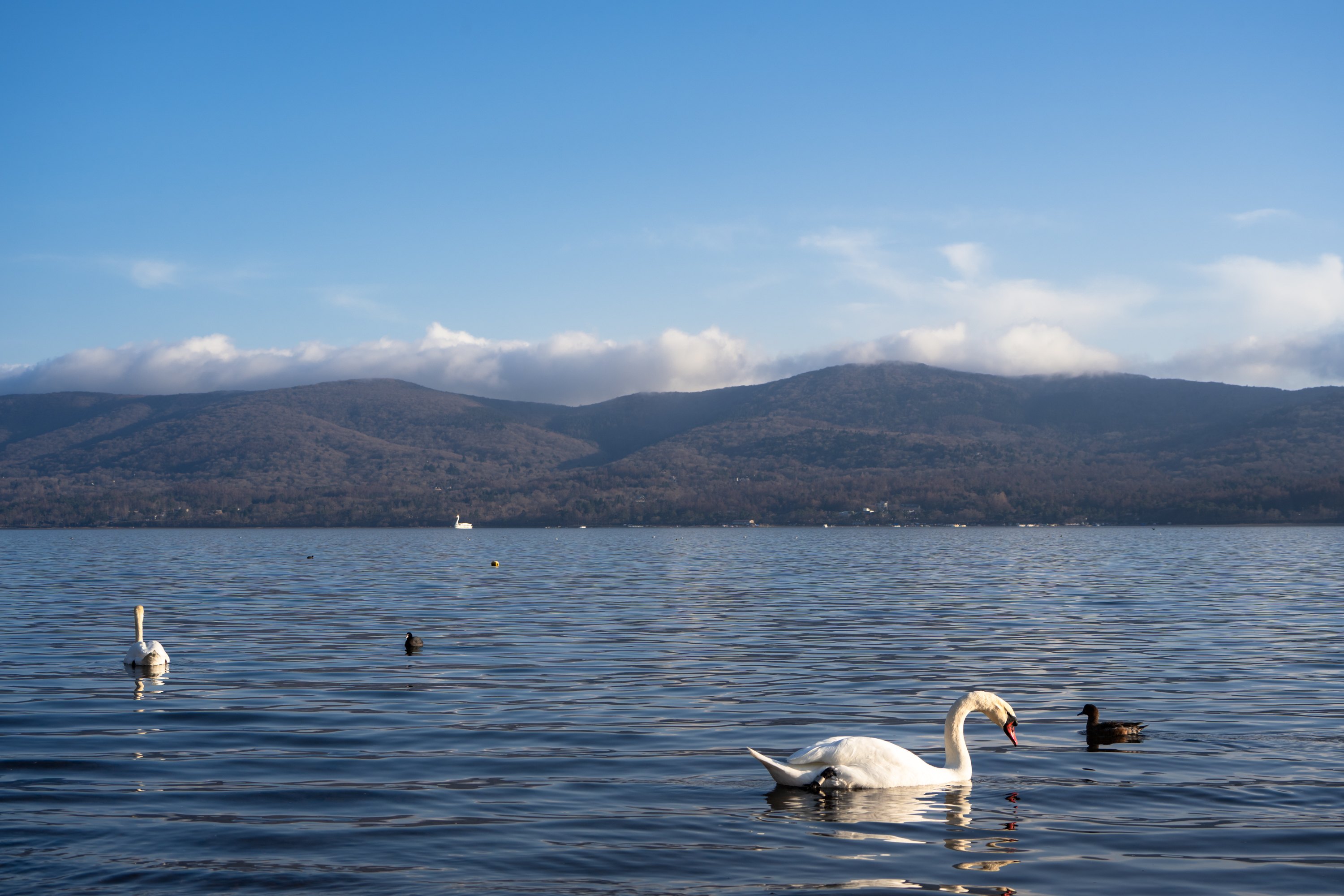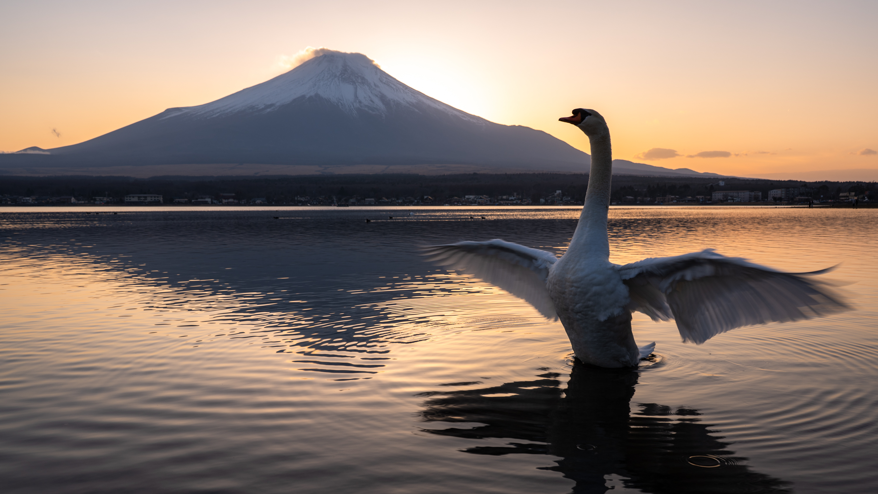 차가운 날씨지만 백조들도 볼 수 있었고요. 얘들이 제법 쇼맨십이 있어서 해 질 무렵에는 후지산 앞으로 몇 번을 왔다갔다 하더라고요. 보기도 좋았고 마음에 드는 사진들도 찍었습니다.