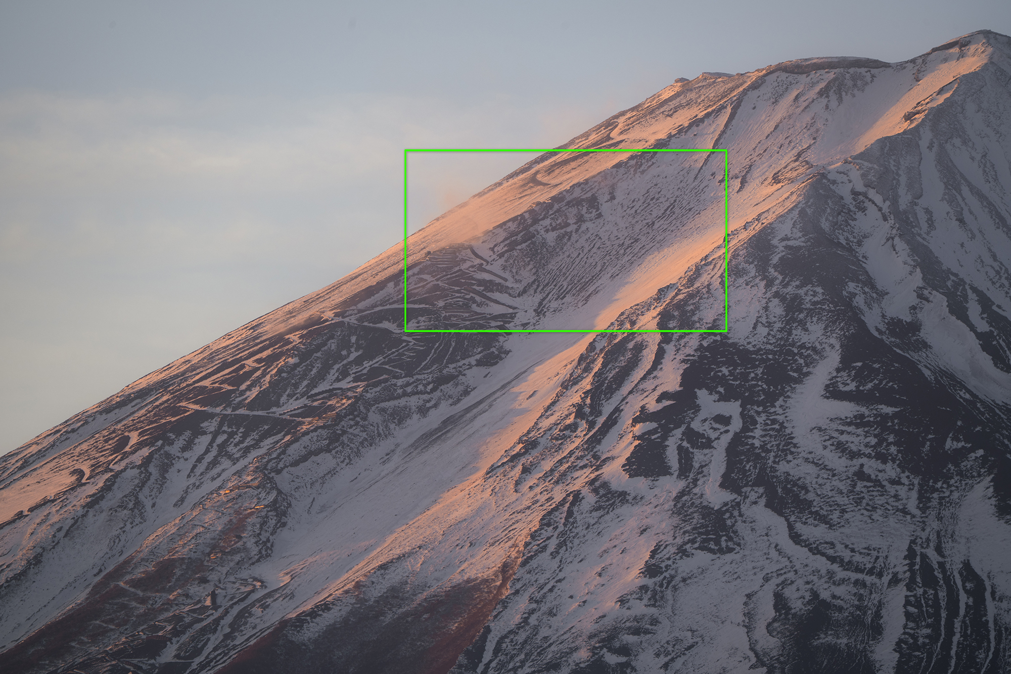 나란히 비교하니 차이가 엄청납니다. 400mm로 촬영한 이미지는 눈으로 볼 수 없는 후지산 정상의 지형이 고스란히 담겨 있어서 현장에서도 화면을 통해 감상했습니다. 게다가 해가 뜰 때 빛을 받는 모습이 전날 일몰 때와는 완전히 다른 매력으로 기억에 남아요.