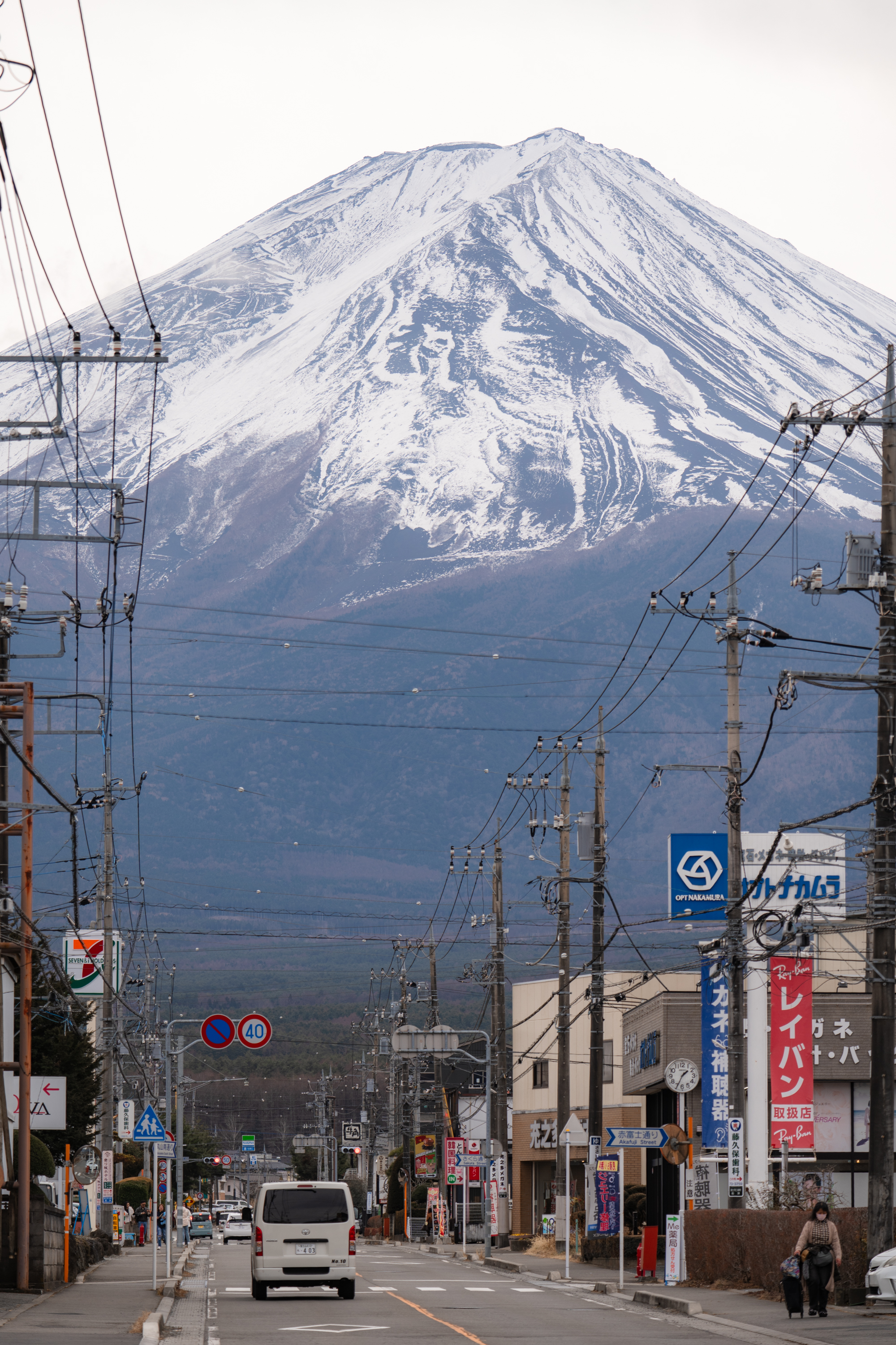 가와구치코 역에 내리자마자 볼 수 있는 유명한 로손 편의점. 건물 뒤로 후지산이 겹쳐 보이는 뷰가 인기를 끌면서 이 동네를 찾는 관광객들의 포토 스팟이 됐습니다. 저도 가와구치코에 관한 정보를 검색할 때 가장 많이 본 장면이고요. 역시나 사진 속 낭만은 현실에 없었지만 편의점 뒤로 보는 거대한 산이 가슴을 두근거리게 했어요. 전날 밤까지 일기 예보를 보면서 걱정 많이 했거든요. 이틀 내내 흐리다고 해서. 다행히 이날 내내 선명한 후지산의 모습을 볼 수 있었습니다.